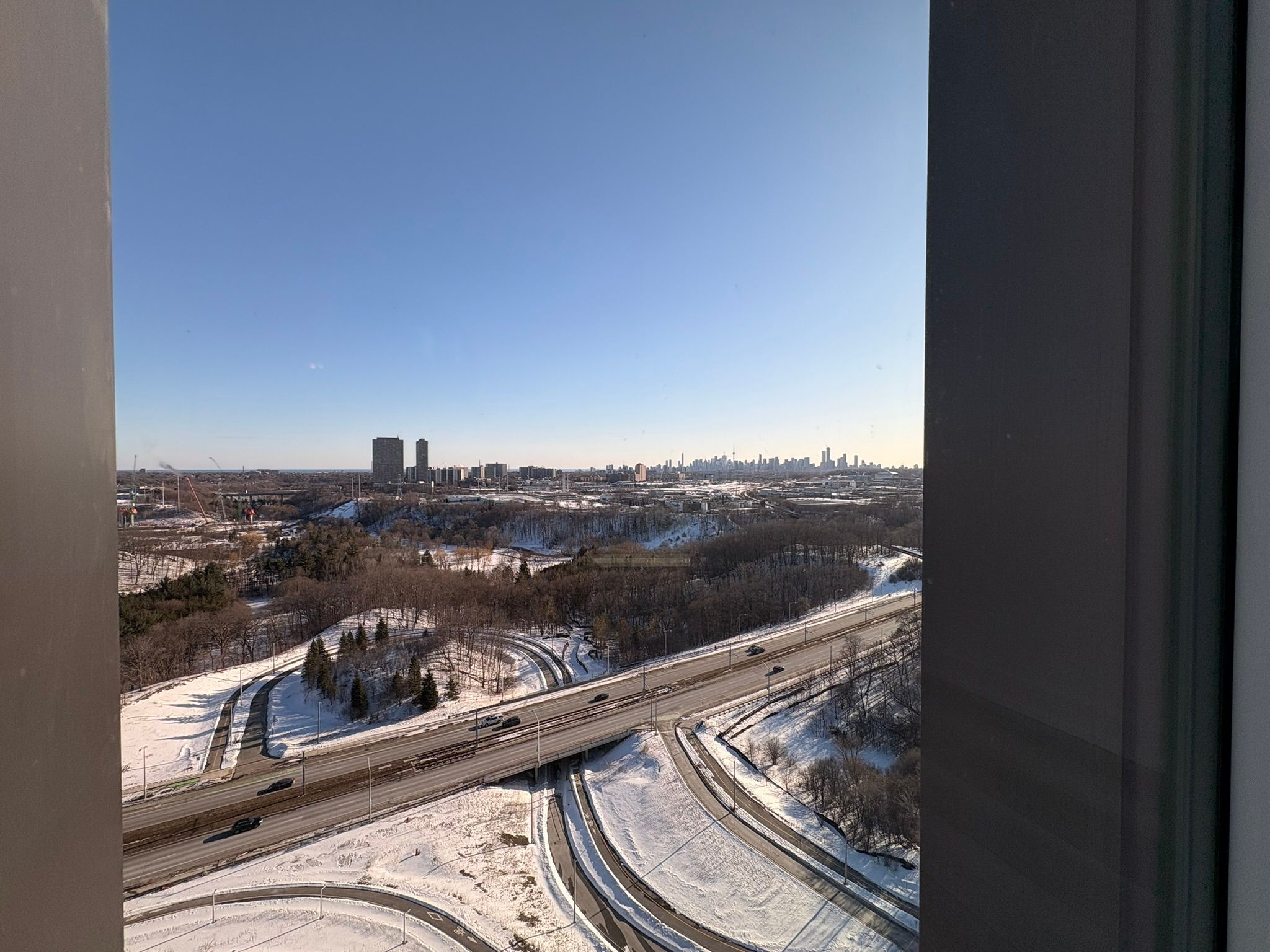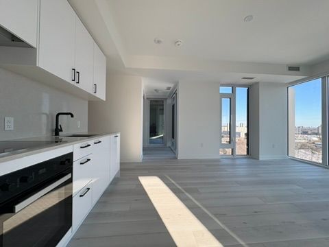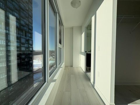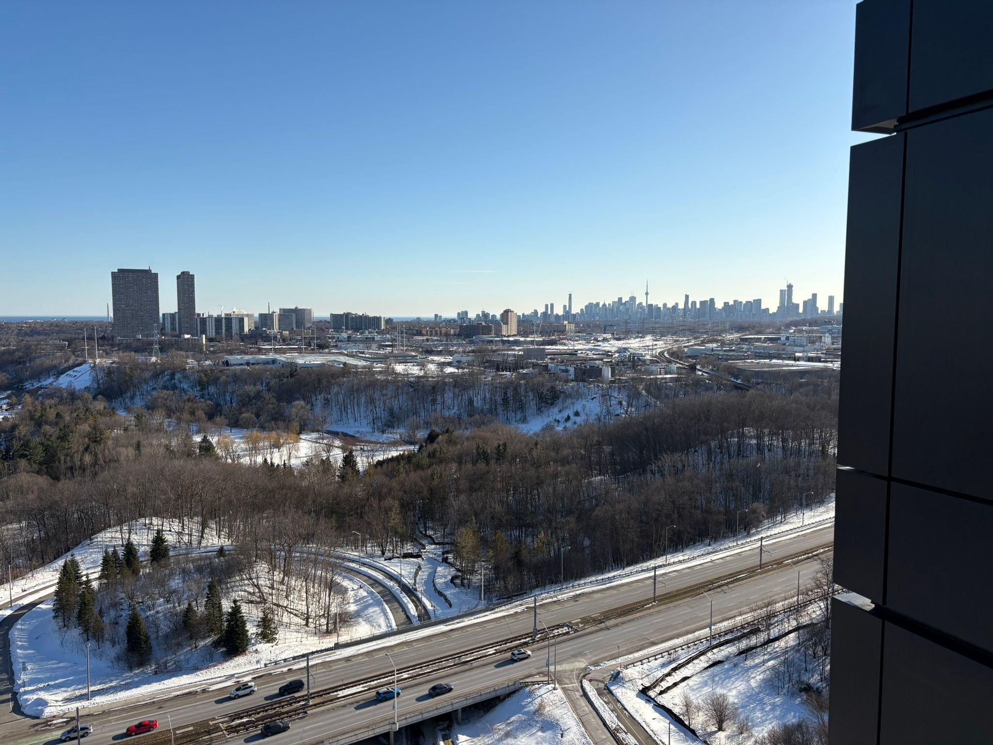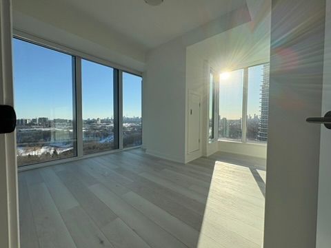 Bright corner suite featuring 2 bedrooms, 2 bathrooms, plus a spacious den. Offering 946 sq. Ft. Of interior space with floor-to-ceiling windows that showcase stunning views of the downtown skyline, cn tower, and don valley. The open-concept living, dining, and kitchen area is filled with natural light, creating a bright and comfortable space for everyday living and entertaining. The modern kitchen features sleek cabinetry, subway tile backsplash, quartz countertops, and premium miele appliances. Enjoy a private 55 sq. Ft. Terrace, ideal for relaxing while taking in sunrise and sunset views. Located in a well-connected community, steps from parks, schools, restaurants, and shopping including shops at don mills and real canadian superstore. Close to the aga khan museum and islamic centre, with convenient access to ttc transit and the eglinton crosstown lrt, providing quick connections across the city and downtown in under 20 minutes. A great opportunity to enjoy modern condo living with space, views, and convenience.