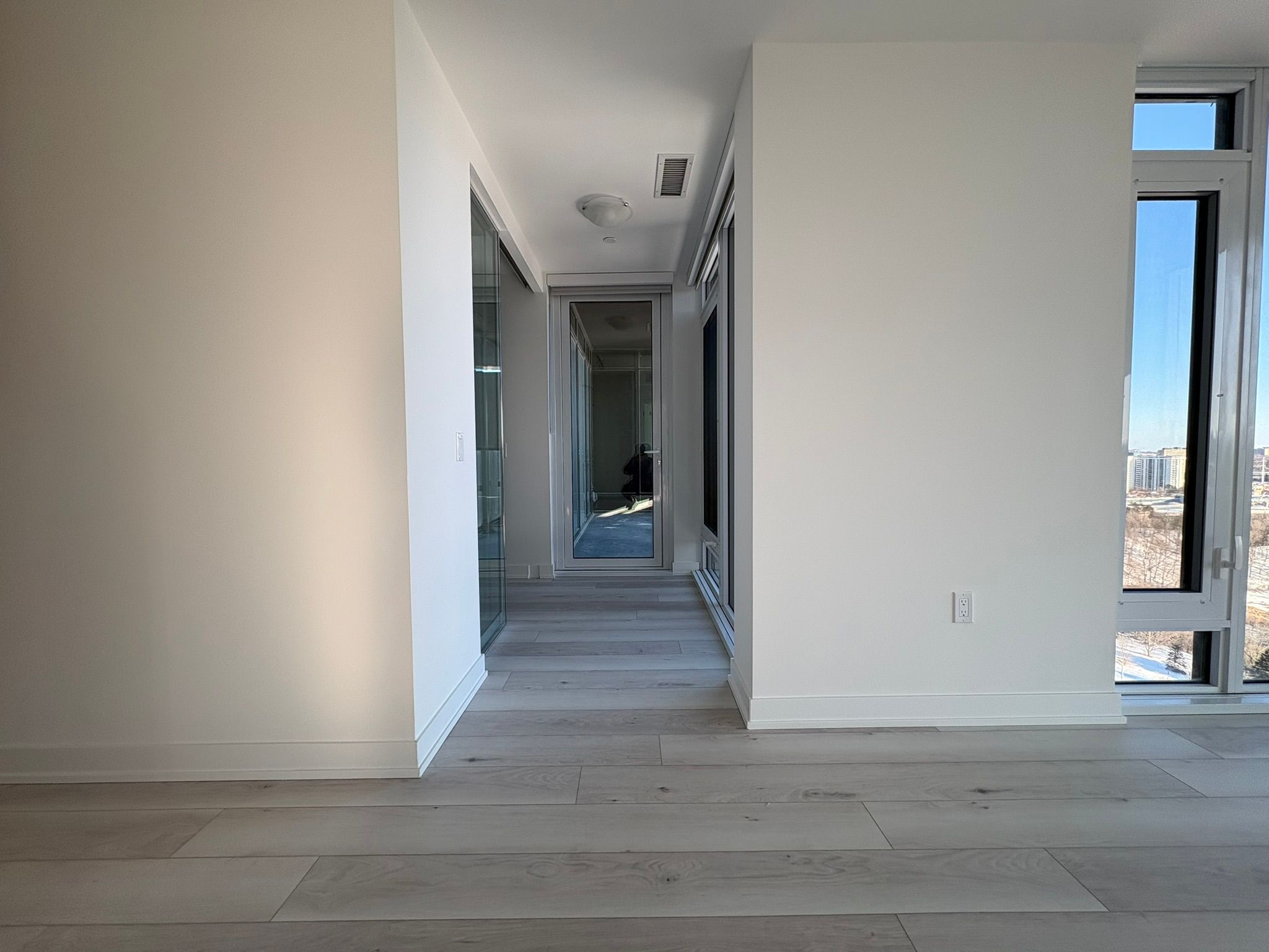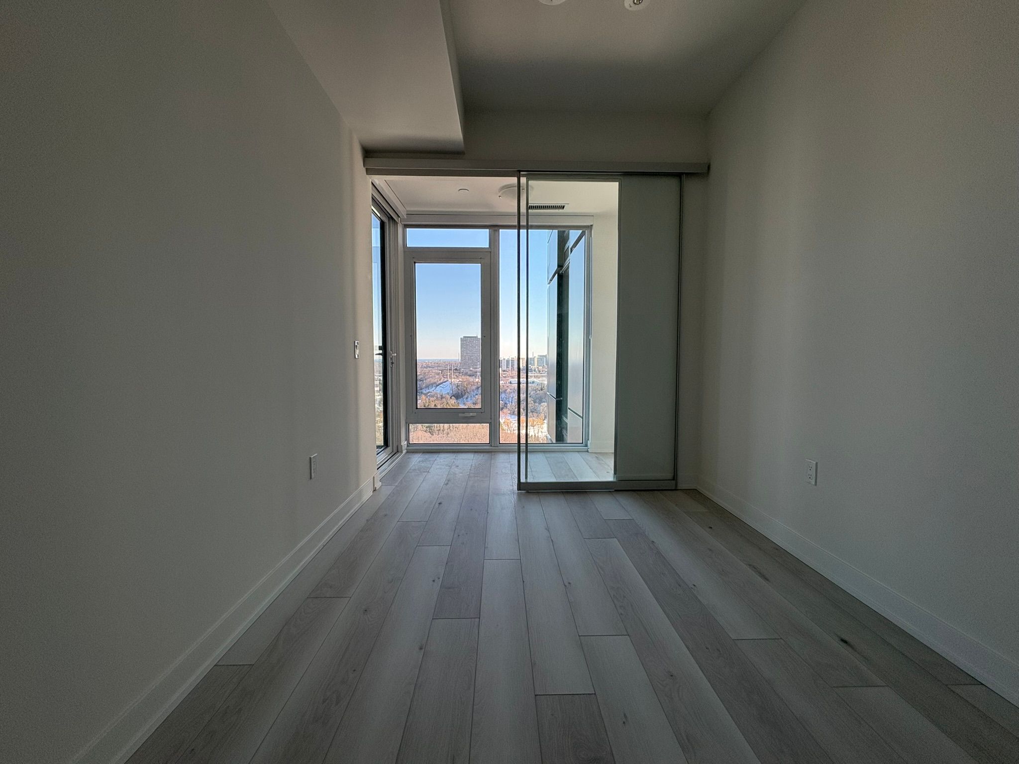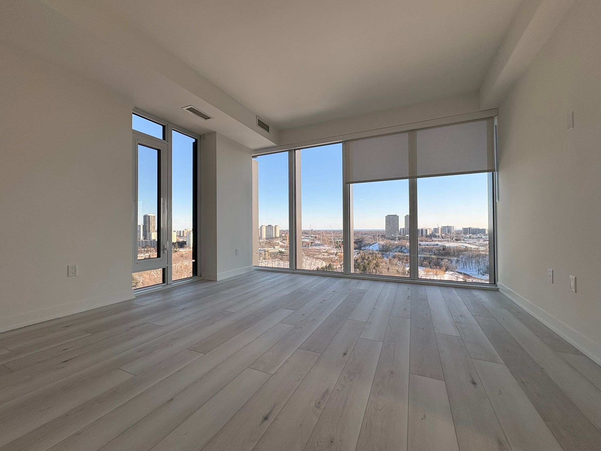 Bright corner suite featuring 2 bedrooms, 2 bathrooms, plus a spacious den. Offering 946 sq. Ft. Of interior space with floor-to-ceiling windows that showcase stunning views of the downtown skyline, cn tower, and don valley. The open-concept living, dining, and kitchen area is filled with natural light, creating a bright and comfortable space for everyday living and entertaining. The modern kitchen features sleek cabinetry, subway tile backsplash, quartz countertops, and premium miele appliances. Enjoy a private 55 sq. Ft. Terrace, ideal for relaxing while taking in sunrise and sunset views. Located in a well-connected community, steps from parks, schools, restaurants, and shopping including shops at don mills and real canadian superstore. Close to the aga khan museum and islamic centre, with convenient access to ttc transit and the eglinton crosstown lrt, providing quick connections across the city and downtown in under 20 minutes. A great opportunity to enjoy modern condo living with space, views, and convenience.