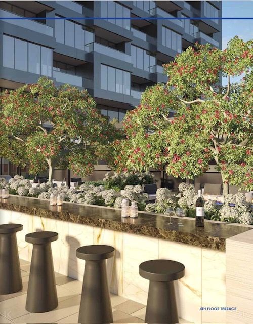 • Newly built condos in a modern urban community setting.