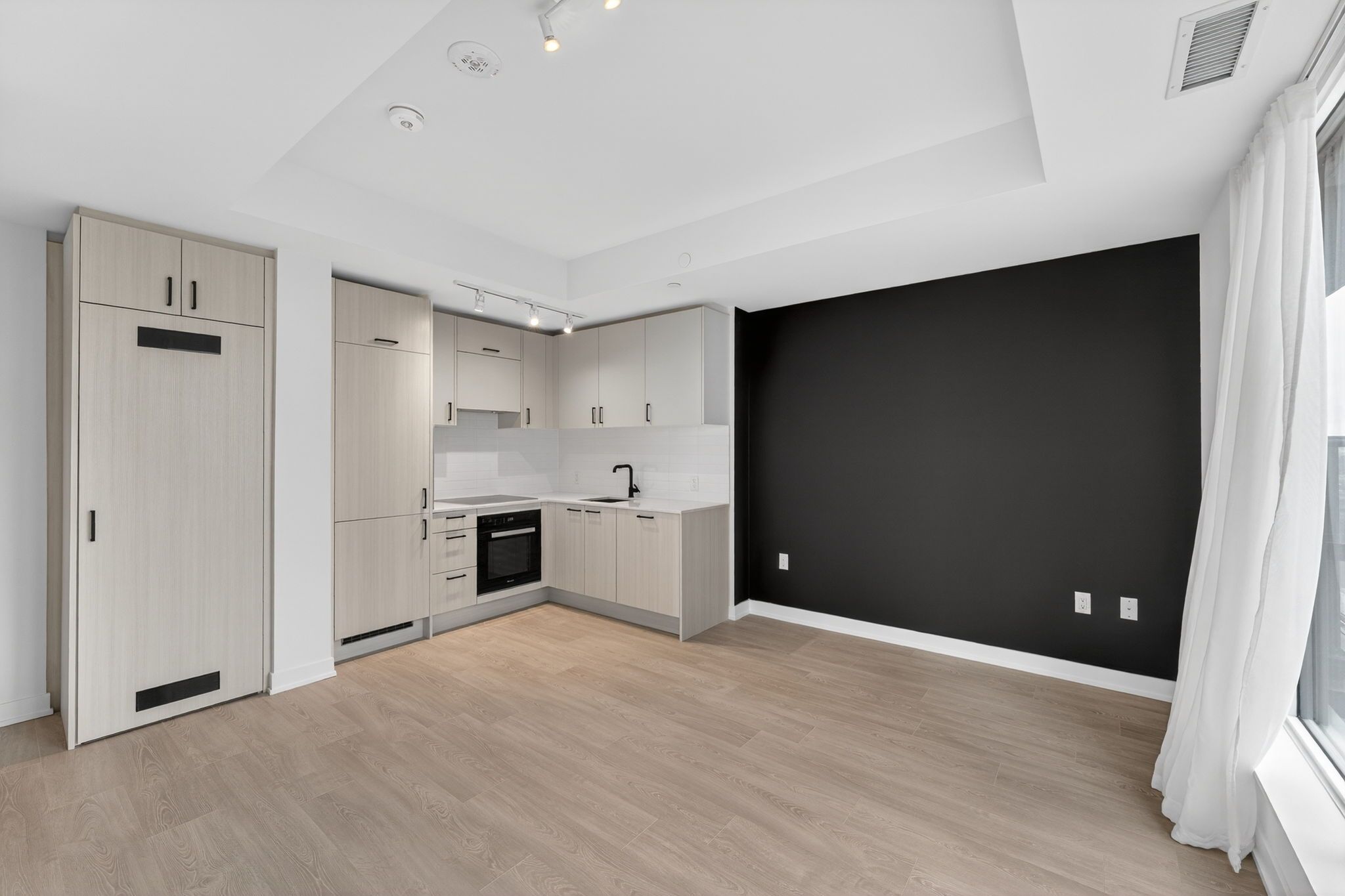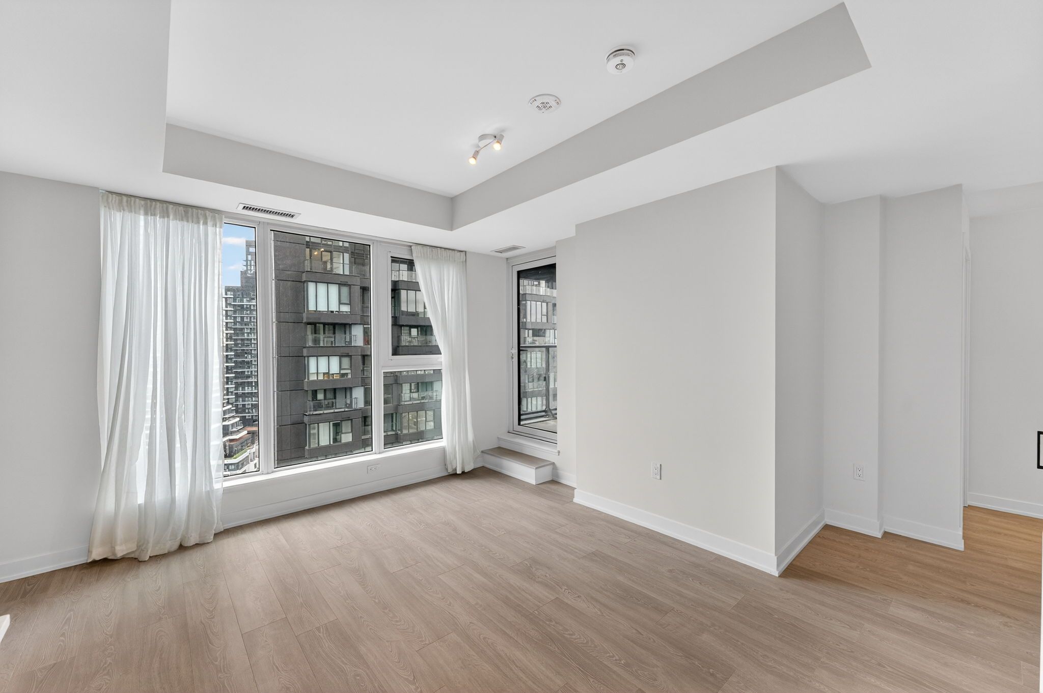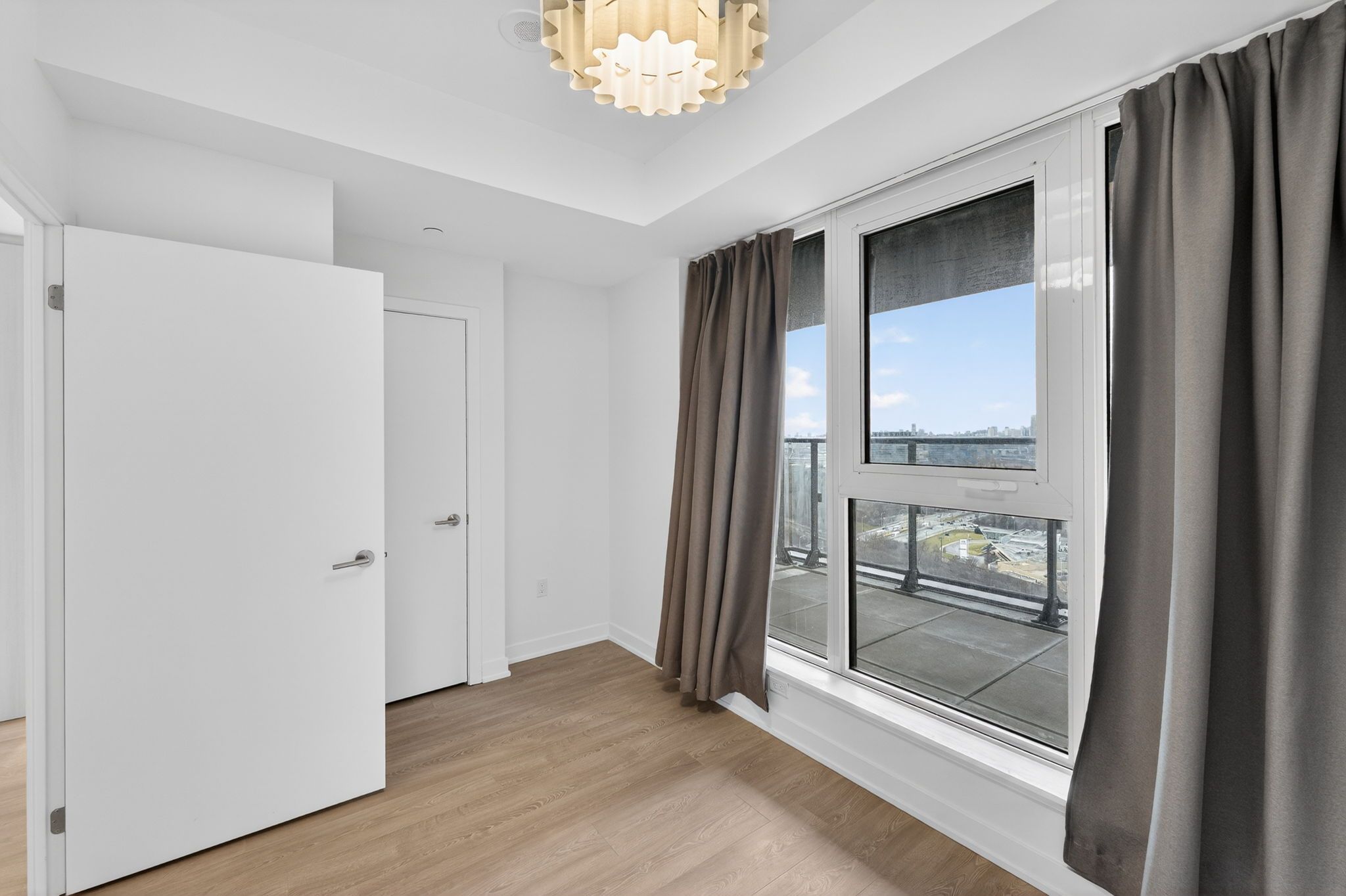 High-floor sw corner view condo | cn tower & skyline views | designer upgrades | brand new building. Bright and beautifully upgraded 1-bedroom condo on the 20th floor with stunning southwest exposure and skyline views including the cn tower and sunnybrook park. This thoughtfully customized unit stands out from builder-standard suites with designer accent wall, upgraded modern light fixtures, custom curtain tracks with sheer living room curtains and blackout bedroom curtains, plus finished bathroom accessories for a truly move-in ready space. Enjoy abundant natural sunlight throughout the afternoon and evening, highlighting the open concept layout and contemporary finishes. The living area flows to a private balcony with sweeping city skyline and park views, perfect for relaxing after work. Located in a brand new luxury building close to transit, the new eglinton lrt, sunnybrook park and major employment hubs including sunnybrook health sciences centre and downtown toronto. Ideal for professionals seeking a stylish, convenient home with premium finishes and appliances (miele).