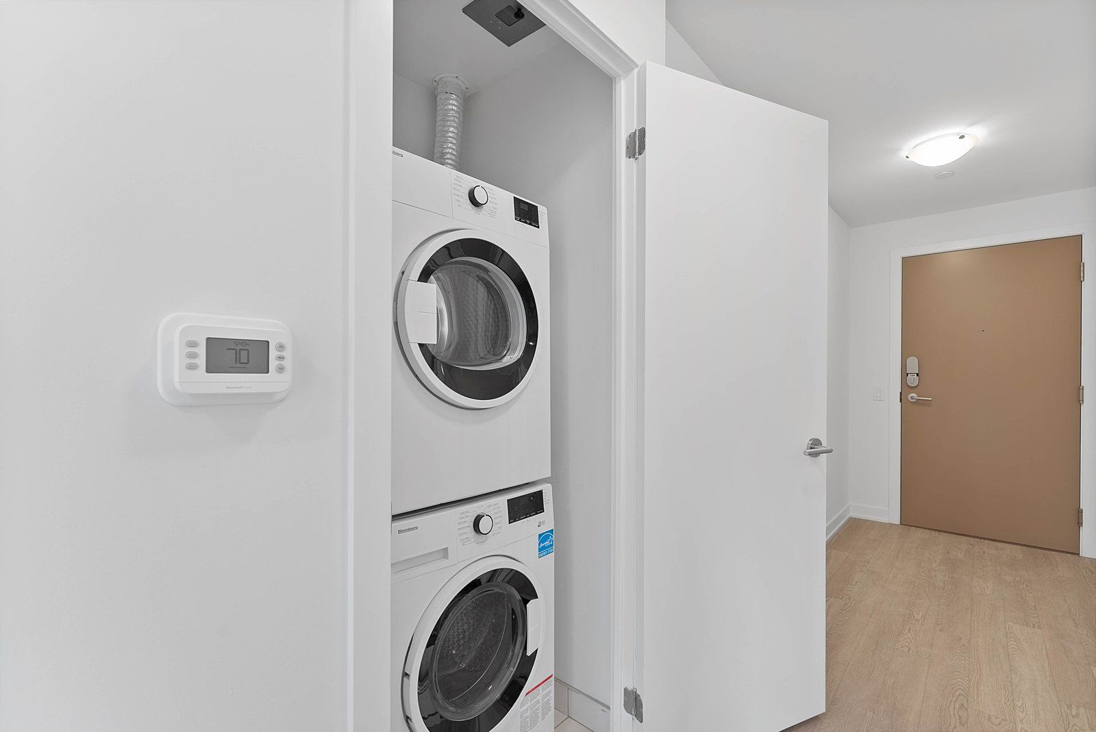 Come home to cn tower views! Large terrace + locker! Welcome to crosstown ii condos by aspen ridge homes. This stunning condo offers a large foyer offering a ton of storage options. Bathroom and laundry closet are found in the foyer area. Laundry closet offers a stacked washer and dryer while the bathroom offers a shower with a hand shower. Large bedroom with a large closet while open concept living dining area offers large windows, access to the terrace with clear views of lake ontario and downtown toronto. Make 2306 your home today!