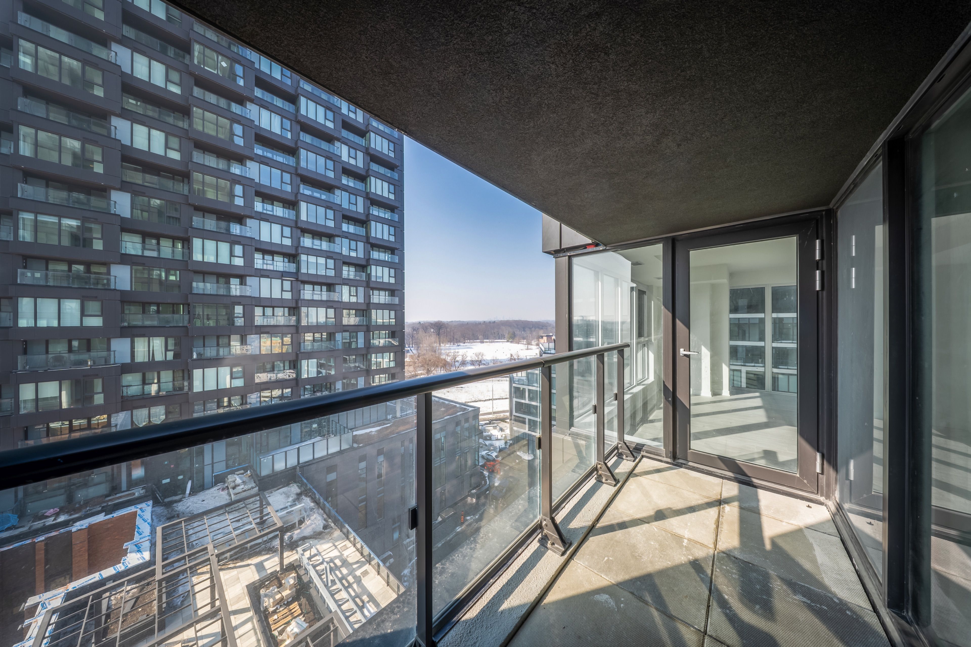Wake up to beautiful natural light flooding every corner of this stunning 1+den suite at 1 quarrington lane #807 in crosstown condos. Featuring expansive floor-to-ceiling windows and clear north-facing views, this bright and airy unit offers a smart open-concept layout designed to maximize space, flow, and sunlight throughout the day. The spacious private balcony is perfect for morning coffee or evening unwinding, while the versatile den makes an ideal home office or study. The sleek modern kitchen seamlessly connects to the living area, creating a functional and inviting space for everyday living and entertaining. Residents enjoy access to premium amenities including a fitness centre, basketball court, co-working lounge, art studio, rooftop bbq area, party room, games room, pet wash station, and 24-hour concierge (amenities subject to builder completion). Ideally located steps to the soon-to-open eglinton crosstown lrt with quick access to the dvp, this vibrant master-planned community offers unmatched convenience, connectivity, and lifestyle-an exceptional place to call home.