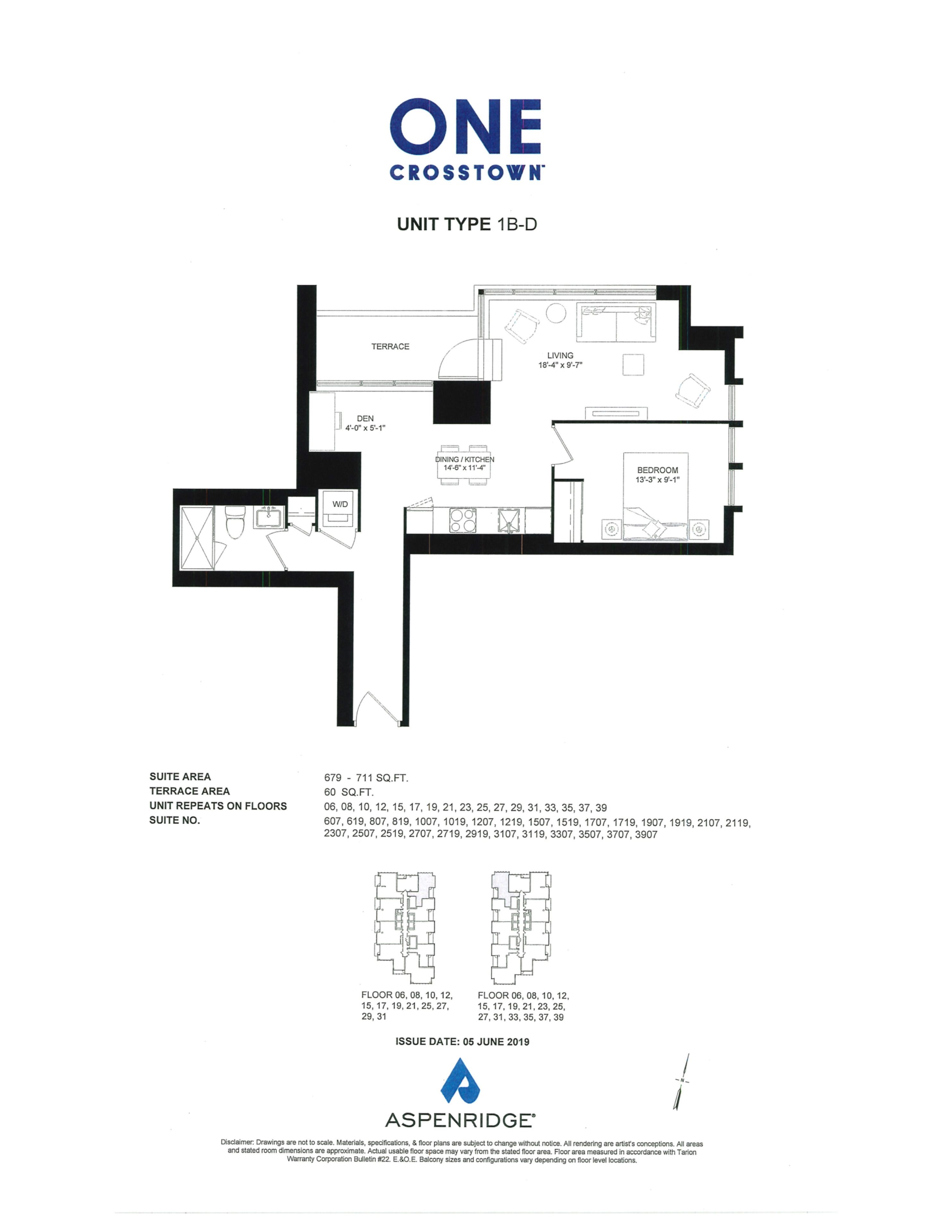 • Bright 1+Den suite with large floor-to-ceiling windows and North views.