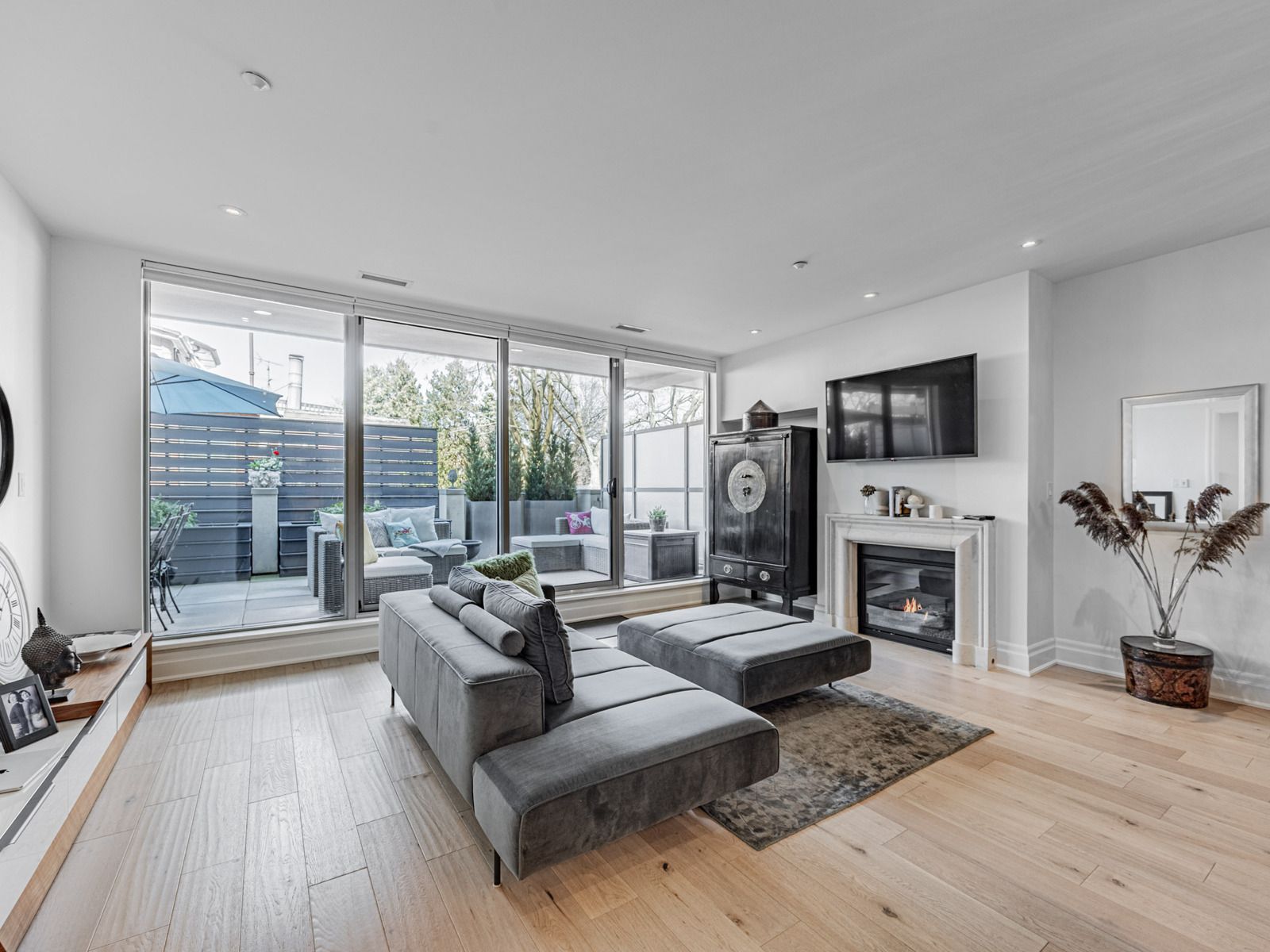 Welcome to terrace suite 207 at the boutique residences of 1 rainsford road. This spectacular 2 bedroom, 2 bathroom condo, boasts enjoyment space of ~1732 sq. Ft., with 1300 sq. Ft. Interior and a private entertainers' bbq terrace of 432 sq. Ft! Enter into your suite with soaring 10 ft. Smooth ceilings, rich wide plank hardwood floors, grand floor to ceiling windows, electric blinds on all windows, and a large open concept plan. The luxury kitchen is outfitted with miele top of the line appliances, including a miele gas cooktop and built-in wall oven with miele convection. The large kitchen island brings everyone together with a spacious breakfast bar, under-mount sink, and granite counters. The living room has a gas fireplace with a walk-out to the terrace. For the ultimate privacy, the 2 bedrooms are designed with a split bedroom plan. The primary suite contains a large walk-in closet, with a 5 piece spa ensuite bathroom. Walk everywhere - with bruno's fine groceries next door, restaurants, the beach, nature, galleries, with transit at your doorstep! This is a must see suite in the prime beach neighbourhood by queen st east & woodbine avenue. The terrace also includes a gas line for bbq'ing, water for gardening and lighting for evening enjoyment. 1 owned parking & locker included! Tenanted on lease until july 1, 2026. The buyer(s) must assume the triple a tenant, paying $4325/month + utilities until july 1, 2026.