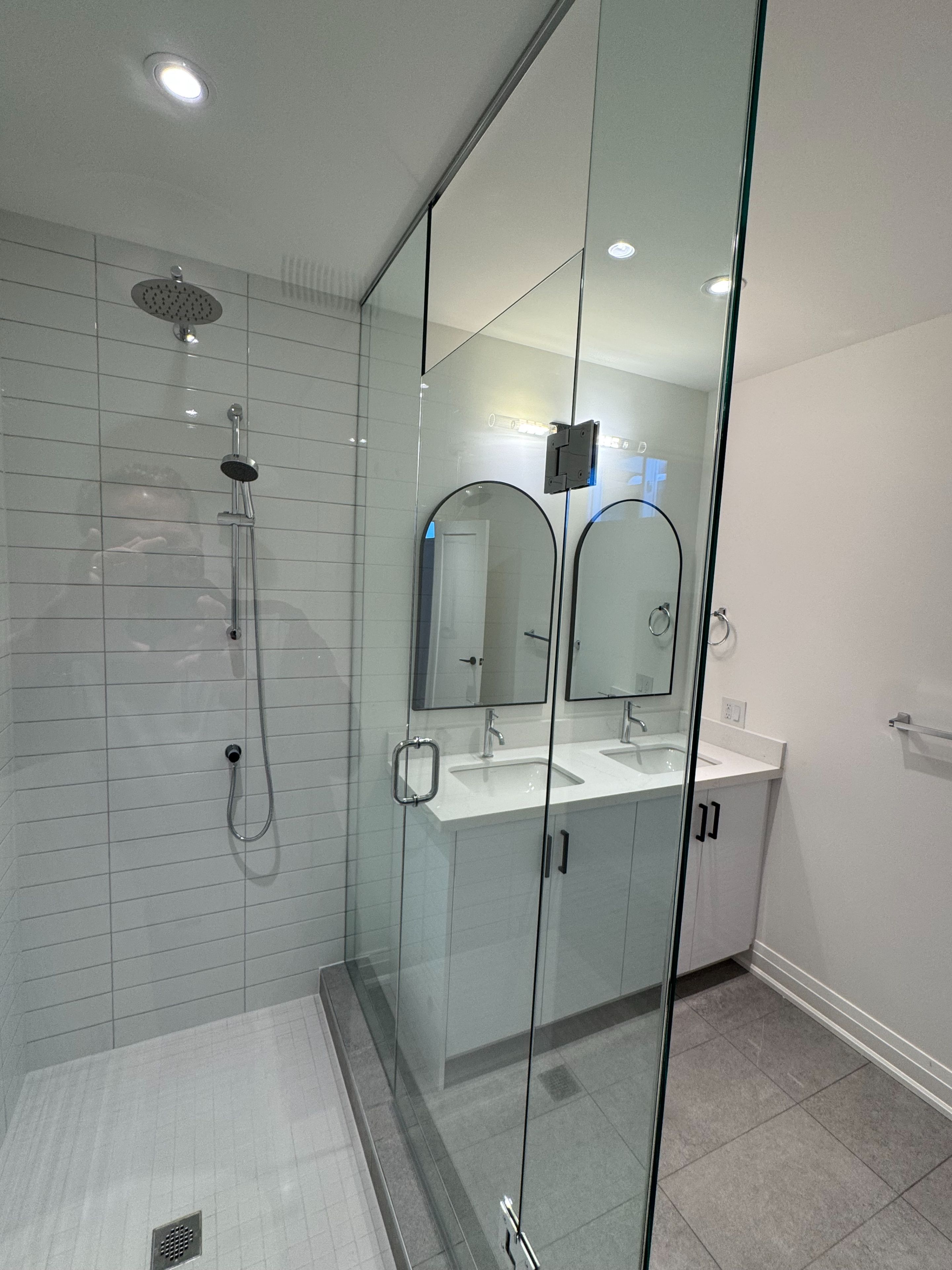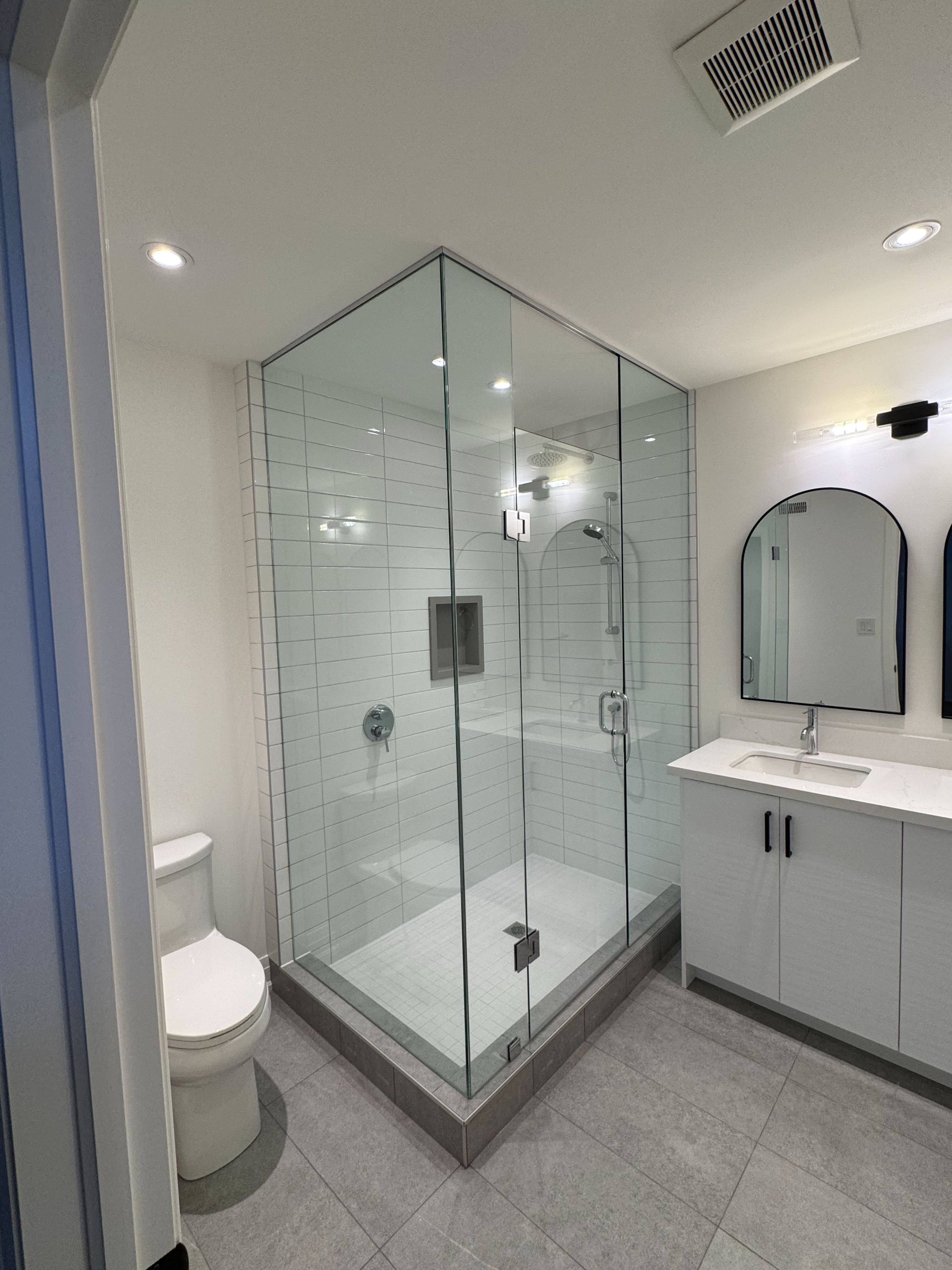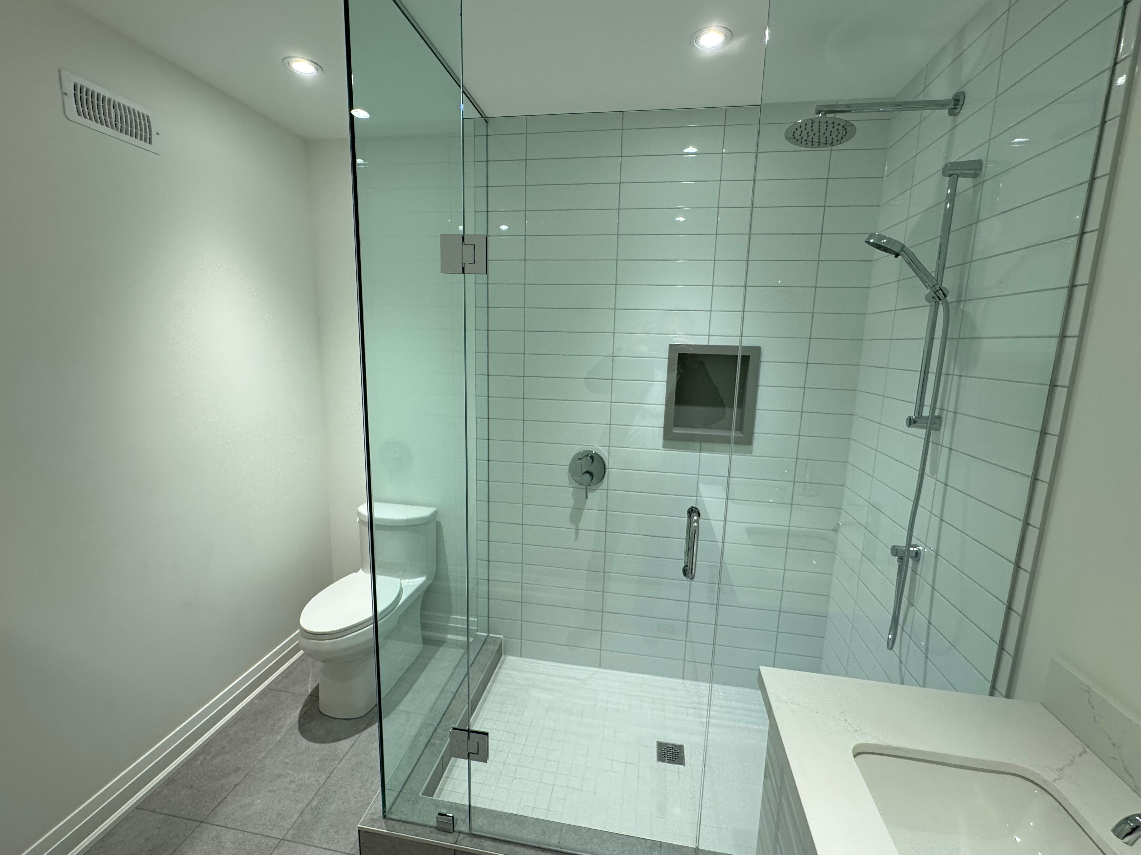 • Spacious layout with 8-ft ceilings and elegant porcelain flooring.