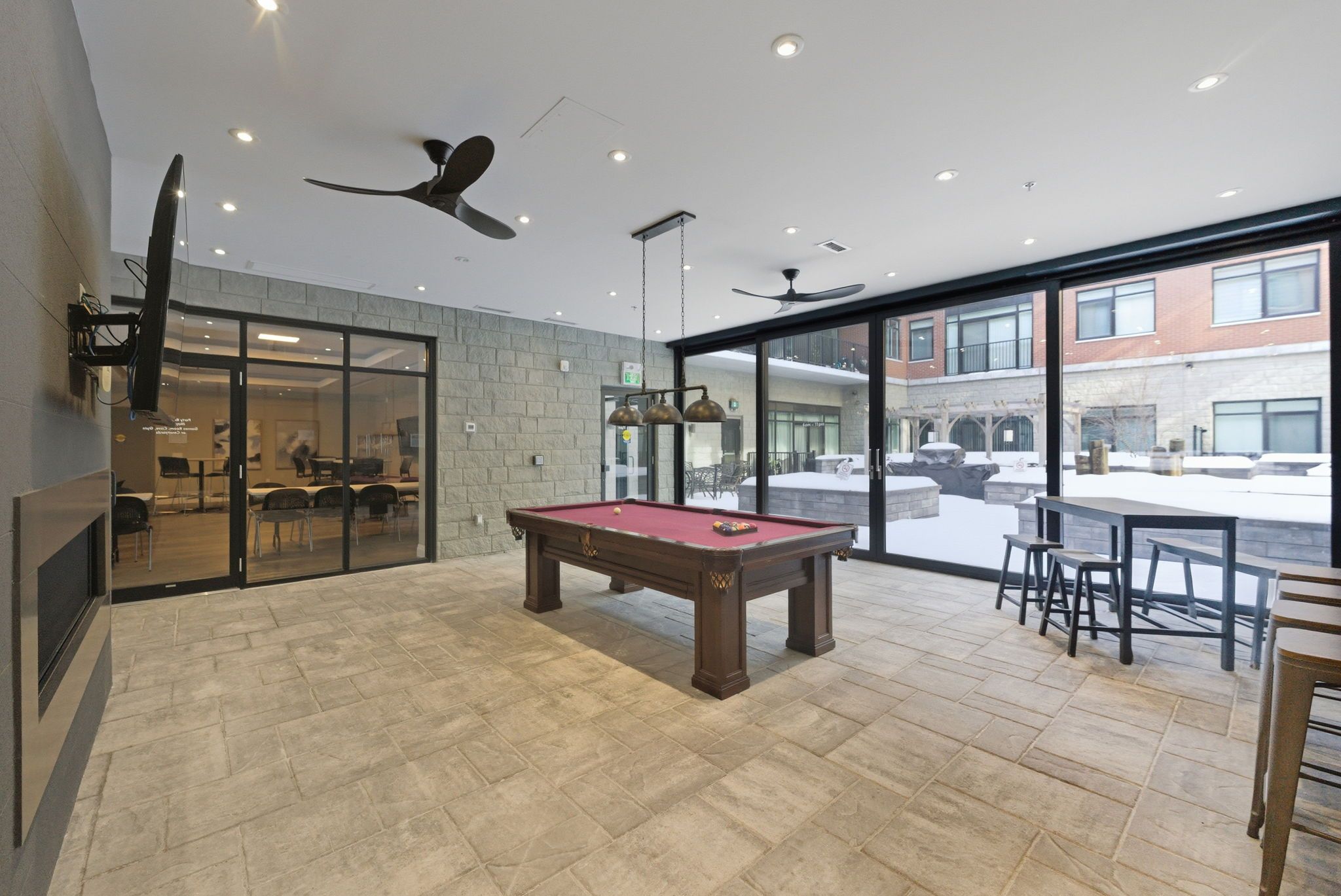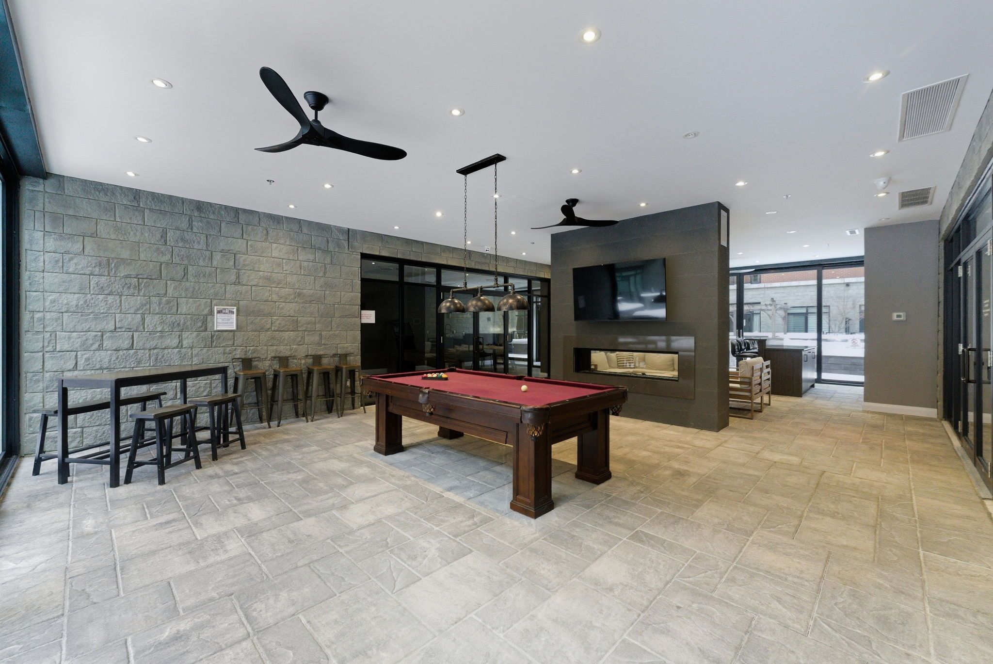 • Building amenities include gym, theatre, game room, and outdoor BBQ area.