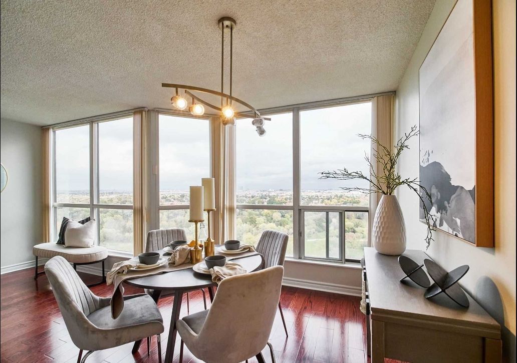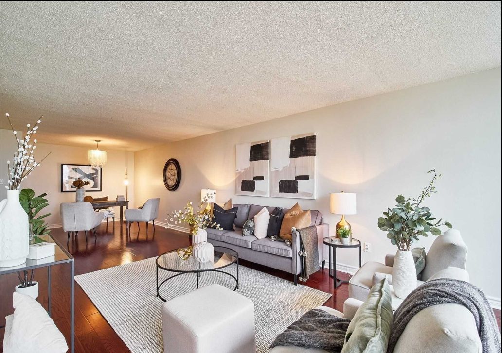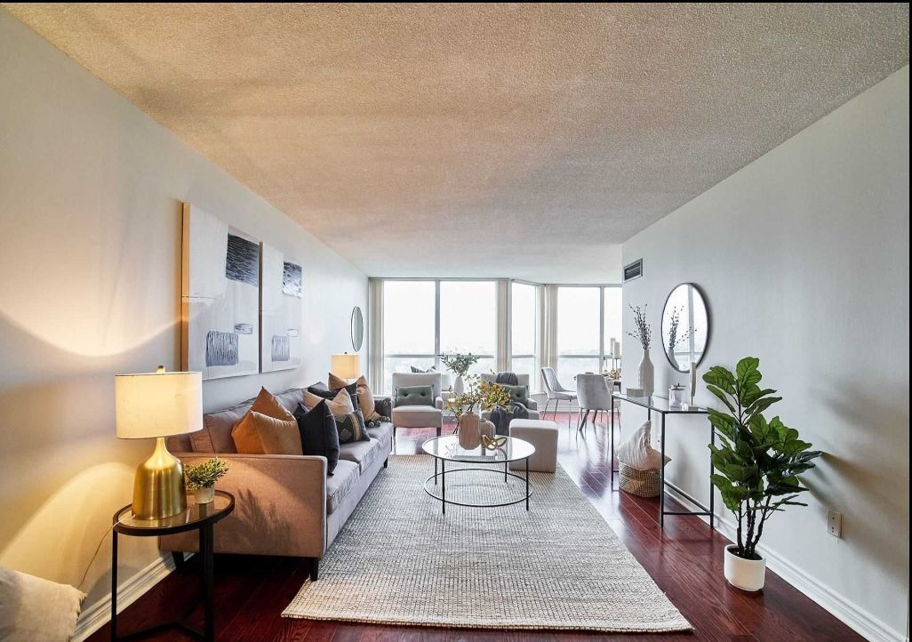 Approx. 1300 sq feet, so big 2 bedroom, 2 full bathroom condo located in a quiet family friendly neighbourhood. Very spacious living/dining room and balcony. Excellent amenities gym, spa, indoor swimming pool, tennis court, party room, and 24 hour gate security. Overlooking green space and tons of natural light. Close to schools, grocery/shopping stores, minutes drive to albion mall, highways, the hospital, york university, and humber college. Direct bus to subway.
