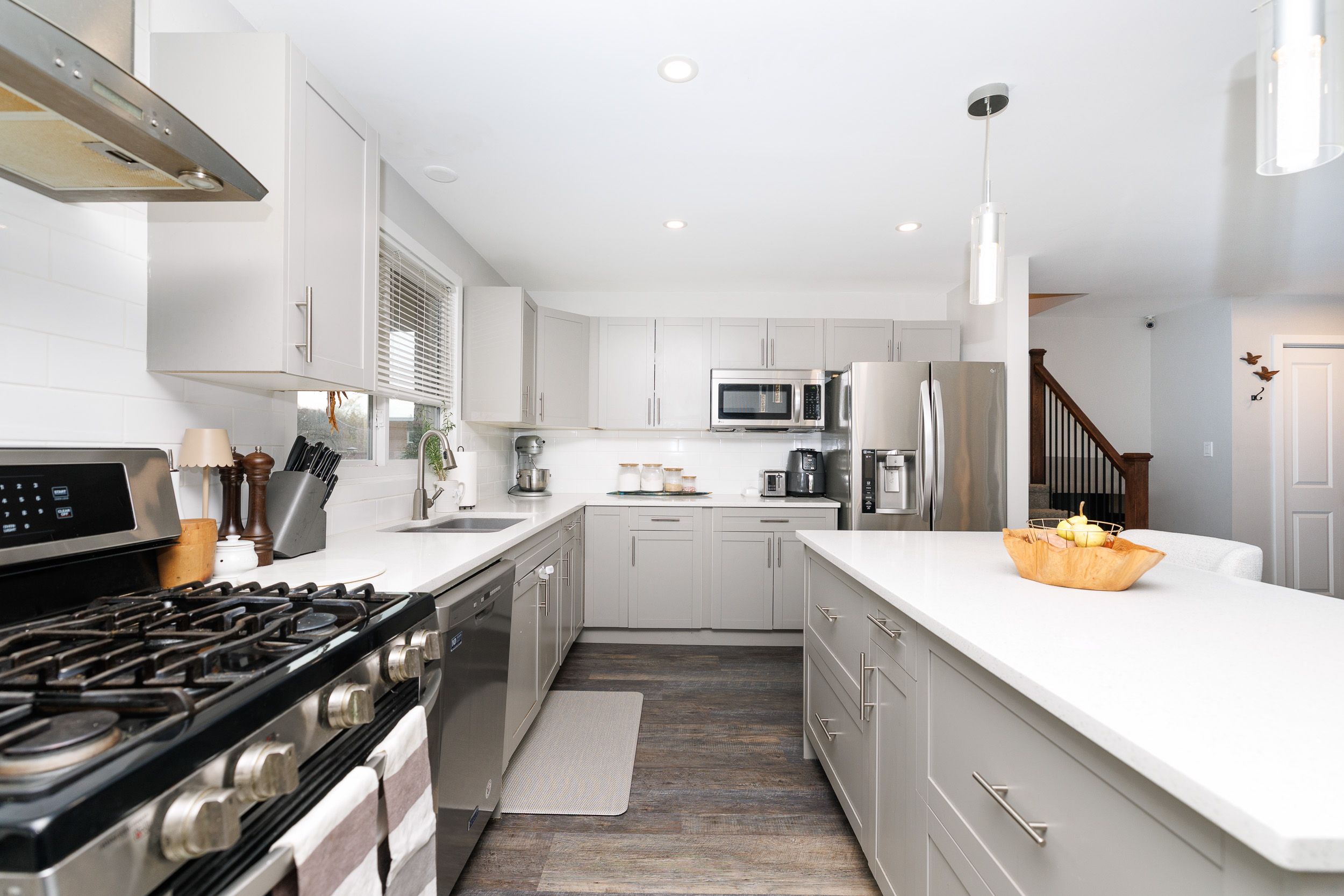 • Custom kitchen ideal for entertaining, featuring high-end appliances.
