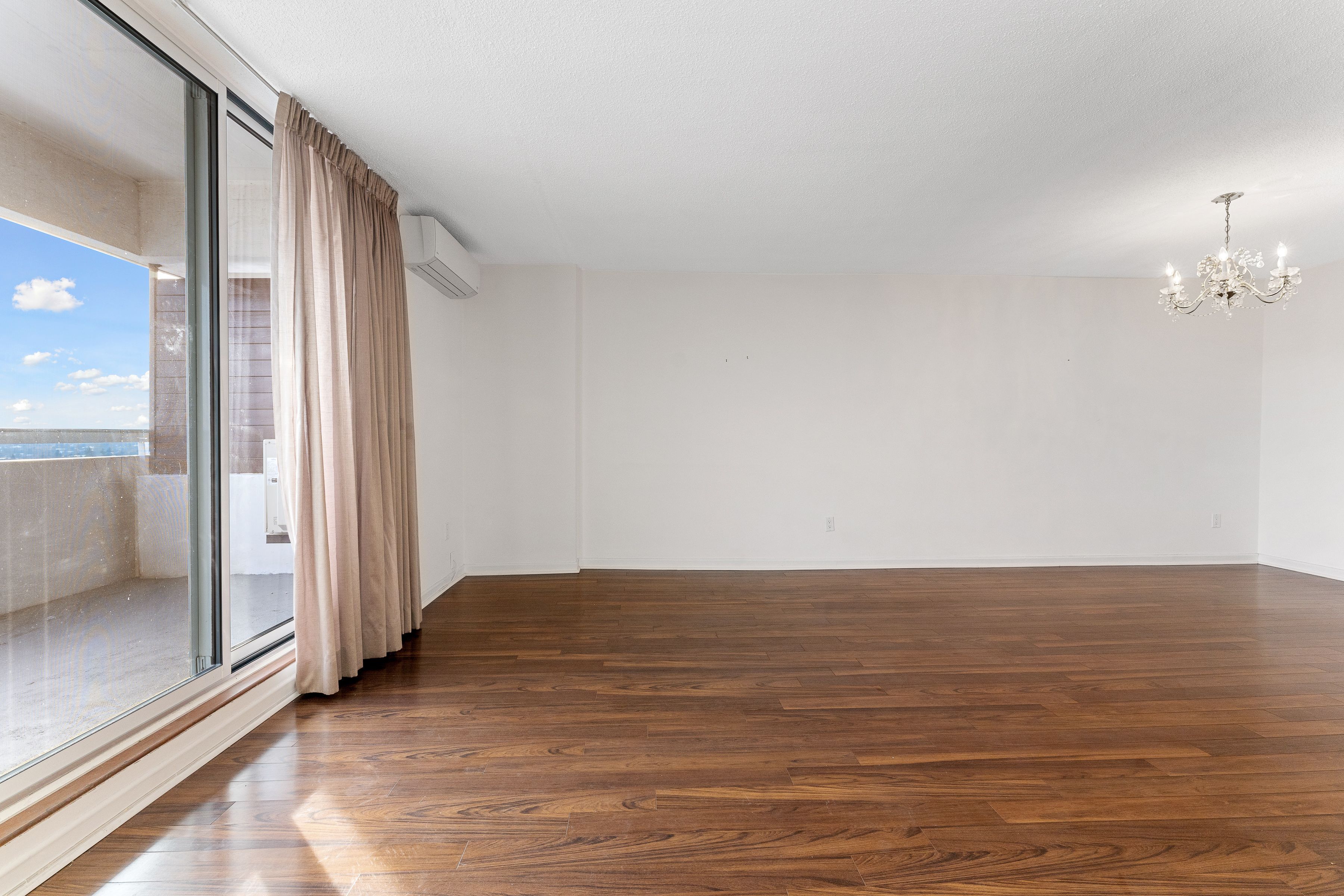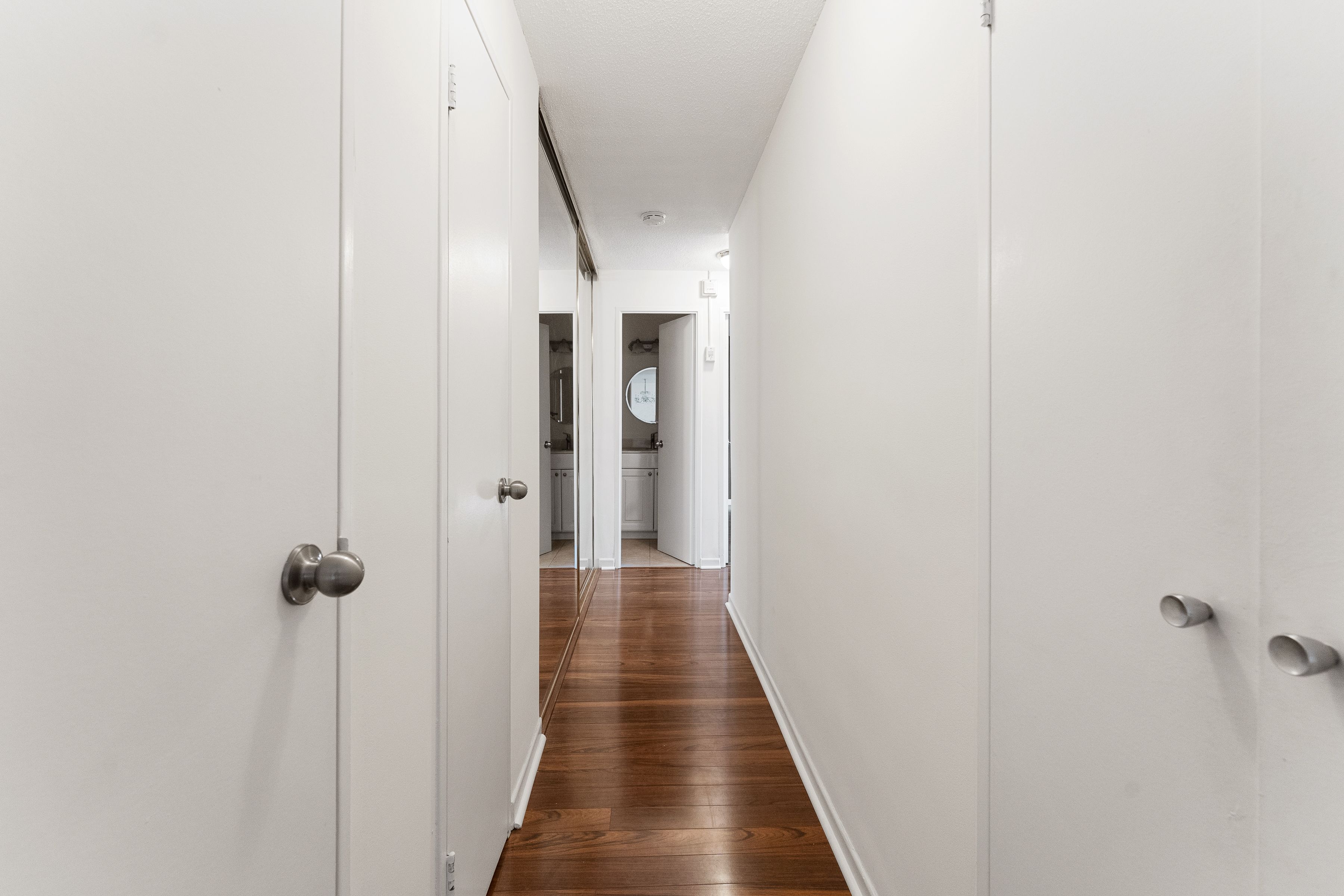 South facing 2+1 penthouse unit with suite length balcony overlooking greenery with gorgeous views! Custom maple cabinetry with built-in mw/hood fan, ss fridge/stove/dw. Separate enclosed ensuite laundry room for extras convenience and quiet. Open concept living room/dining room/den for lots of living space. 2 newer split system ac units for total control over temperature. Updated floors, baths, windows. Ton of storage space! Great transit options!