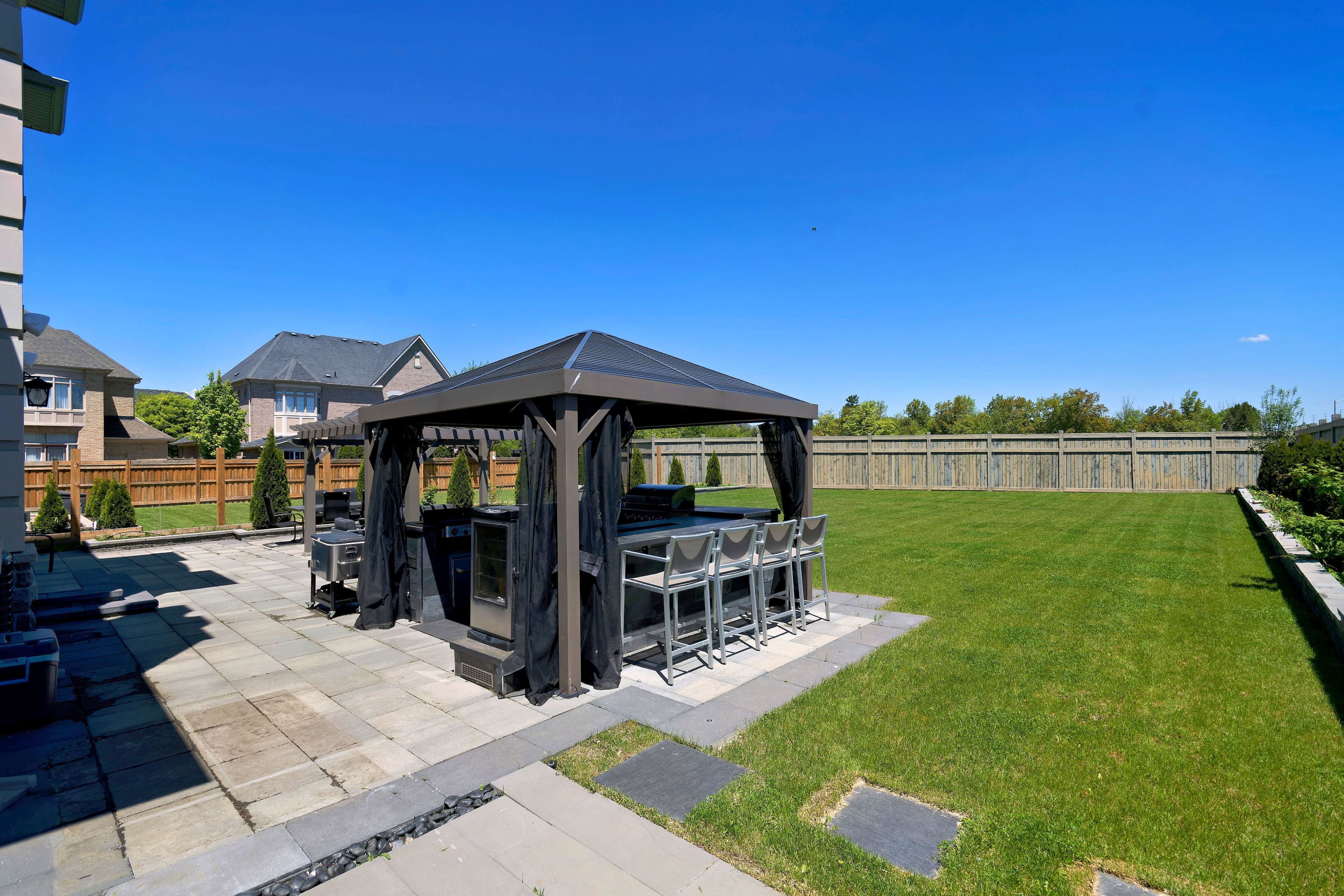 Welcome to medallion on mississauga road. Postcard setting with lush, wooded areas, winding nature trails & a meandering river running through the community. The prestigious corner of the estates of credit ridge. Breathtaking vistas, parks, ponds, & pristine nature. Upscale living, inspired beauty in architecture, a magnificent marriage of stone, stucco, & brick. A 3-car tandem garage with a lift making room for 4 cars, plus 6 on the driveway. Upgrades & the finest luxuries throughout. The sprawling open concept kitchen offers artisanal cabinetry, wolf gas stove, wolf wall oven & microwave, smart refrigerator, beverage fridge, pot filler & even a secondary kitchen with a gas stove, sink & fully vented outside. Large breakfast area off the kitchen with a walkout to the backyard offering an outdoor kitchen with sink, natural gas bbq, fridge, hibachi grill, smoker, beer trough, & pergola. Enjoy the firepit & lots of space for entertaining on this deep lot. The 16-zone irrigation setup makes it easy to care for the lawn & flower beds. Noise cancelling fencing lets you enjoy the indoor-outdoor sonos sound system without hearing the traffic. The spacious primary bedroom has a walk-in closet, stunning ensuite with designer countertops & large frameless shower which utilizes the home water filtration system. With two semi-ensuites, all the other 4 bedrooms have direct access to a full bathroom. The finished basement is a masterpiece with $100k+ home theatre with access to the wine cellar & even has a rolls royce-like star lit ceiling & hidden hi-fi sound system. There are 1. 5 bathrooms in the basement, a spa room with sink, counters & cabinetry, heated floors & an lg steam closet dry-cleaning machine. A rec area perfect for the pool table, & another room used for poker & snacks right next to the theatre. A large bedroom for family members or guests. There is not enough space here to communicate just how breathtaking this house truly is, come see it in person & fall in love!