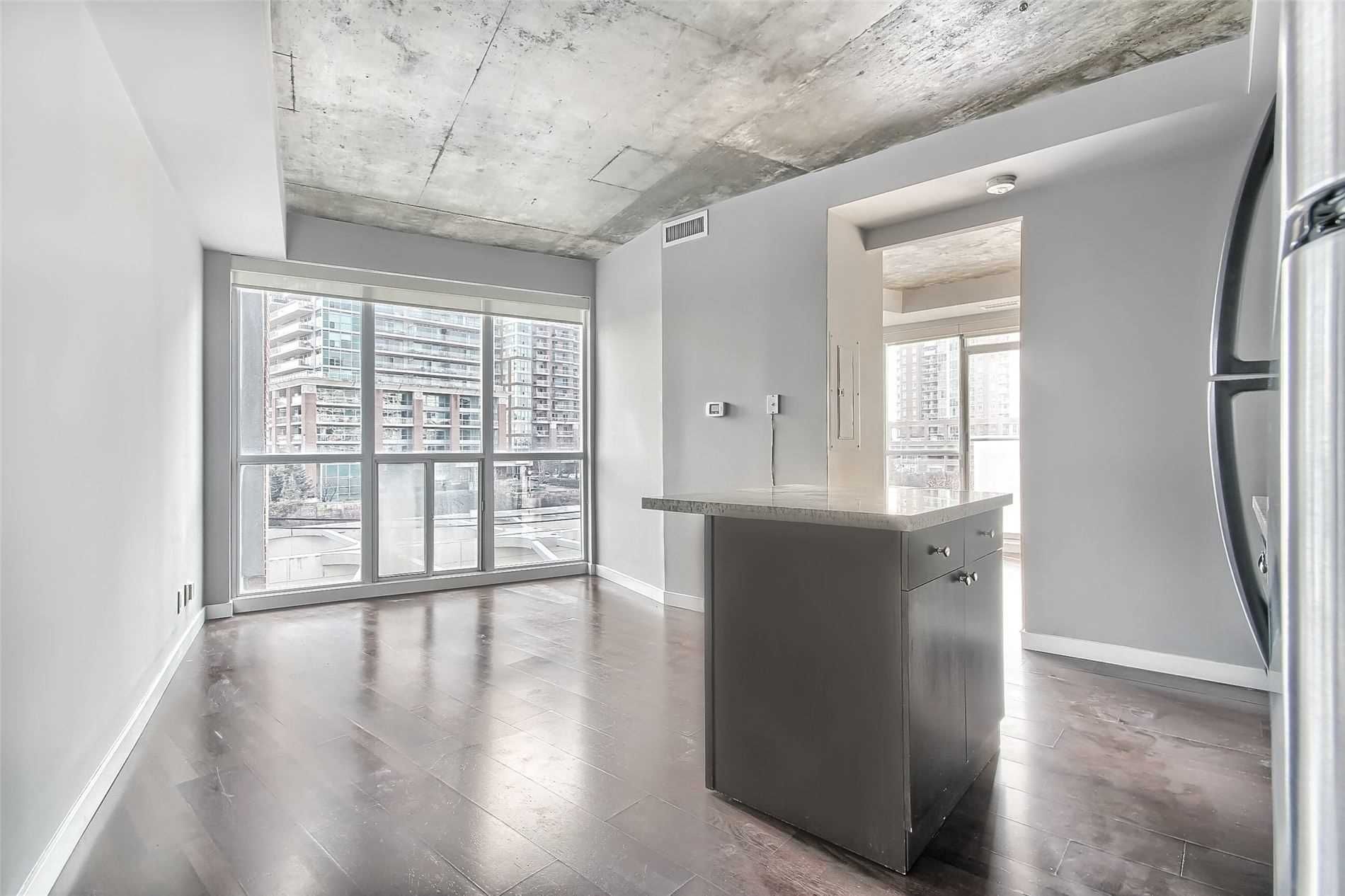 Welcome to dna one! Awesome unit on the sunny southwest corner in one of king west's most desirable buildings! Amazing lofty space with first rate amenities and an unbeatable location. Tall ceilings, wood flooring, granite counters, center island. Full size appliances with a gas range. Proper sized bedroom with space for furniture and a large closet. Beauty open concept layout with a cool shape. The corner exposure and huge windows make it bright and sunny. Steps to king west and everything that downtown has to offer. Shops, bars, restaurants, ttc and groceries are at your door and easy expressway access. Building amenities include a gym, party room, visitor parking, awesome rooftop terrace and concierge! Parking and locker included. A rare opportunity for a unit of this caliber!