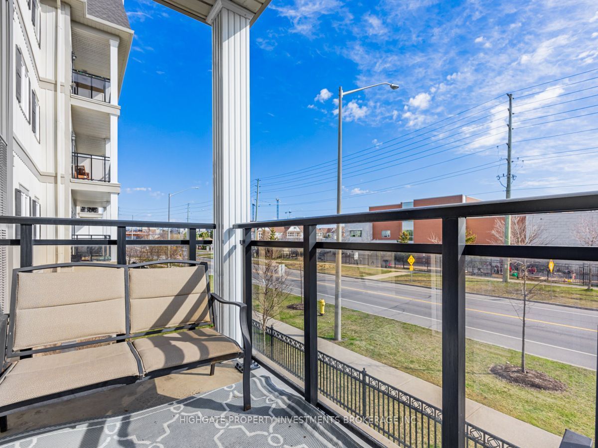 Stunning condo in the heart of bowmanville-perfect for seniors, professionals, or couples. This 1-bedroom plus den suite offers an open-concept layout, with the den suitable as a second bedroom. Large windows and a private balcony create a bright, airy living space. The kitchen features a breakfast bar and pantry, along with ensuite laundry and a spacious walk-in closet in the bedroom. Conveniently located close to all amenities, just a short walk to downtown, local events, and nearby schools.