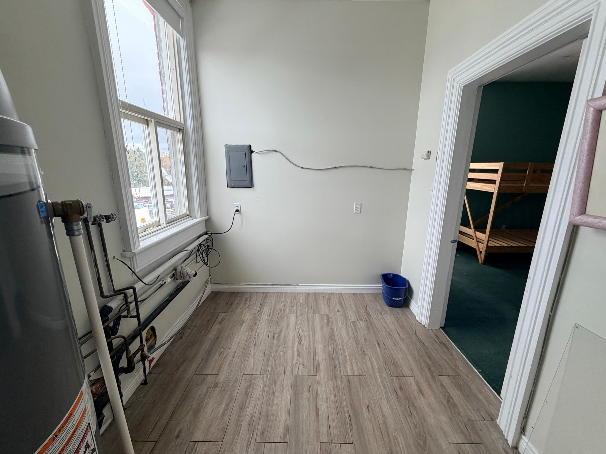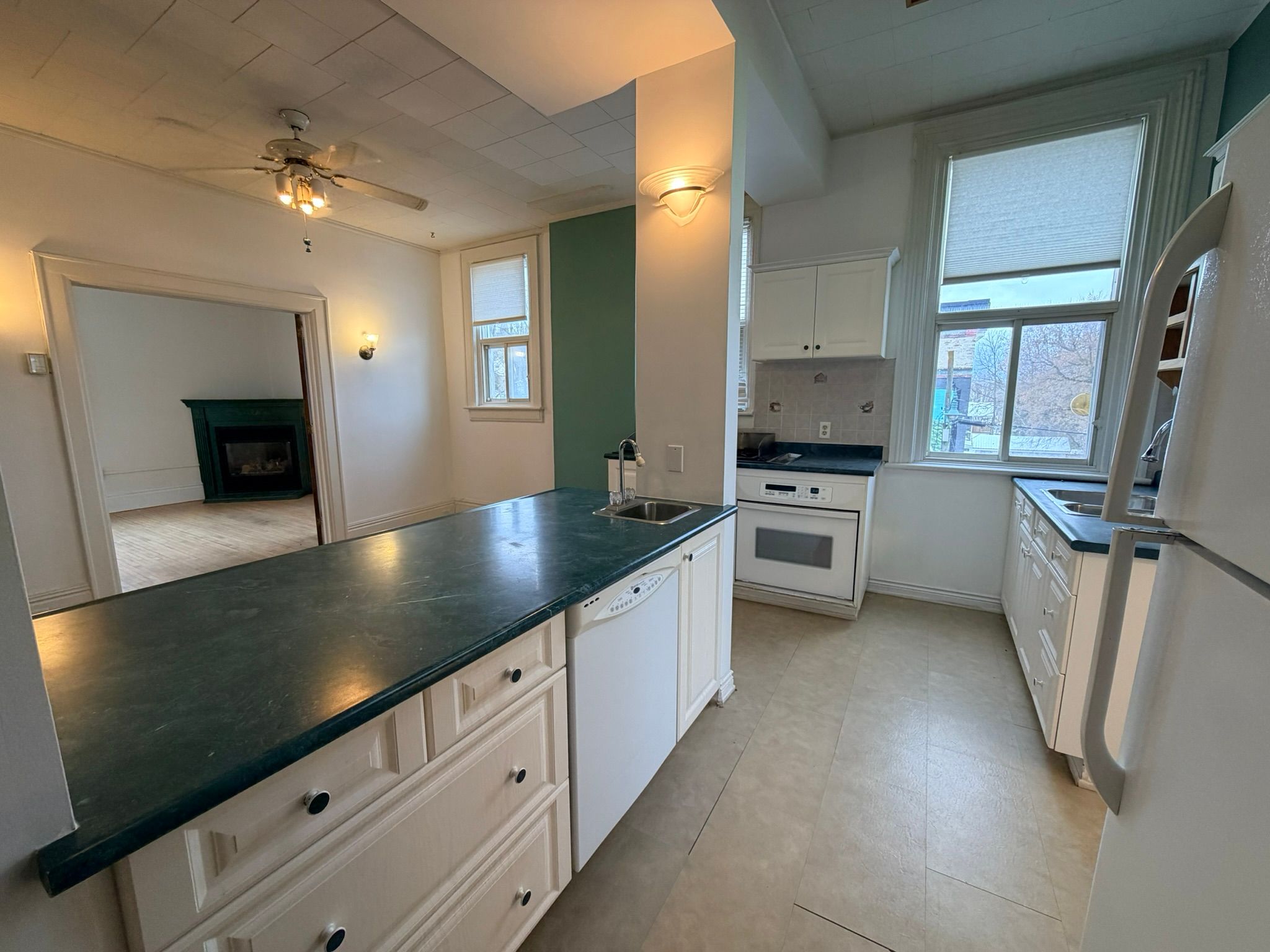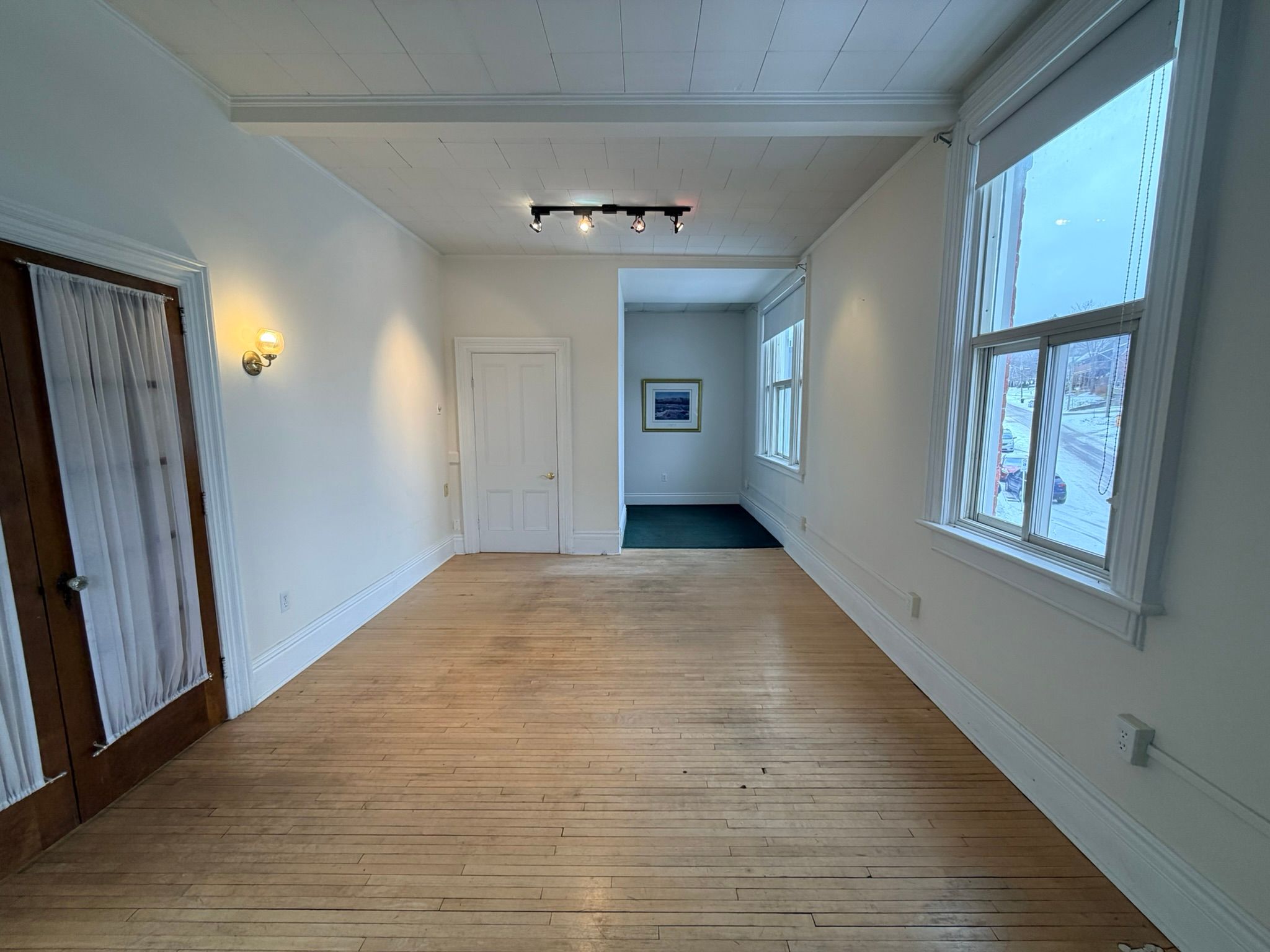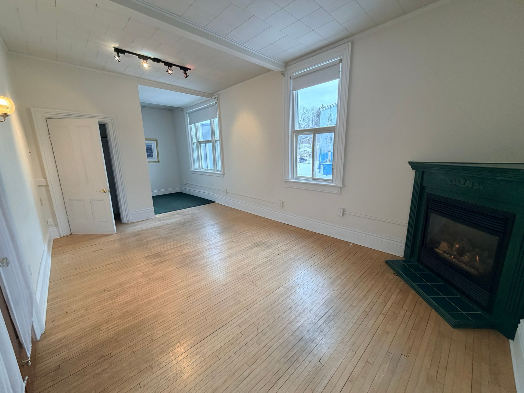A bright and spacious upper-level residential apartment that spans the full width of the two commercial units below, offering a unique blend of privacy and downtown convenience. This beautifully appointed 1-bedroom, 1-bathroom suite features soaring ceilings, original hardwood floors, and a welcoming gas fireplace perfect for chilly winter nights. Natural light pours in from windows on all sides, creating a warm and inviting atmosphere throughout. With a dedicated laundry area and generous living space, this character-filled apartment delivers comfort, charm, and functionality in the heart of penetanguishene's historic core.