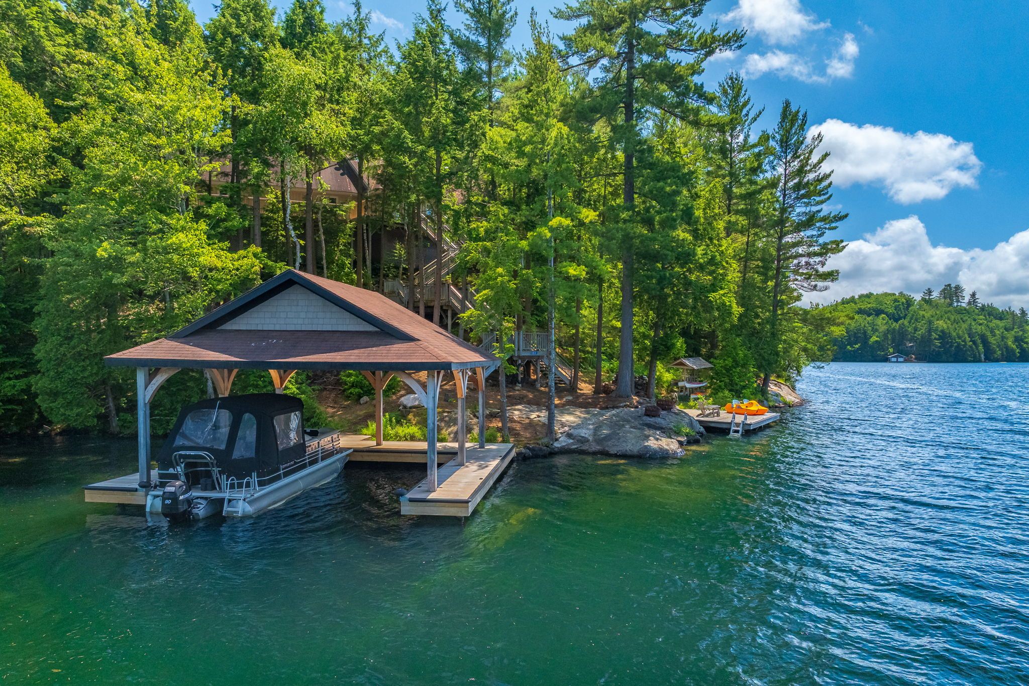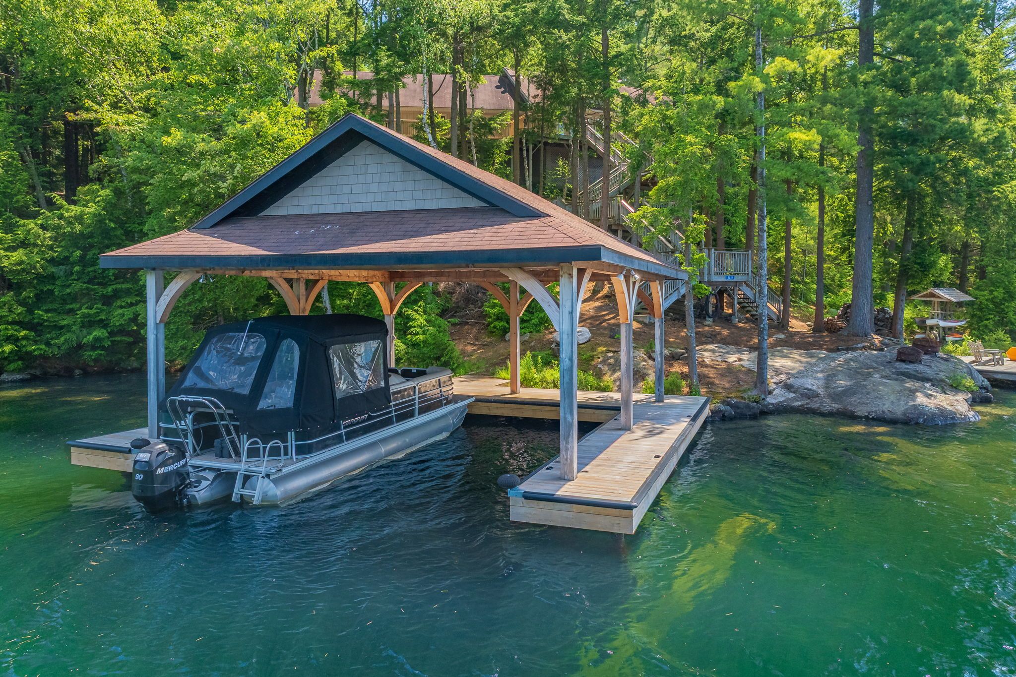 • Impressive boat port and lounge swim dock for summer fun.