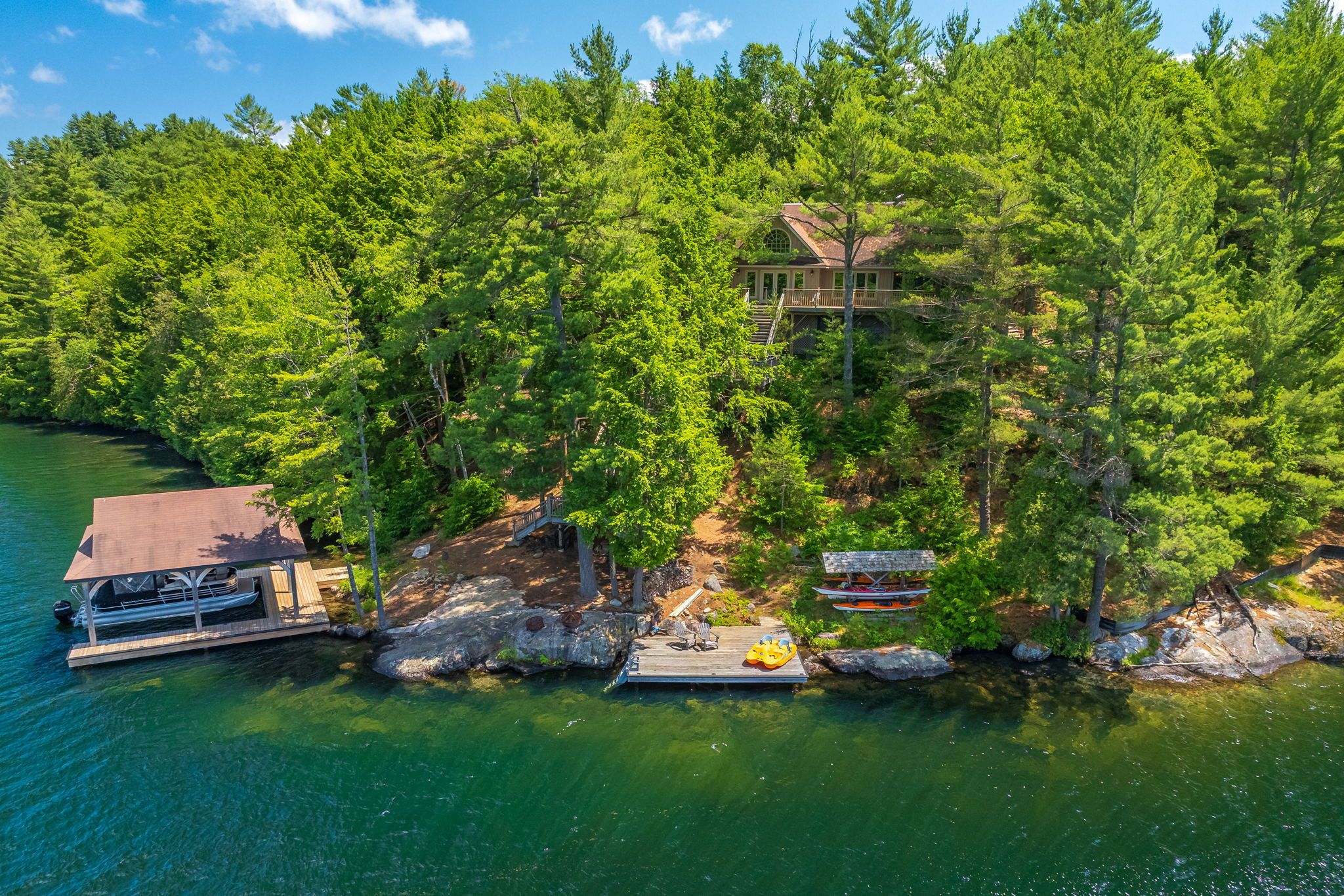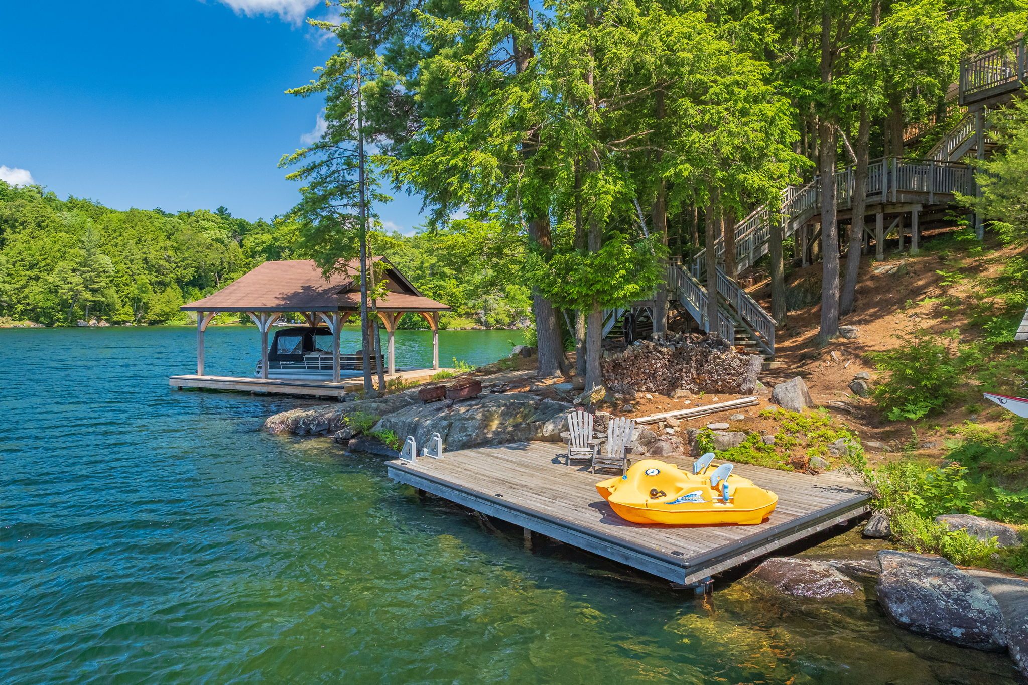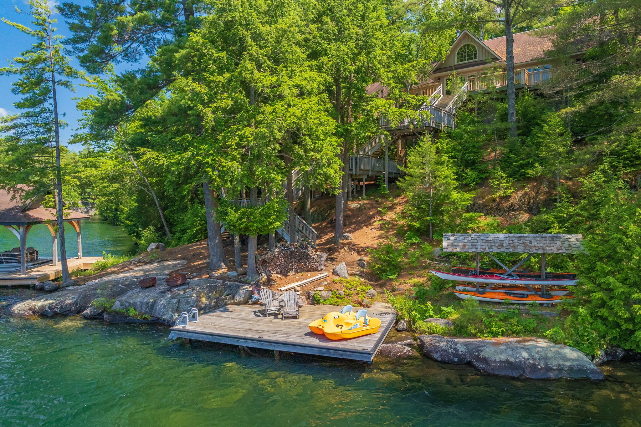 Subtype DetachedIndoor Features Built-In Oven, Primary Bedroom - Main Floor, Water HeaterOutdoor Features Deck, Hot Tub, Privacy, Recreational Area, Seasonal LivingAmenities Clear View, Island, Lake/Pond, Part Cleared, Waterfront, Wooded/TreedOwnership FreeholdViews Lake, WaterWaterfront DirectBasement NoneFoundation Concrete, PiersHeating / Cooling BaseboardHeating Fuel ElectricSewer Septic