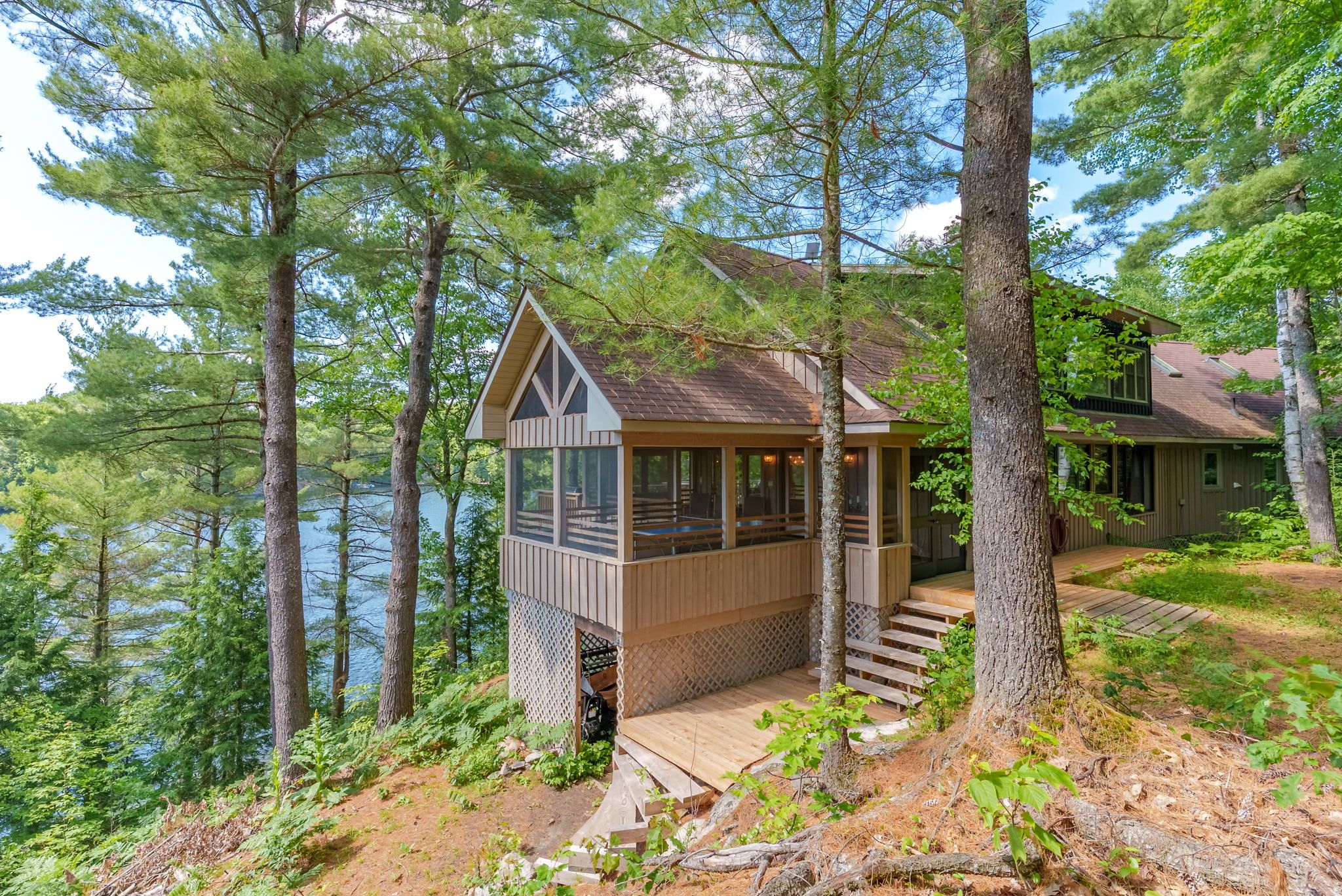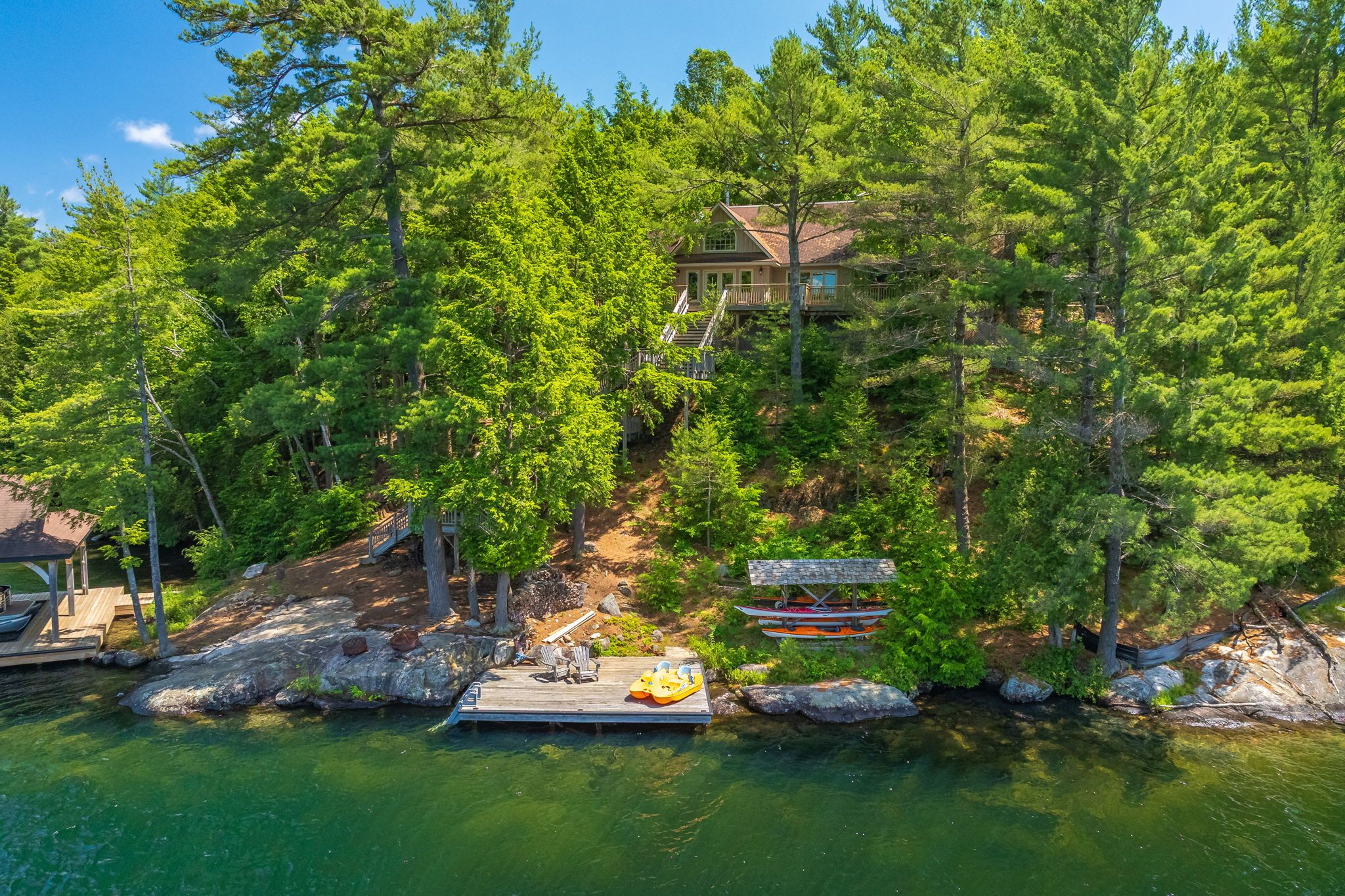 Welcome to beautiful robert's island on spectacular skeleton lake. Skeleton lake is known for it's crystal clear water, rugged dramatic shorelines, fantastic for sailing and kayaking. This "strickland" built four bedroom cottage exudes warmth and character. The spacious open concept floor plan is designed for entertaining, a grand loft for the pool table or media room, gorgeous super sharp new custom kitchen, enjoy the natural environs from the wonderful oversized muskoka room. At the shore you will find an impressive timber frame boat port, enjoy fantastic summer sunsets on the lounge swim dock with fabulous granite rock out cropping. Stroll down the meandering path to a special sitting dock to enjoy the sunrise with your morning coffee . Over 500 feet of shoreline, 2. 6 acres of beautifully forested lands ensure your privacy. Island living provides a wonderful different lifestyle feeling one can only experience. A must see!