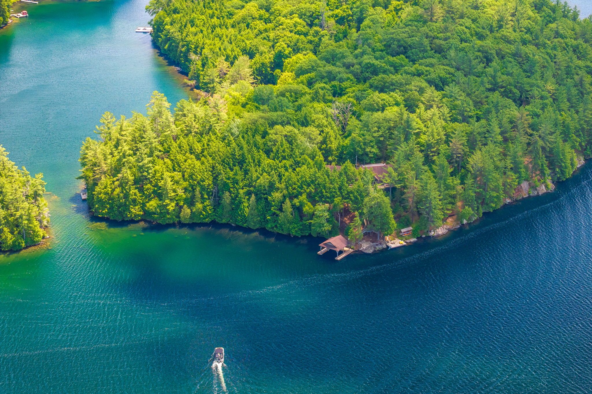 • Over 500 feet of shoreline ensures privacy and tranquility.