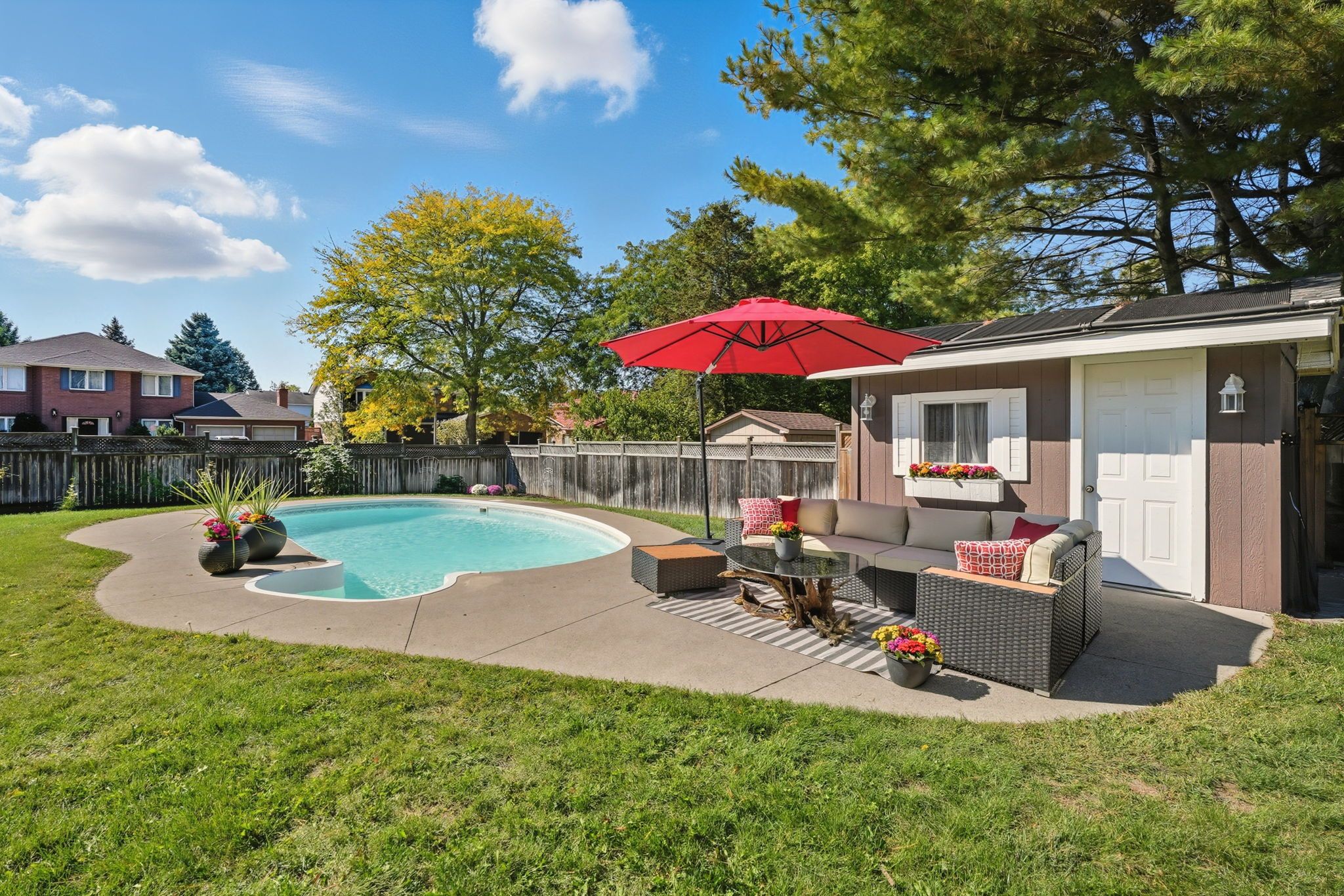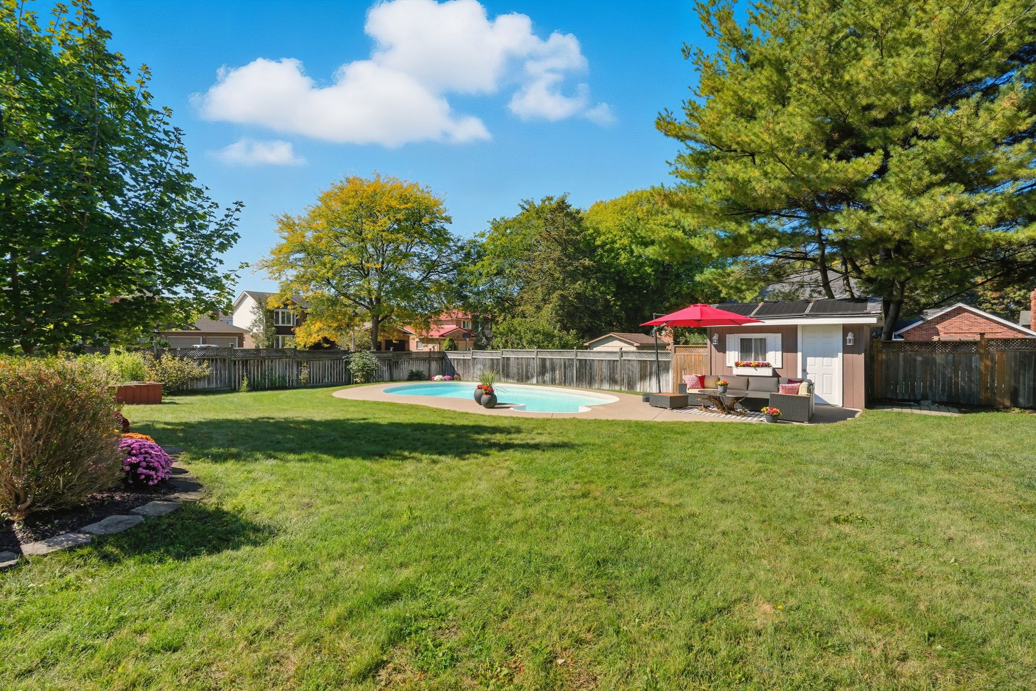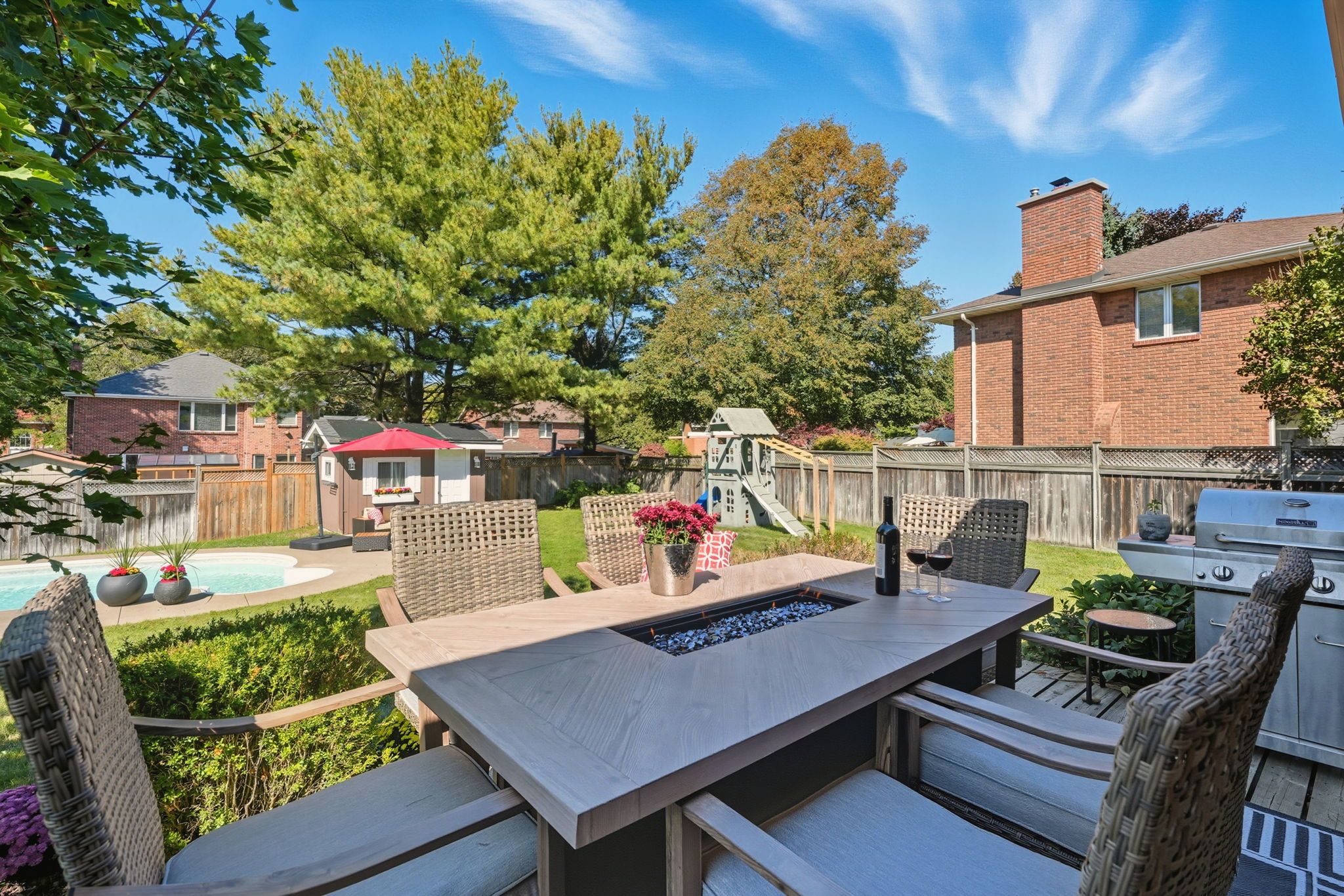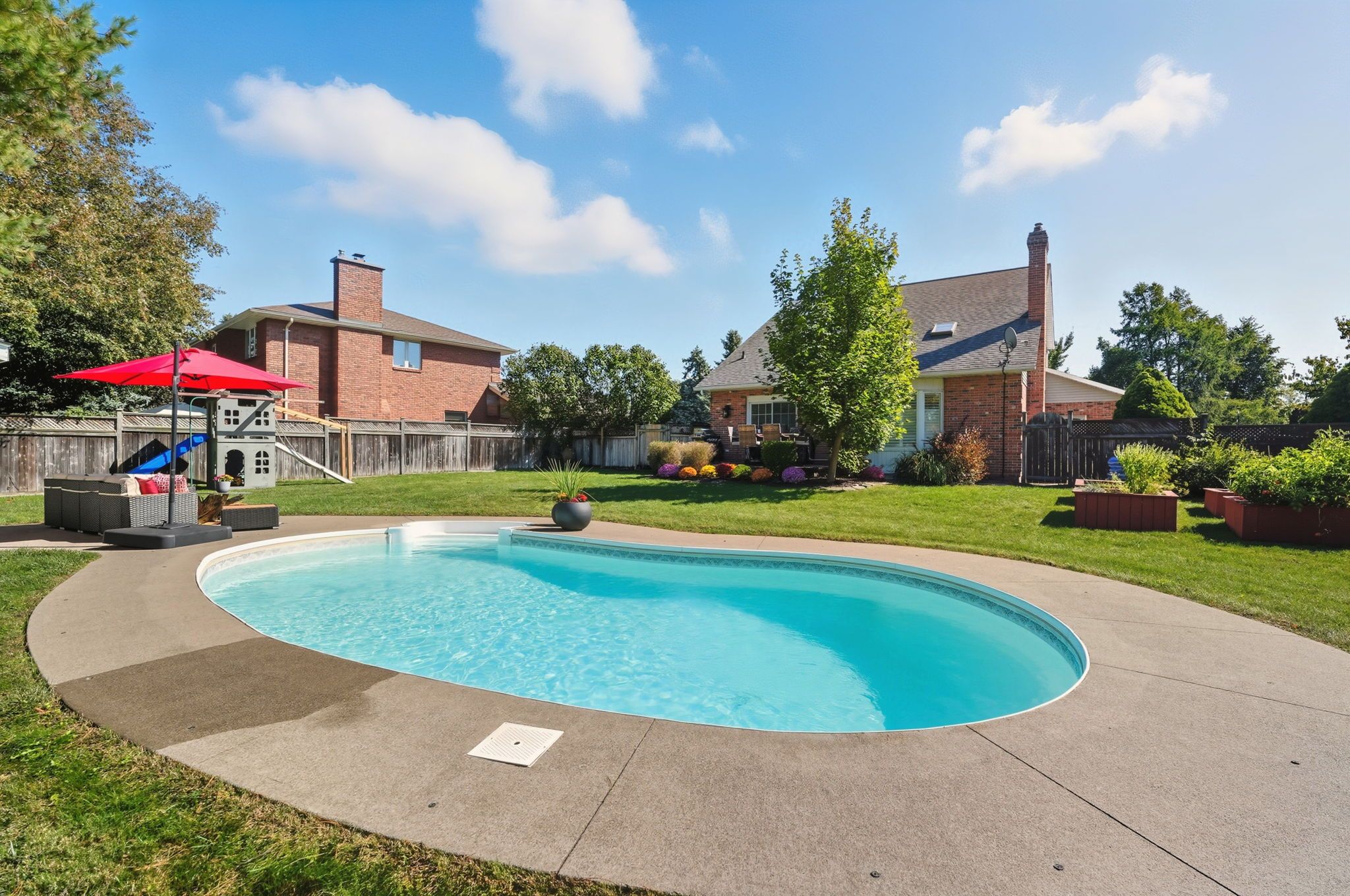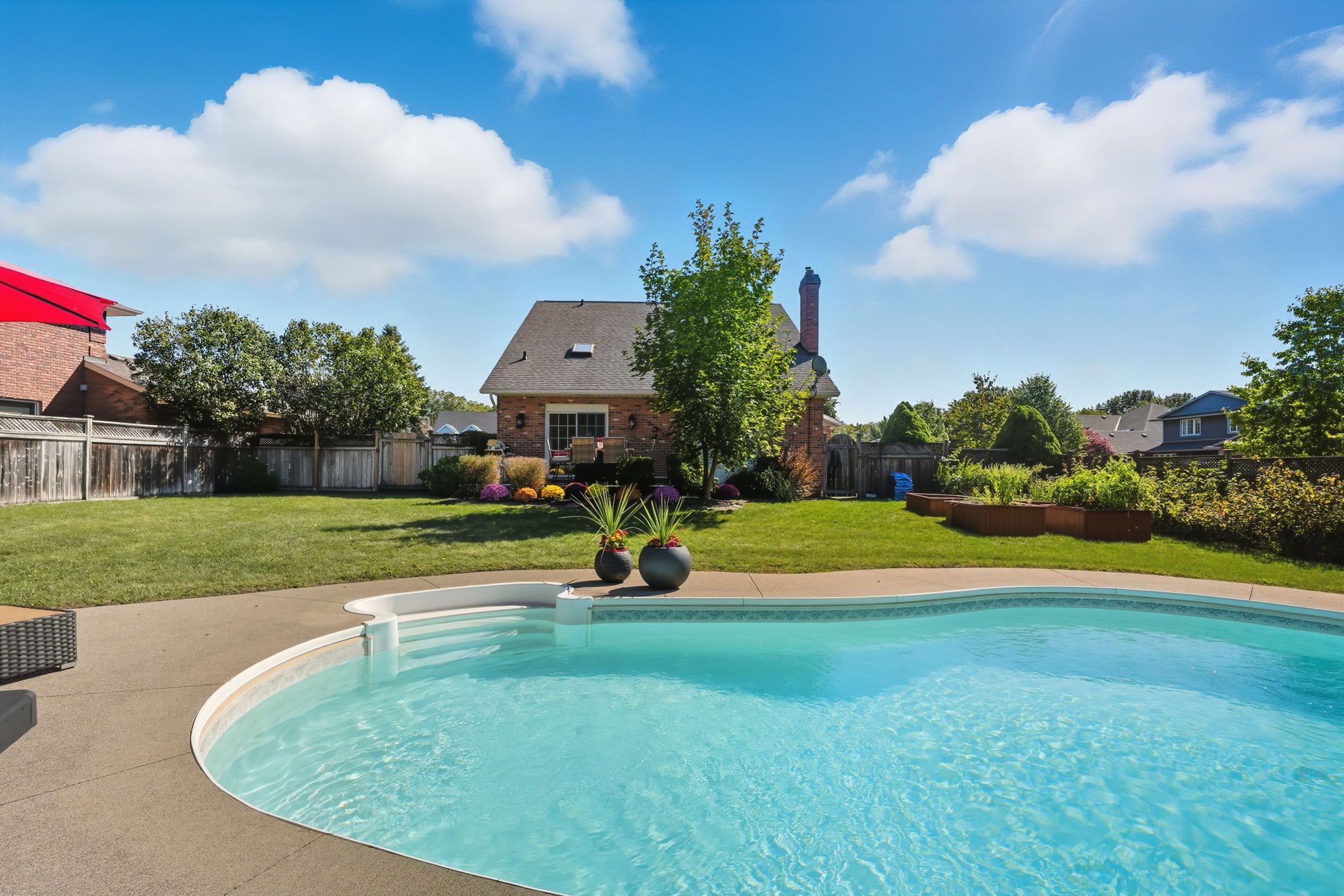 • Large fenced backyard with a deck and in-ground pool for outdoor fun.
