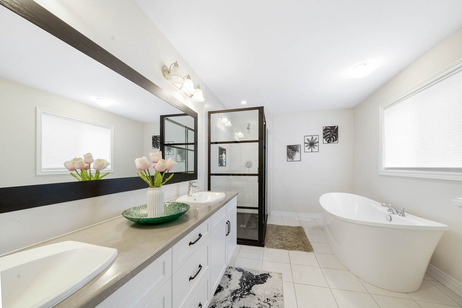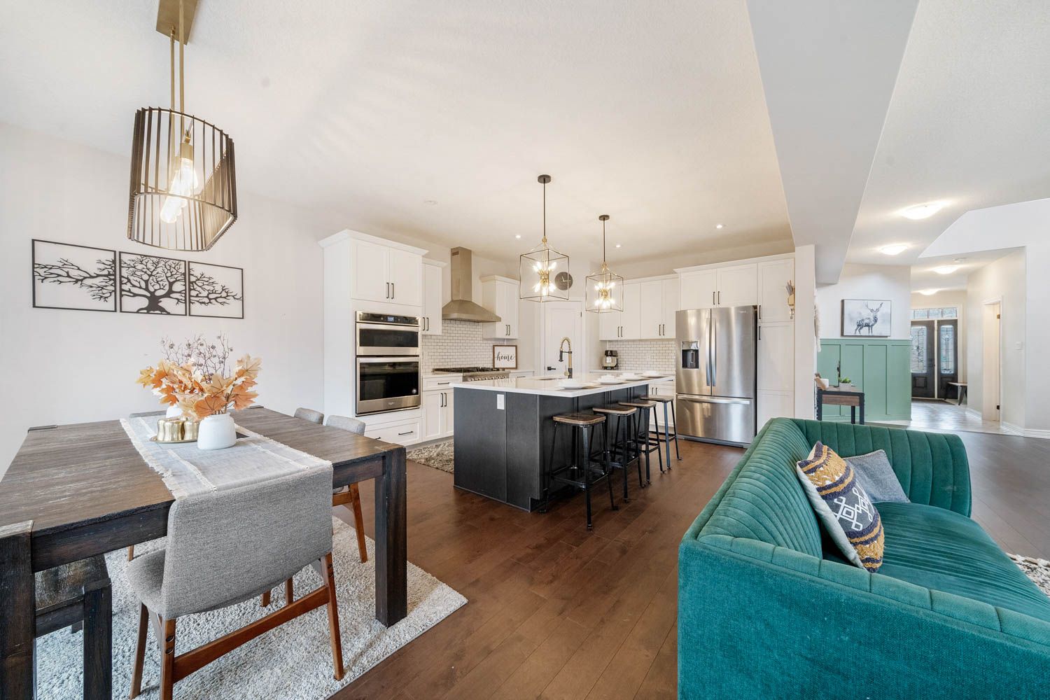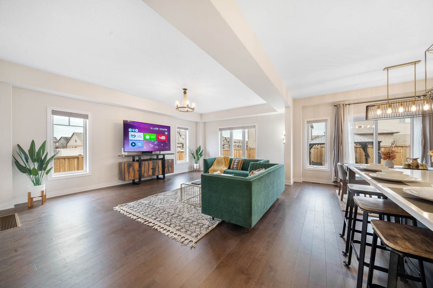 Stunning middleton model by devonleigh homes. Prime corner lot with blue mountain views. This exquisite 4-year-old middleton model by the highly regarded devonleigh homes is perfectly situated on a premium, fully fenced corner lot in summitview, one of collingwood's most sought-after neighborhoods. Enjoy breathtaking views of blue mountain while being just minutes from downtown collingwood and all its amenities. Offering 3,400 sq. Ft. Of beautifully upgraded living space, this 5-bedroom, 3. 5-bathroom detached home is designed for modern living. Thoughtful upgrades throughout include elegant entrance tiles, a covered porch, custom maple stairs, hardwood flooring, a stylish mudroom with access to the double garage, and upgraded washrooms, including a stunning ensuite. The recently completed fully finished basement adds incredible appeal, featuring an additional bedroom, family room, 4-piece bathroom, and a versatile flex space, ideal for a bar, kitchenette, or home office. Designed with an open-concept layout and soaring 9-ft ceilings, the main floor feels spacious and inviting. The gourmet kitchen and breakfast area boast quartz countertops, upgraded cabinetry, stainless steel appliances with a wall oven, a stylish backsplash, and a pantry for added convenience. The great room flows seamlessly to the backyard oasis, complete with a stone patio and gazebo, perfect for outdoor entertaining. The upper level is equally impressive, featuring a huge primary suite with a walk-in closet and a spa-like 5-piece ensuite, along with three additional well-sized bedrooms, a 4-piece family bathroom, and an upstairs laundry room for ultimate convenience. Ideally located near collingwood's waterfront, skiing, golf courses, top schools, shops, and restaurants, with den bok family park just 200m away, this home offers the perfect balance of luxury, comfort, and accessibility.