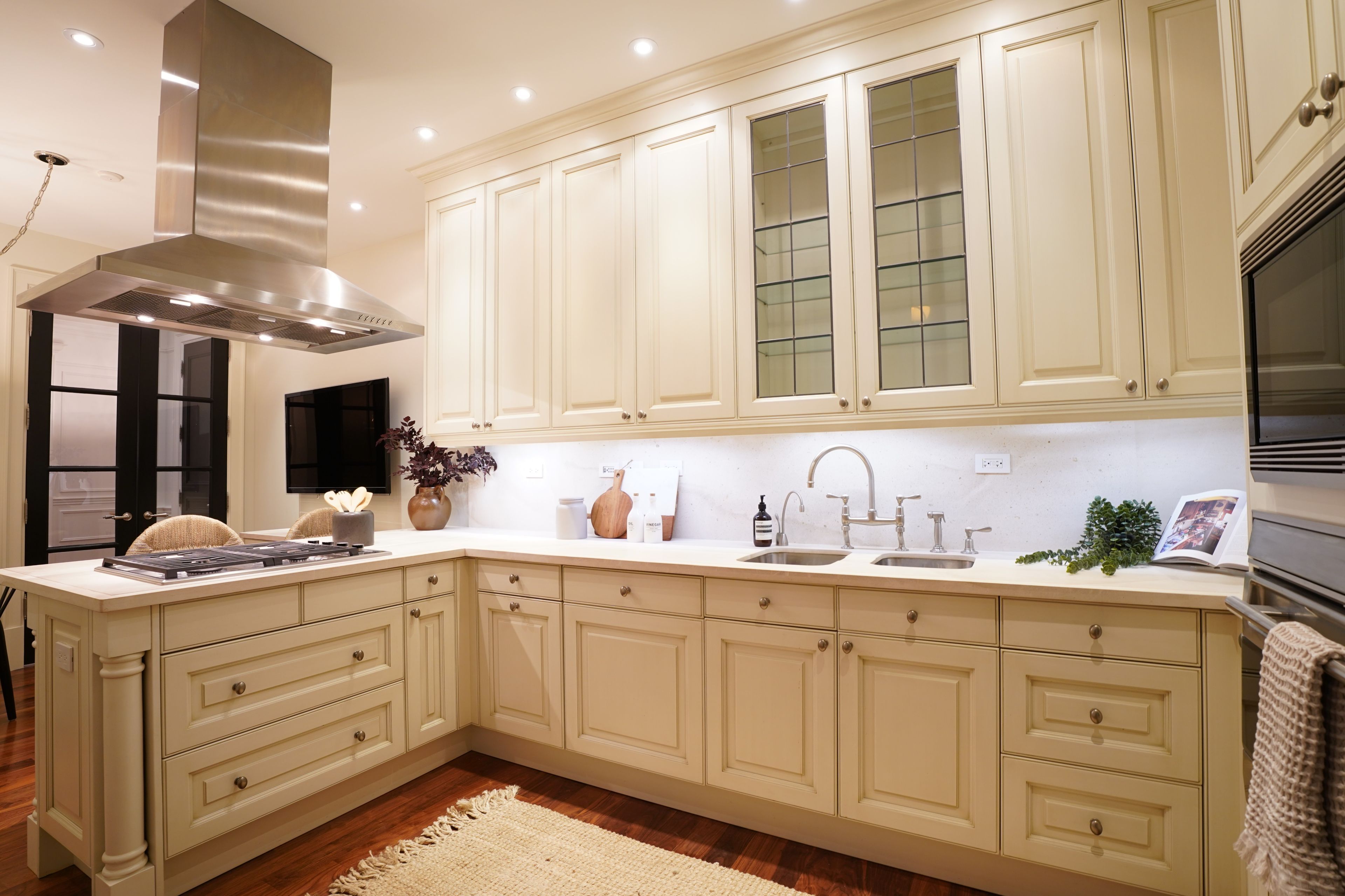 • Custom kitchen with premium appliances and a spacious walk-in pantry.