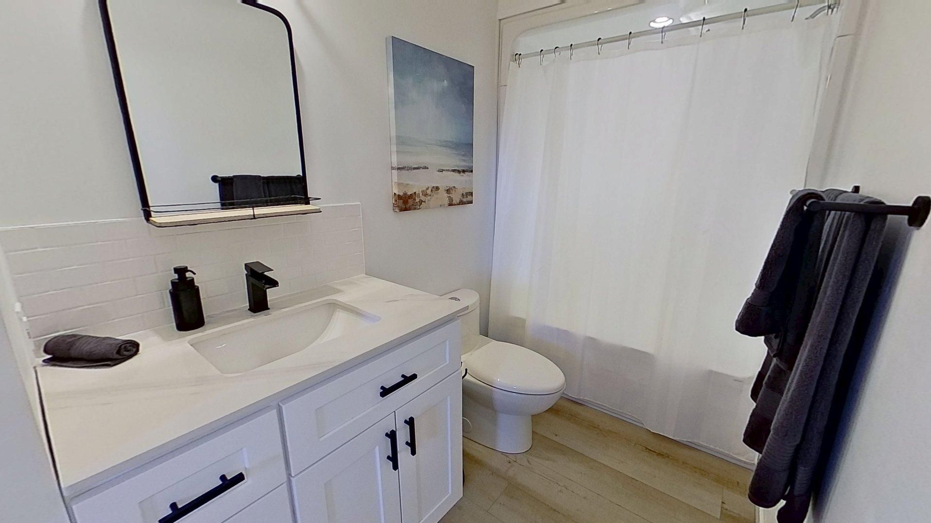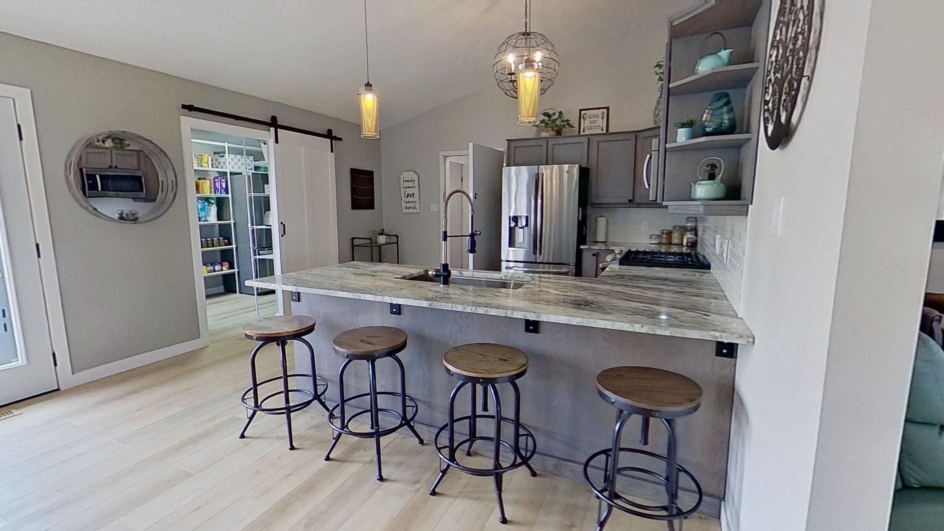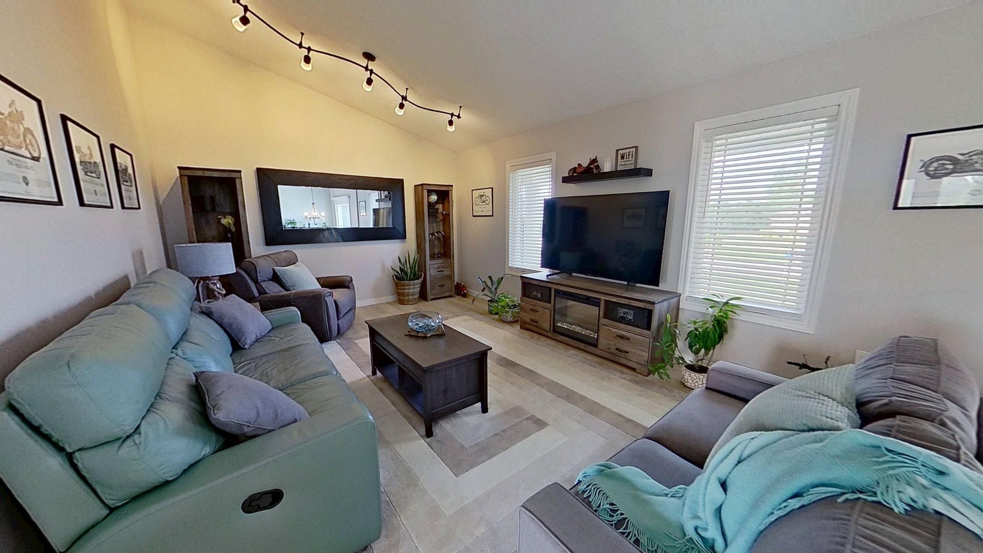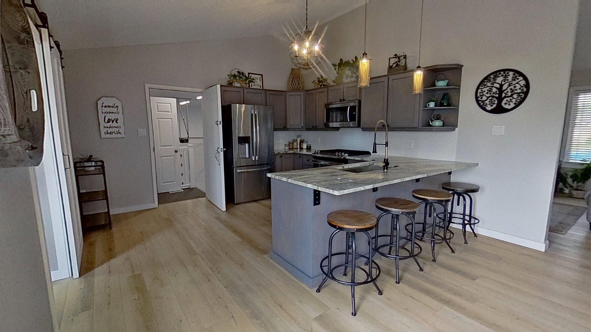 • Open concept living area with new appliances and granite countertops.