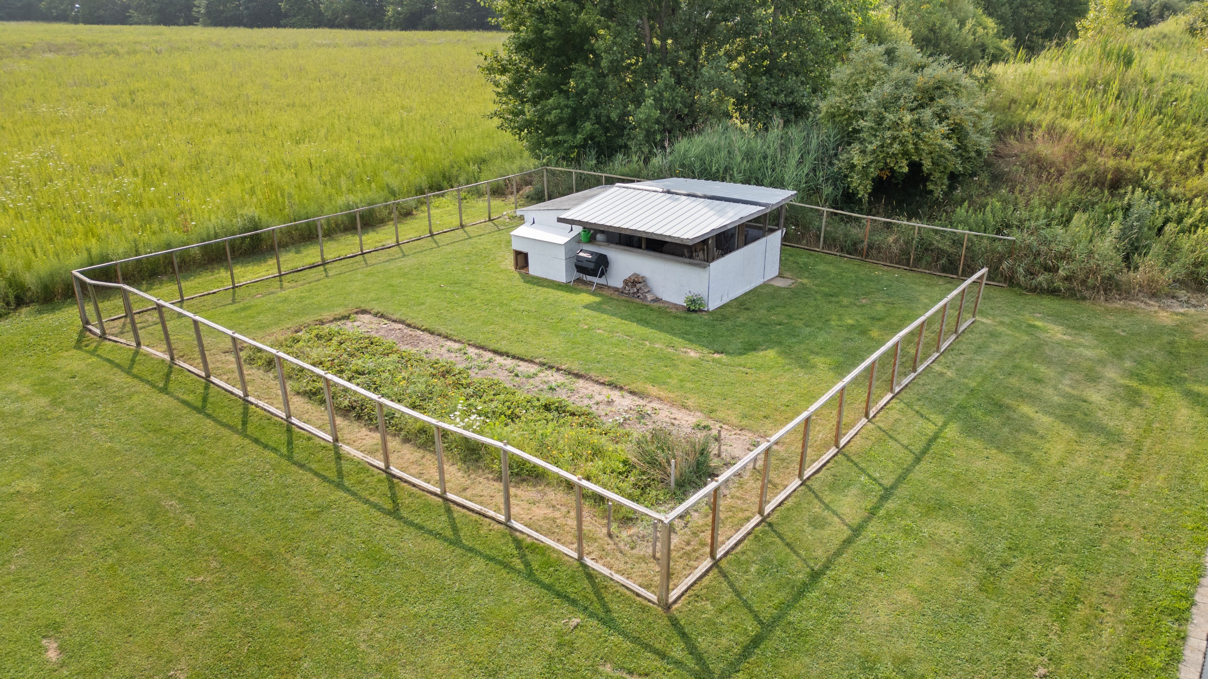 • Spacious yard with secure area for storage or gardening.