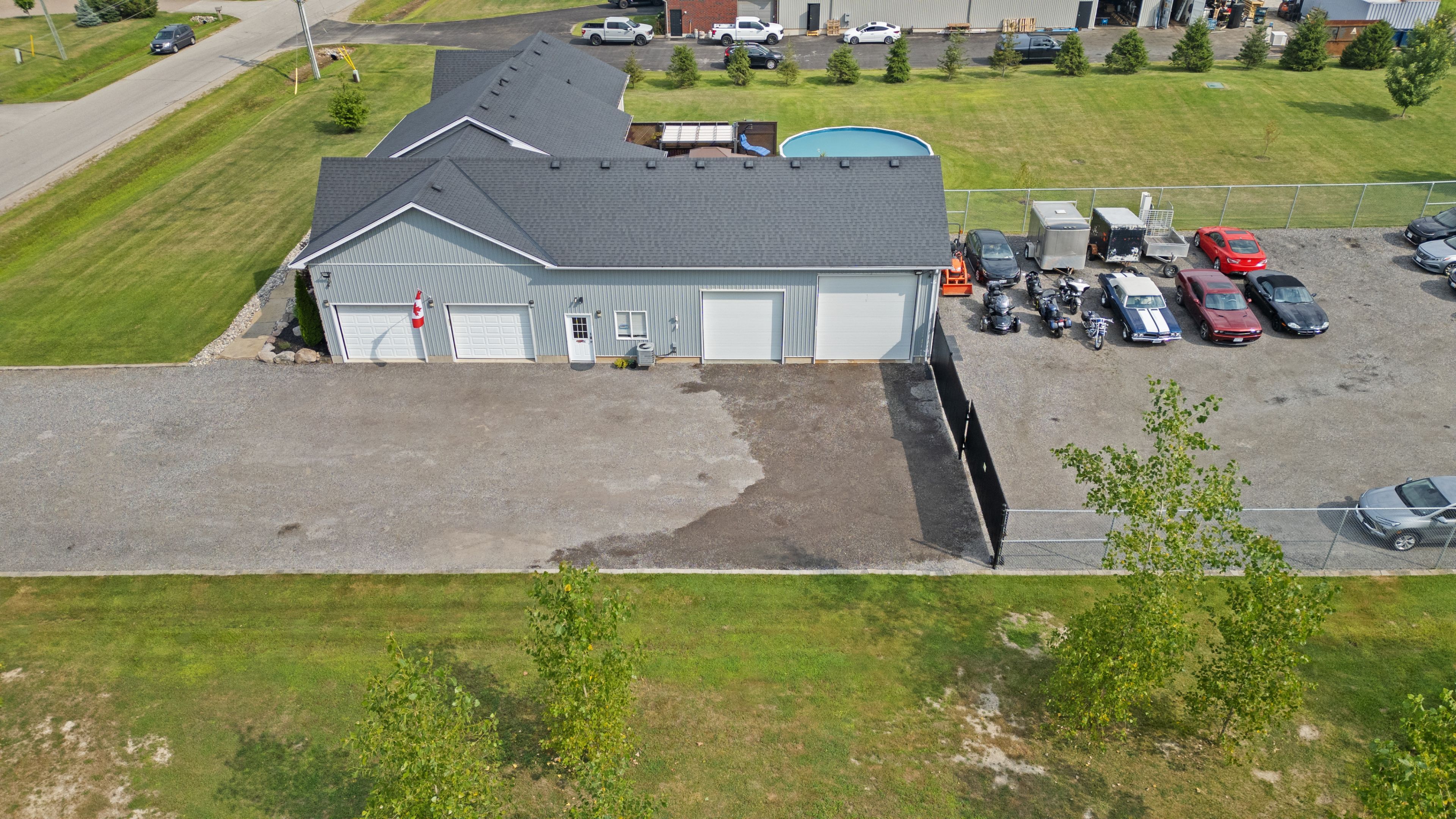 Over 5,000 sq foot living space, 3300 sq foot shop, 6 bedroom, 3 1/2 bath on the south side of dorchester in a quiet subdivision, located on an end lot, on a cul-de-sac street. Zoning is commercial/ residential to accommodate a large family, plus a shop with insulated doors, office with a 2 piece bath, secure gated compound and tons of storage space inc. A 16 x 30 mezzanine to fully accommodate your home based business. Open concept living, dining and kitchen with all new stainless appliances, granite countertops and a large pantry. Large patio for dining, entertaining, hanging out by the pool and soaking in the hot tub. Large lower level features a 30' x 30' entertaining space, 10 foot ceilings, 3 additional bedrooms, 4 piece bath and laundry room with new washer/dryer. Large tree lined yard with chicken coop/garden enclosure. Close to the 401 and many local amenities, shopping, restaurants, schools hockey arena, nature trails, dog park, soccer, baseball and golf courses. All appliances and window coverings included. 7'x 10 kitchen pantry with large fridge/freezer. Recently finished lower level. Water softener, bar fridge pool table area for entertaining. Newly renovated main floor bathrooms. All new waterproof luxury vinyl plank flooring throughout. Master has a 3 piece ensuite and a walk in closet. Eco flow septic system, large raised deck with pool and hot tub plus 12 x 12 gazebo and dining area retractable pergola. Attached oversized 2 car garage plus additional shop/ office/ truck bay with all new blown in insulation, new led lighting and a climate controlled shop with epoxy floor, pvc wall/ceiling panels and new shop/office high efficiency gas furnace, and separate central air system. Shingles are 5 years old, new gas water heater (2025) is owned, recently serviced central air x 2 and much more!