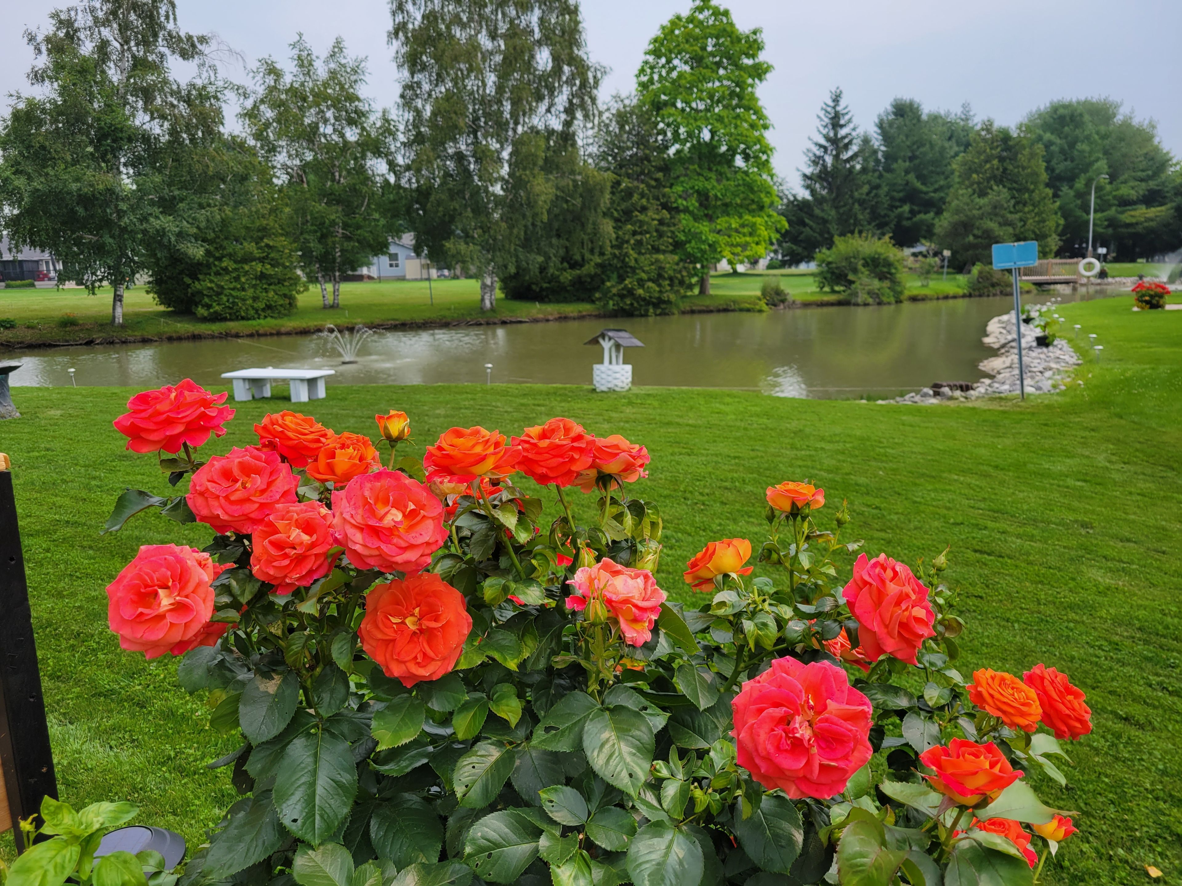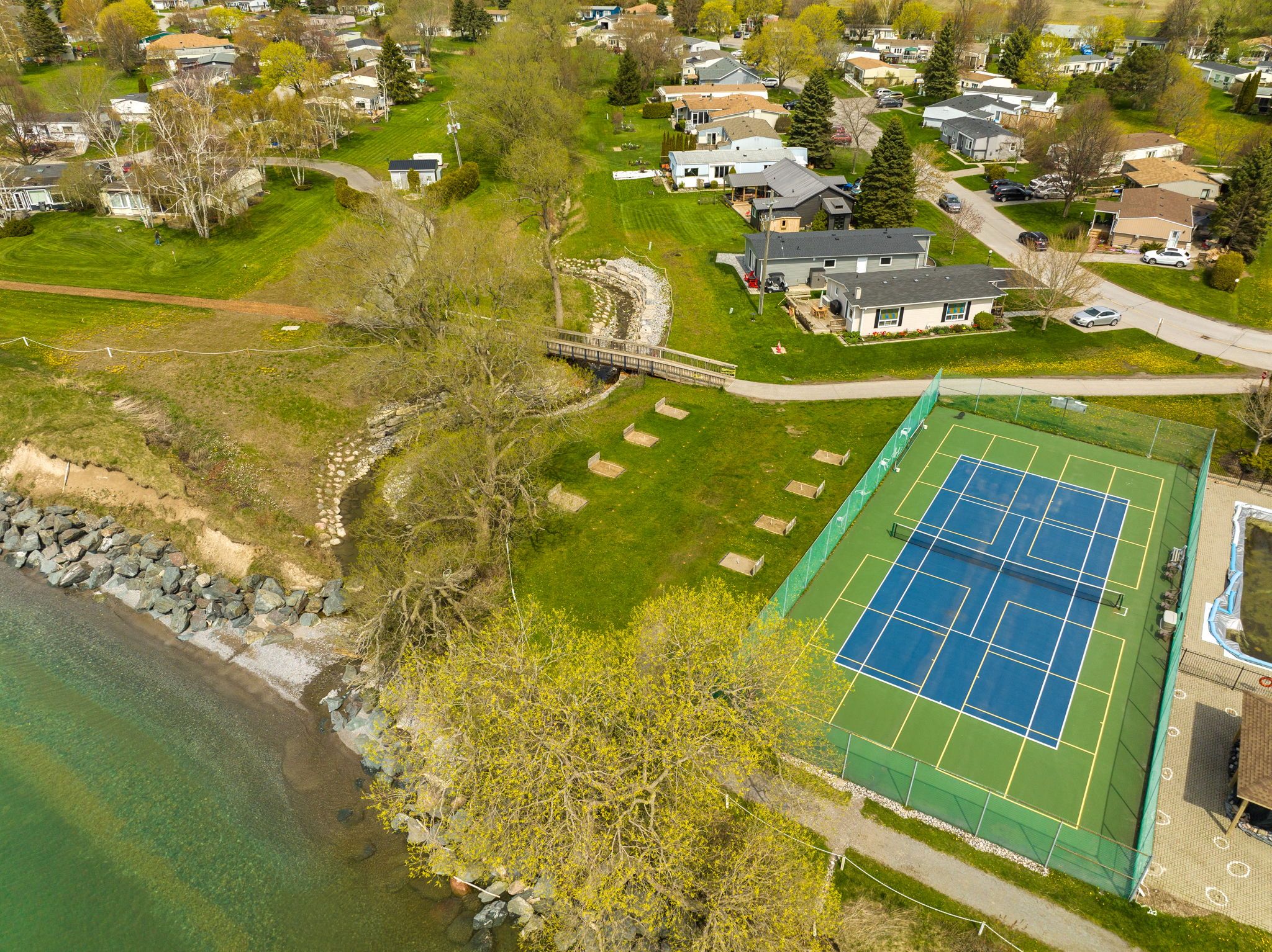 Welcome to 1 steelhead lane, nestled in the highly sought-after wilmot creek adult lifestyle community in newcastle, a vibrant senior living resort along the shores of lake ontario. This bright and inviting home features an abundance of windows and a picturesque setting backing onto a serene pond and the 5th hole of the community's 9-hole golf course. The open-concept layout offers a spacious living and dining area, a well-appointed kitchen with new quartz countertops and backsplash, and a sun-filled family sunroom perfect for relaxing or entertaining. The home includes two generous bedrooms, two 3-piece bathrooms, and the convenience of a stacked washer and dryer neatly located in one bathroom. A cozy gas fireplace stove adds warmth and charm. Residents enjoy an exceptional array of amenities including a community hall, gym, lap pool, hot tub, sauna, two heated outdoor pools, pickleball and tennis courts, baseball field, pharmacy, hairdresser, shuffleboard, dart room, and billiards room. Experience resort-style living in a peaceful, beautifully maintained waterfront community.