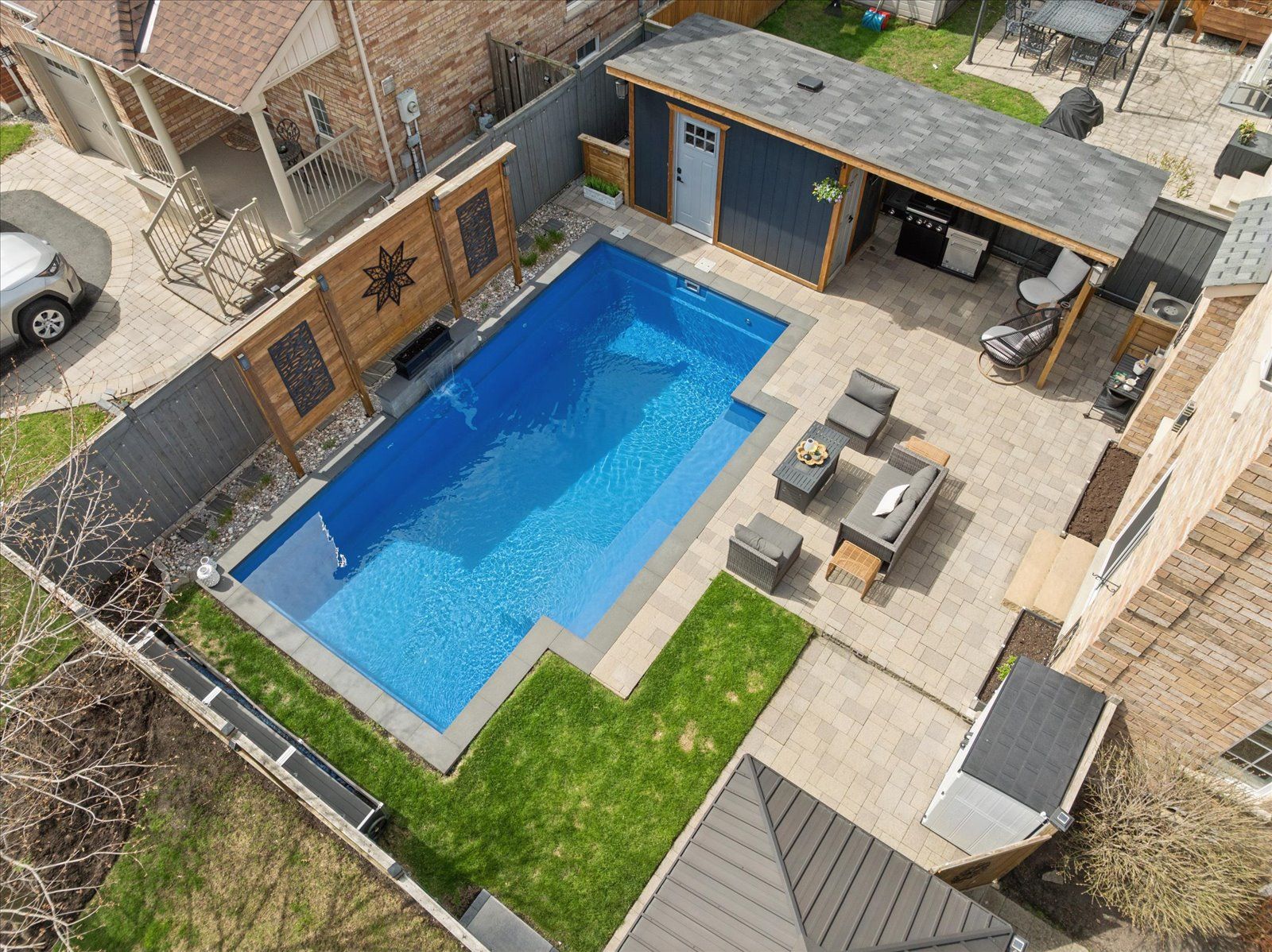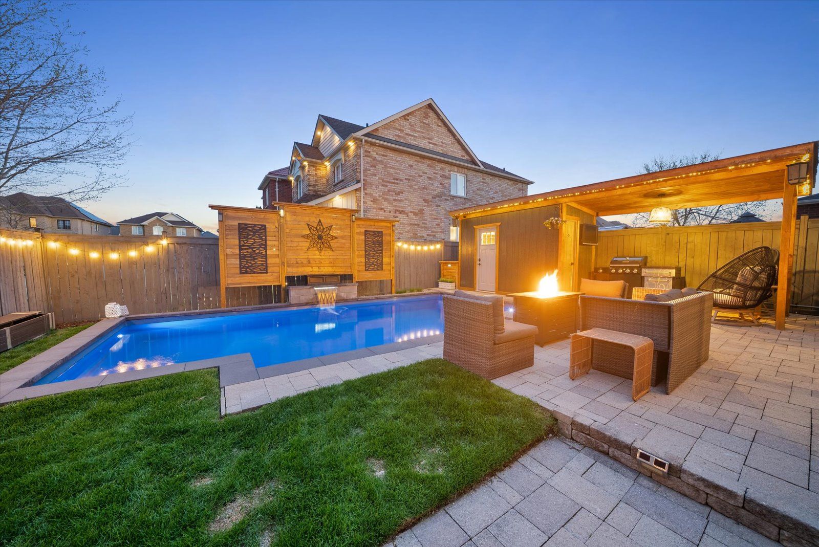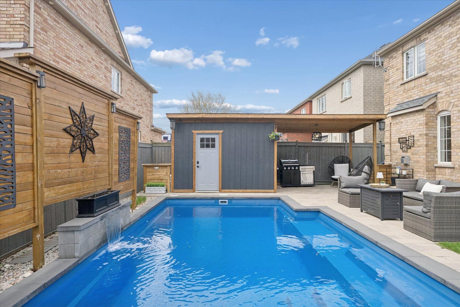 For the discerning buyer who wants luxury without the wait and perfection without the renovation, this masterfully curated corner residence in desirable williamsburg is where your search finally, and beautifully, ends. From the perfectly manicured yard with inground saltwater pool to the exceptionally upgraded interior, 1 swansea street is the complete luxury package. Flooded with natural light, this 3-bedroom (redesigned from the builder's original 4 bedroom plan) , 4-bathroom showpiece offers 1,965 sq ft of impeccable living plus a finished basement. With over $200k in upgrades, every inch has been truly transformed. The main floor impresses from the moment you walk in. A breathtaking family room with designer gas fireplace flows seamlessly into the chef's kitchen, featuring quartz countertops, white cabinetry, premium appliances, and a dedicated coffee station. A separate formal dining room rounds out the entertainer's layout. Outside, the inground fibreglass saltwater pool anchors a meticulously landscaped oasis with a custom pool cabana, 2pc washroom, covered bbq lounge, raised gardens, and manicured lawn. Signature gemstone lighting and a natural gas bbq line make this the ultimate space for entertaining. Gorgeous remodelled oak staircase to the bright upper level with 3 spacious bedrooms, a dedicated laundry room, and a dream office framed by a dramatic picture window. The primary suite is in a class of its own, with a spa-calibre ensuite featuring heated floors, his and hers shower heads, and luxurious finishes that feel like a five-star retreat. The finished lower level is a seamless extension of the luxury above, with a generous rec room, built-in beverage and snack centre, and a 2pc washroom, perfect for the whole family. Steps from highly respected schools, the beloved rocketship park, and minutes to the 407, 412 and 401. 1 swansea street is not just a home. It is a lifestyle, a statement, and an address you will be proud to call your own.