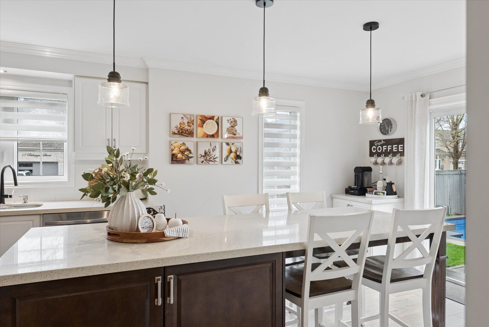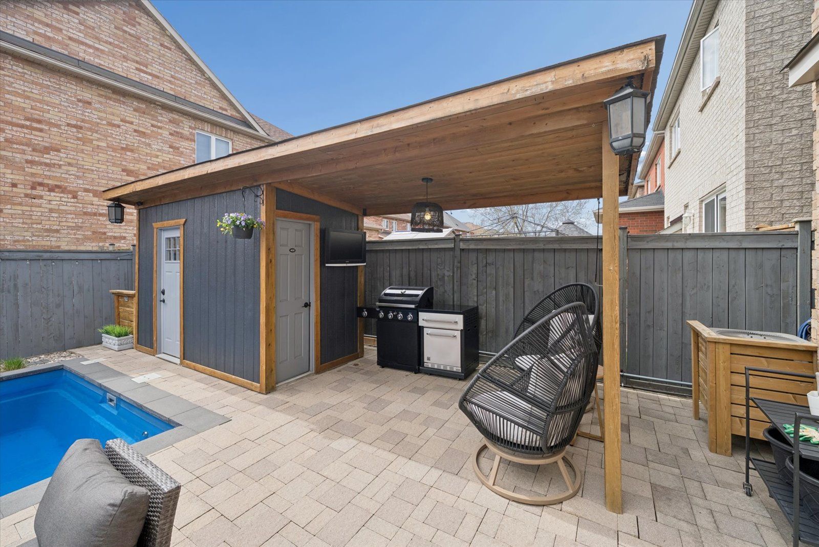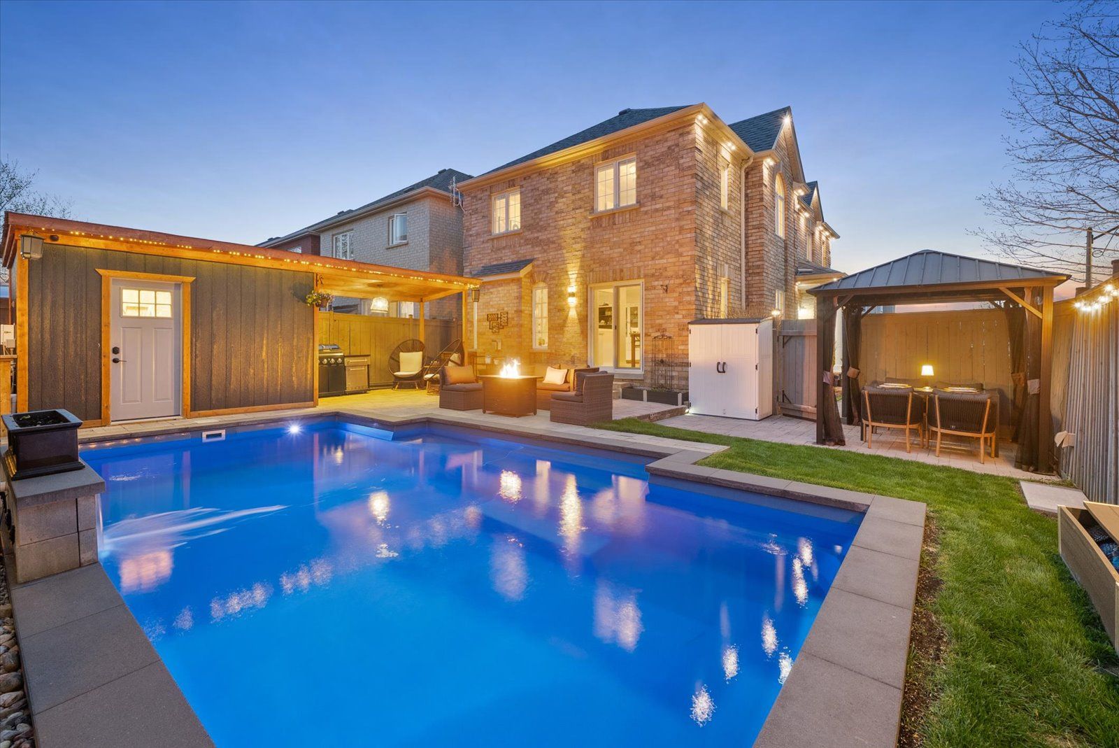 For the discerning buyer who wants luxury without the wait and perfection without the renovation, this masterfully curated corner residence in desirable williamsburg is where your search finally, and beautifully, ends. From the perfectly manicured yard with inground saltwater pool to the exceptionally upgraded interior, 1 swansea street is the complete luxury package. Flooded with natural light, this 3-bedroom (redesigned from the builder's original 4 bedroom plan) , 4-bathroom showpiece offers 1,965 sq ft of impeccable living plus a finished basement. With over $200k in upgrades, every inch has been truly transformed. The main floor impresses from the moment you walk in. A breathtaking family room with designer gas fireplace flows seamlessly into the chef's kitchen, featuring quartz countertops, white cabinetry, premium appliances, and a dedicated coffee station. A separate formal dining room rounds out the entertainer's layout. Outside, the inground fibreglass saltwater pool anchors a meticulously landscaped oasis with a custom pool cabana, 2pc washroom, covered bbq lounge, raised gardens, and manicured lawn. Signature gemstone lighting and a natural gas bbq line make this the ultimate space for entertaining. Gorgeous remodelled oak staircase to the bright upper level with 3 spacious bedrooms, a dedicated laundry room, and a dream office framed by a dramatic picture window. The primary suite is in a class of its own, with a spa-calibre ensuite featuring heated floors, his and hers shower heads, and luxurious finishes that feel like a five-star retreat. The finished lower level is a seamless extension of the luxury above, with a generous rec room, built-in beverage and snack centre, and a 2pc washroom, perfect for the whole family. Steps from highly respected schools, the beloved rocketship park, and minutes to the 407, 412 and 401. 1 swansea street is not just a home. It is a lifestyle, a statement, and an address you will be proud to call your own.