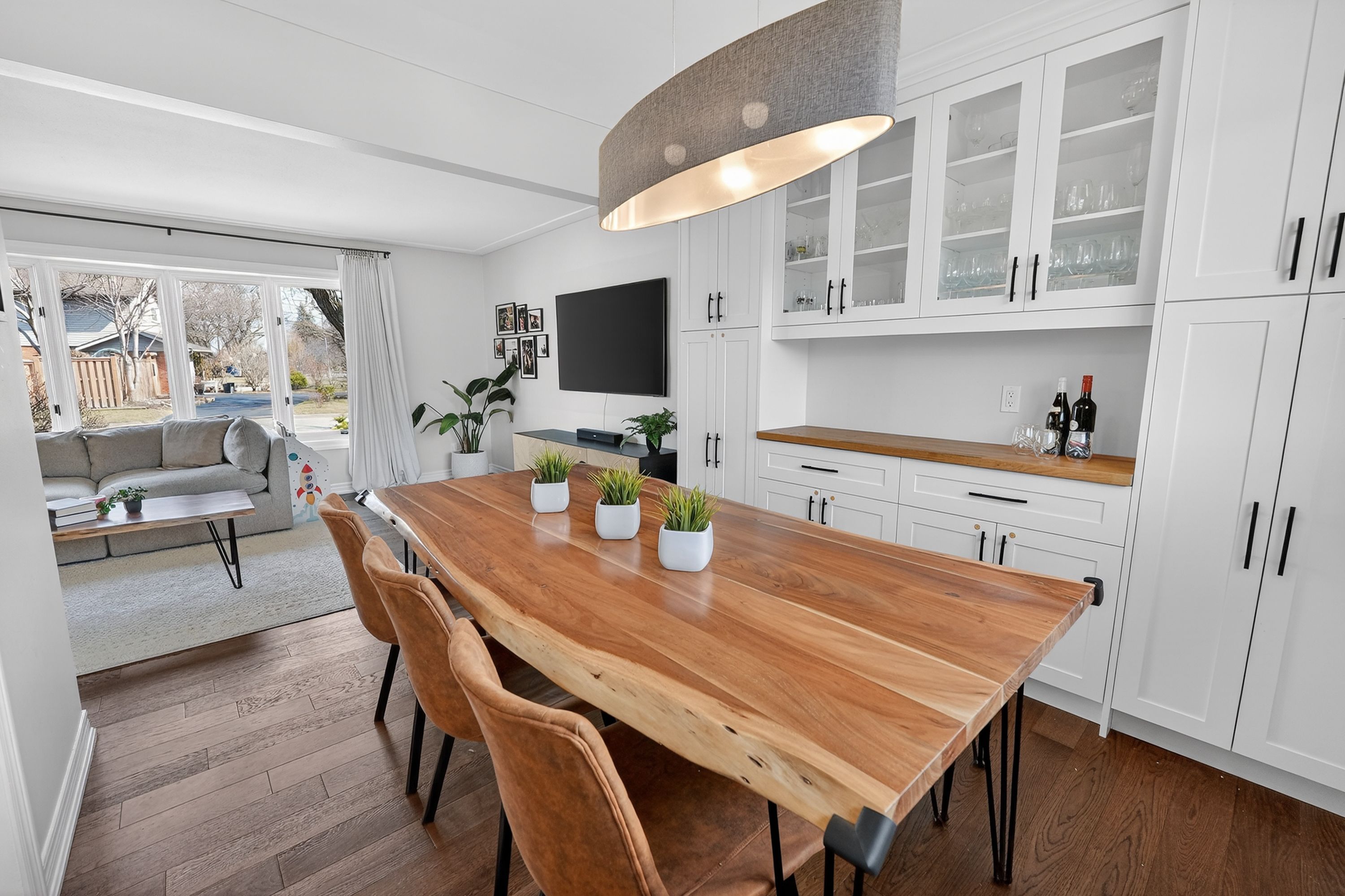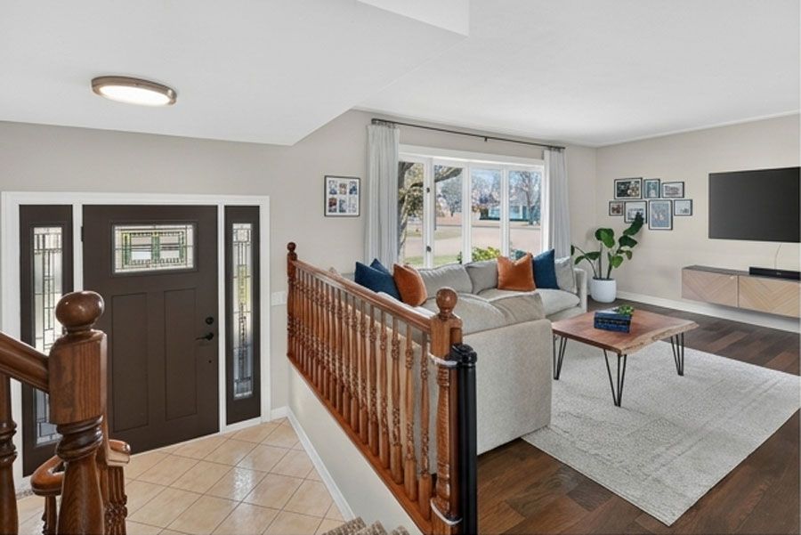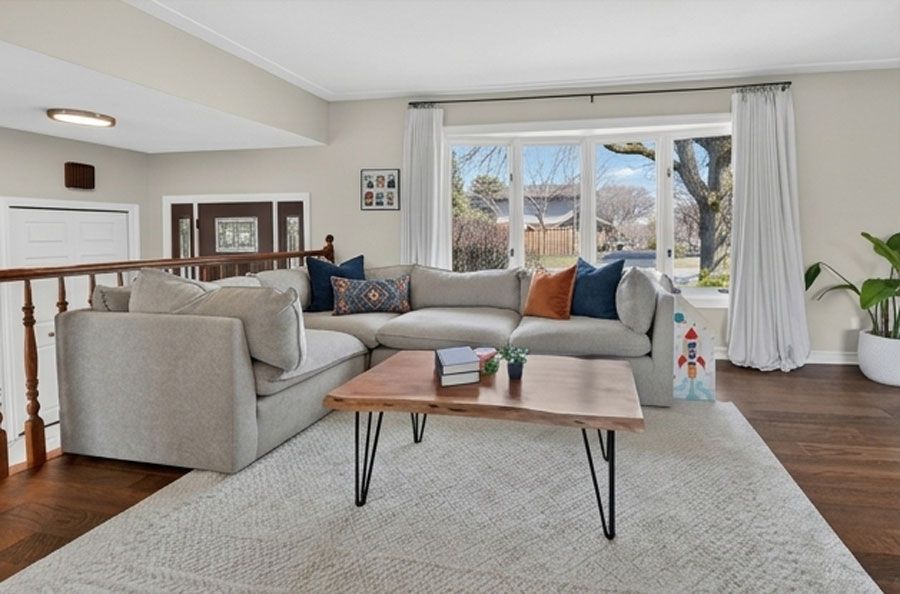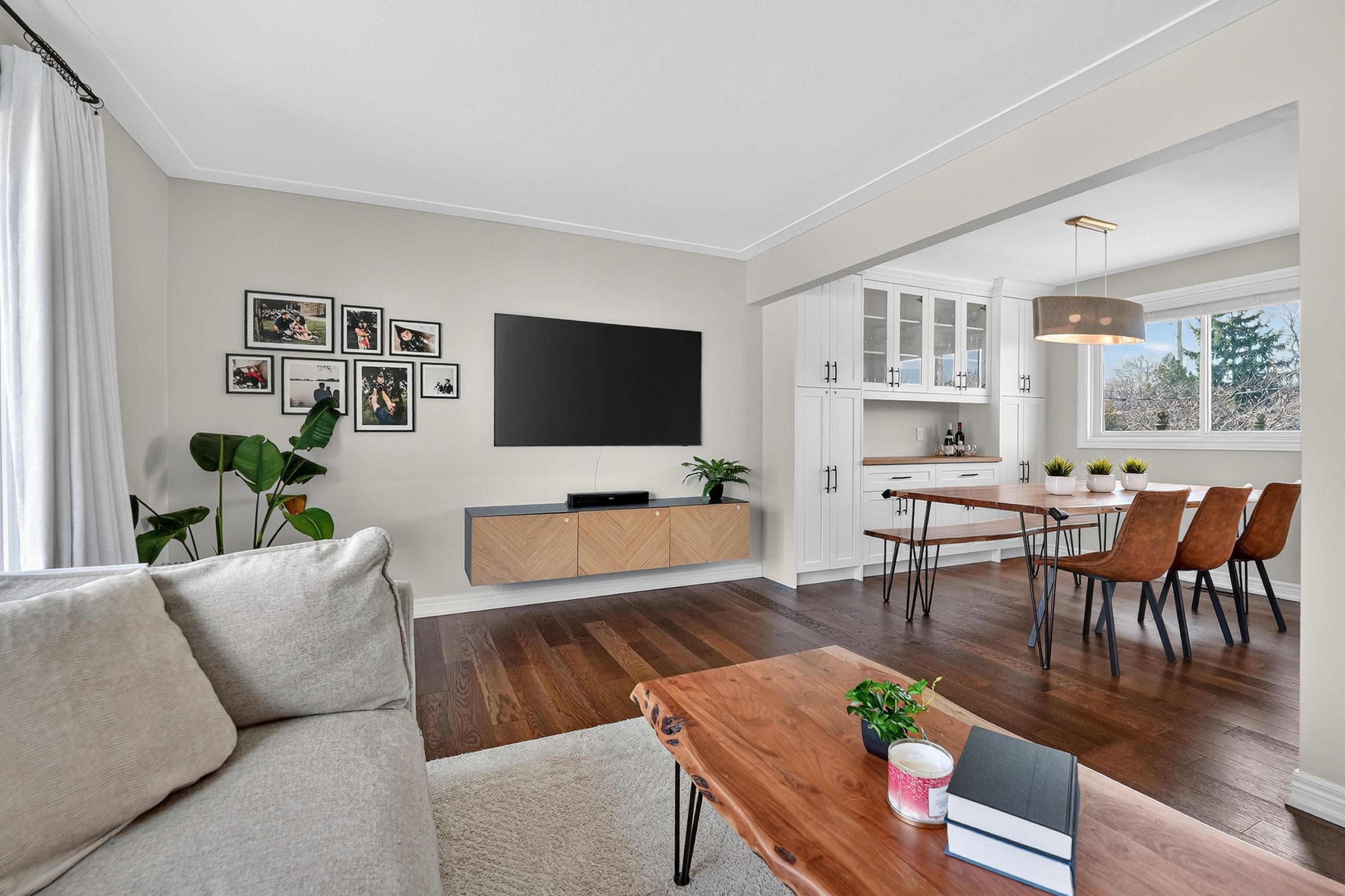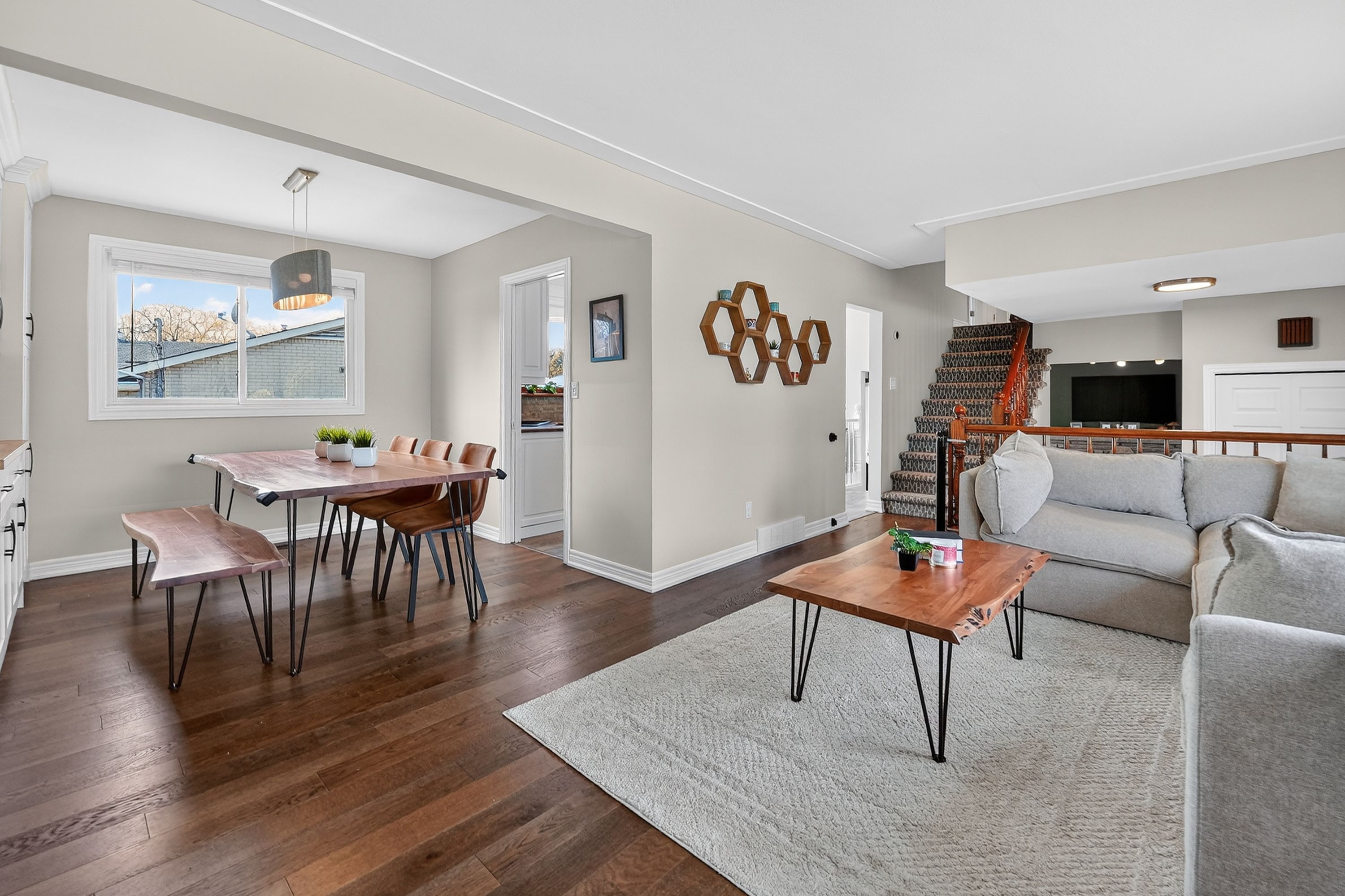 • Spacious main level connects living, dining, and kitchen areas.