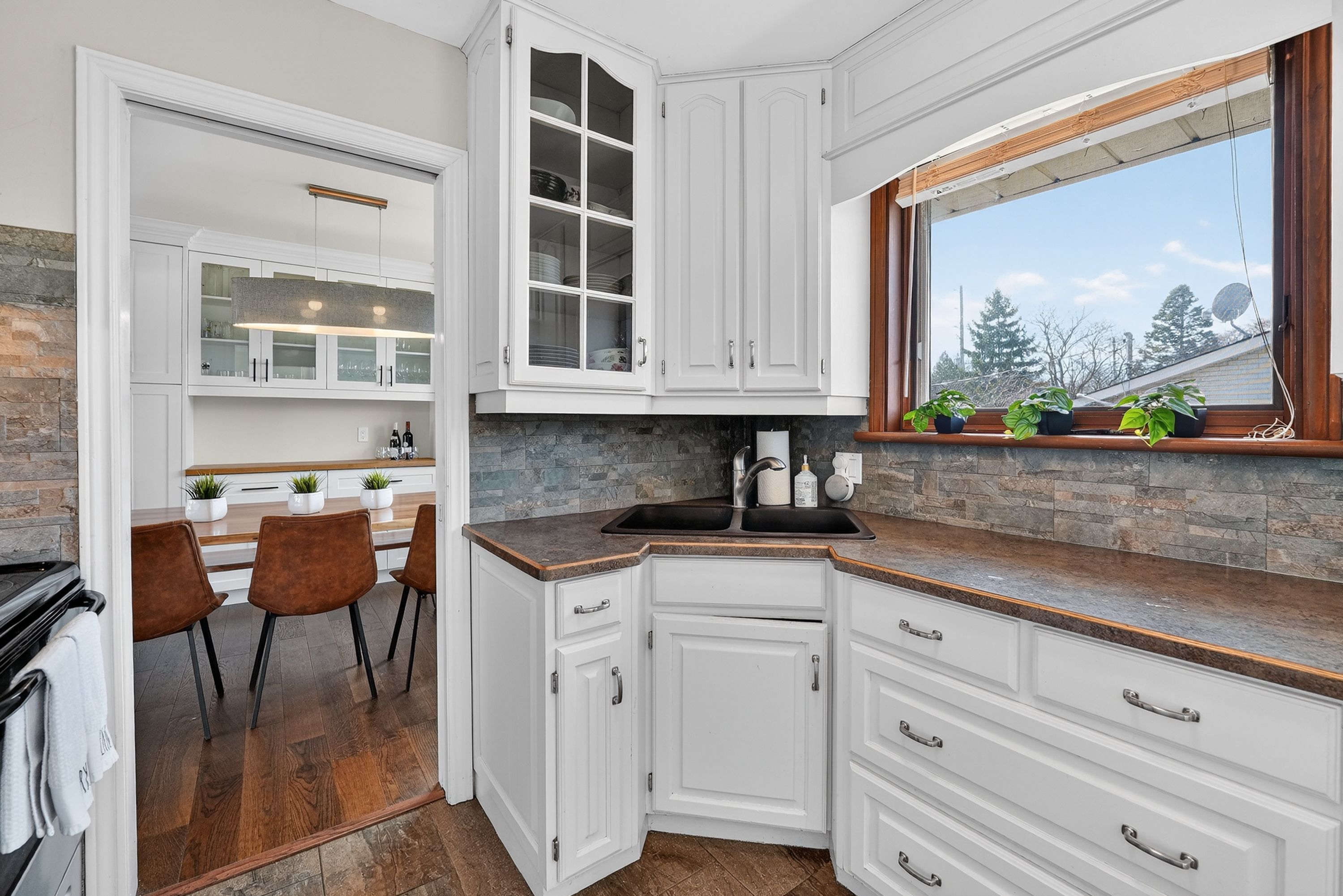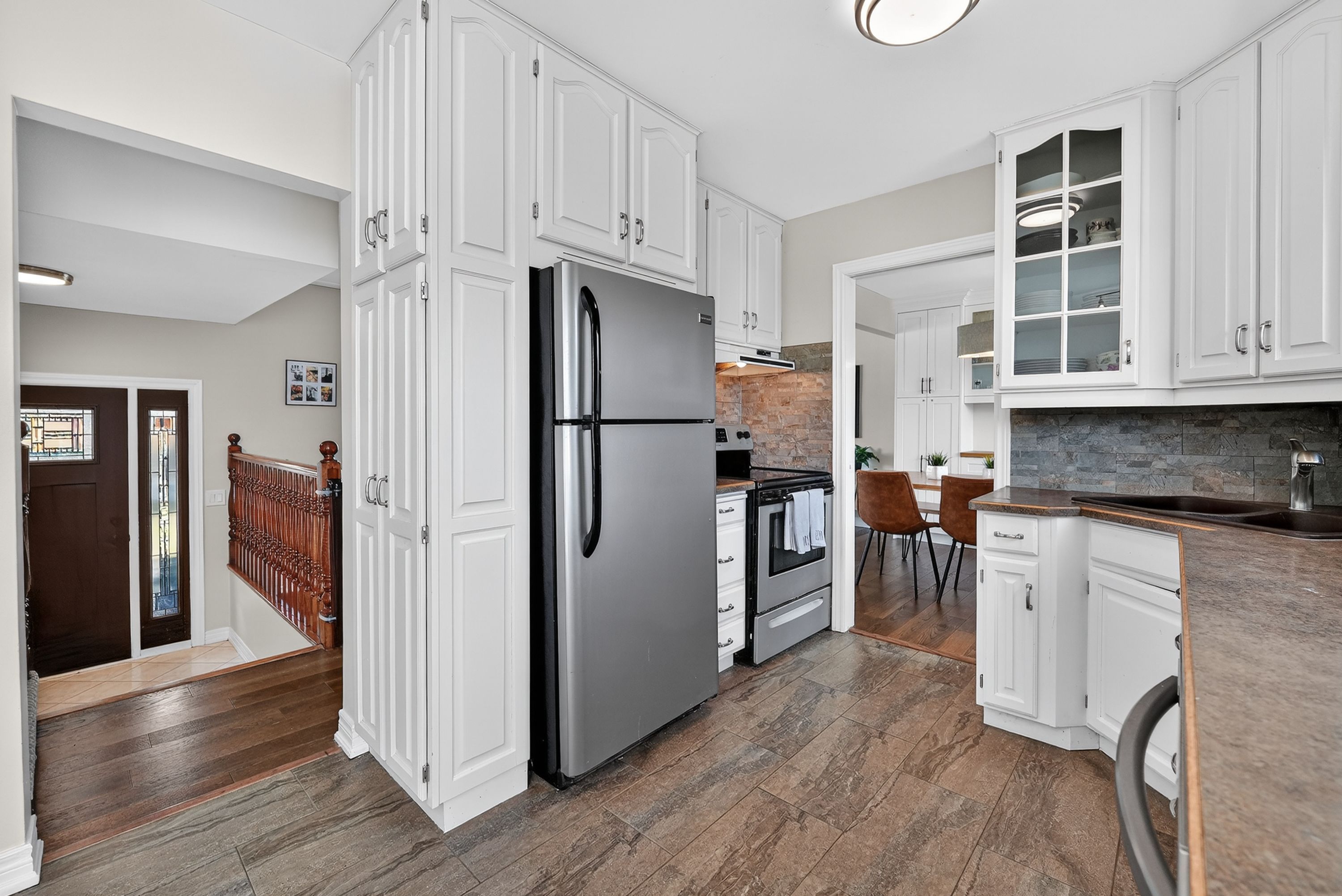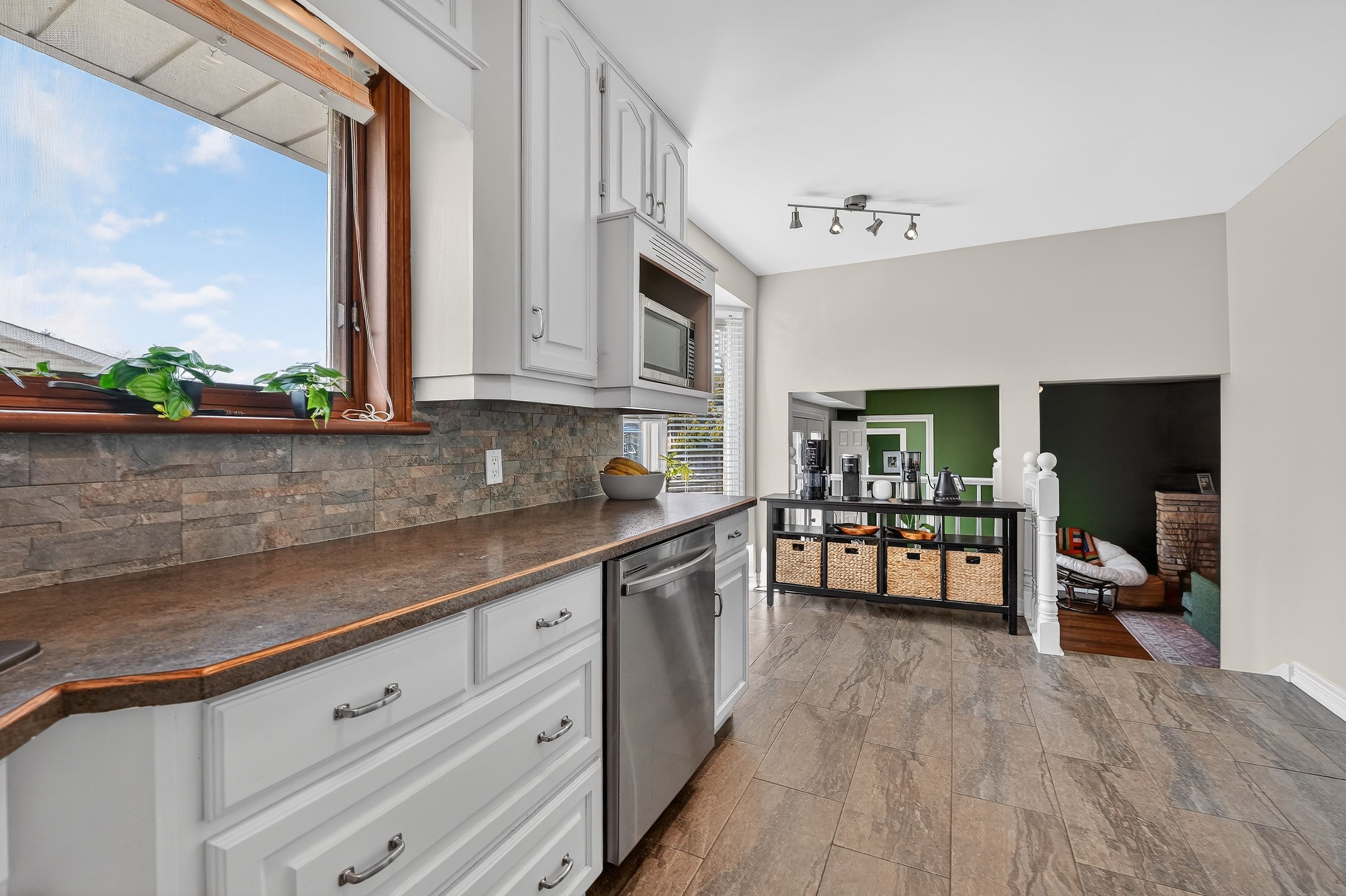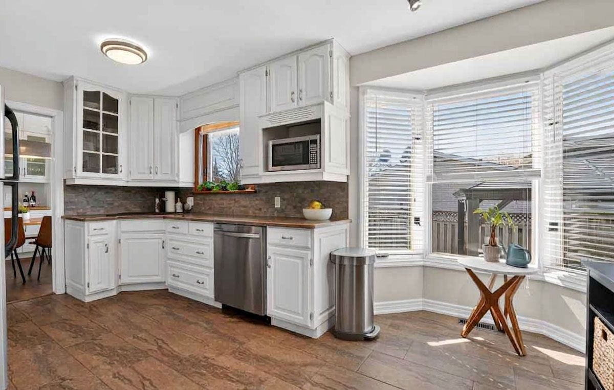• Bright kitchen with eat-in space and family room access.