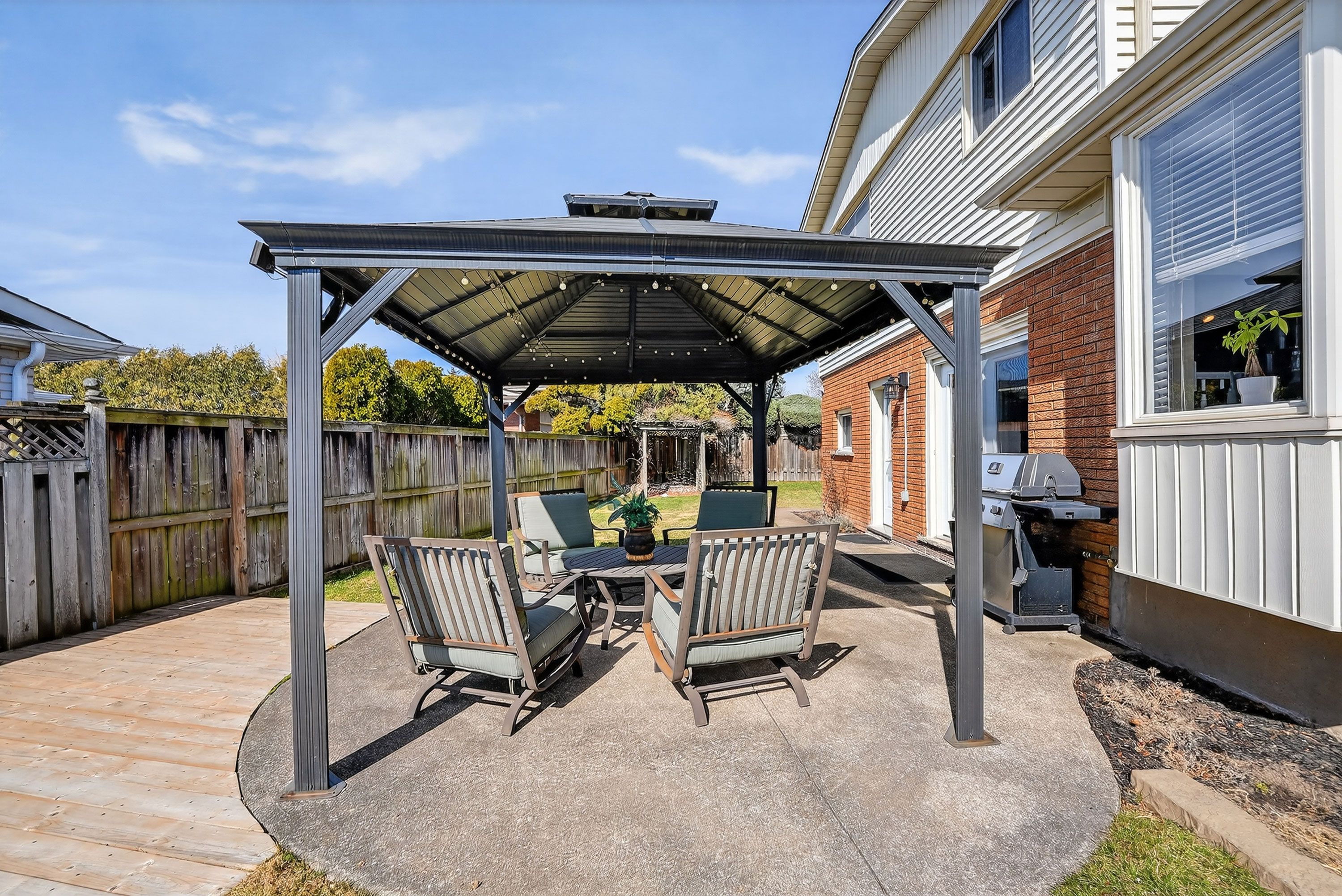 • Large, fenced backyard ideal for gardening and gatherings.