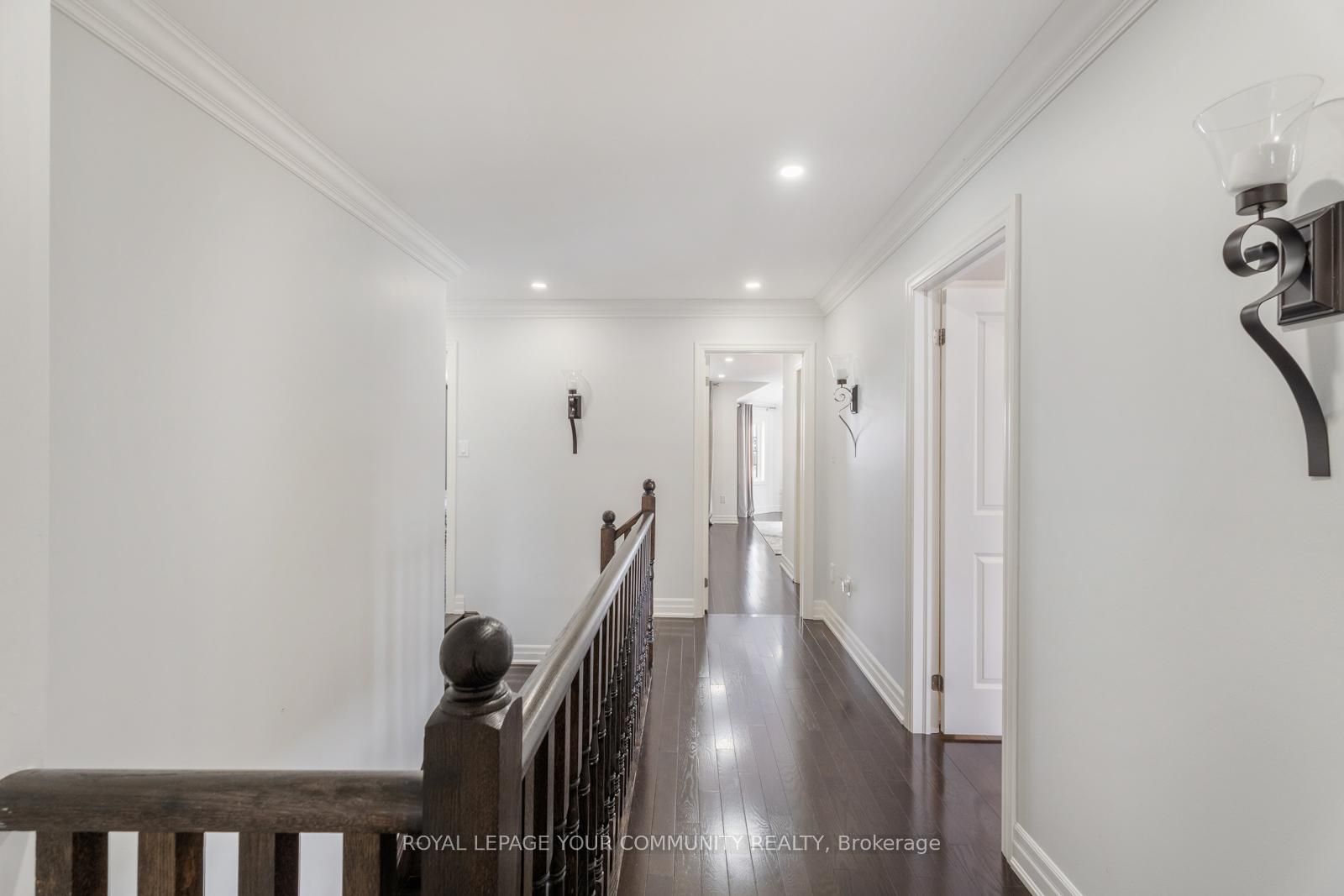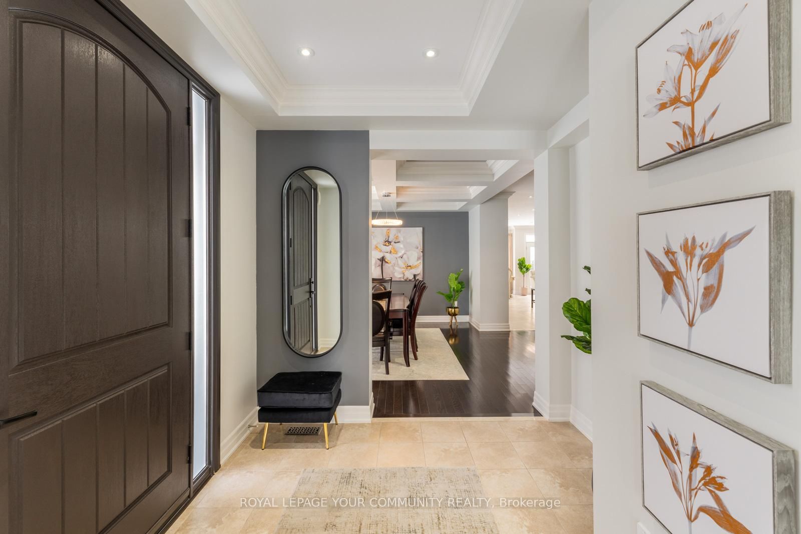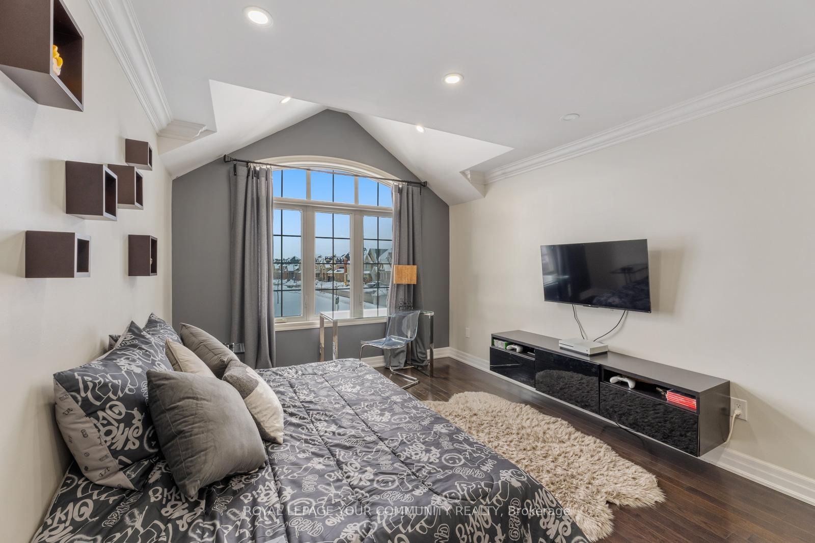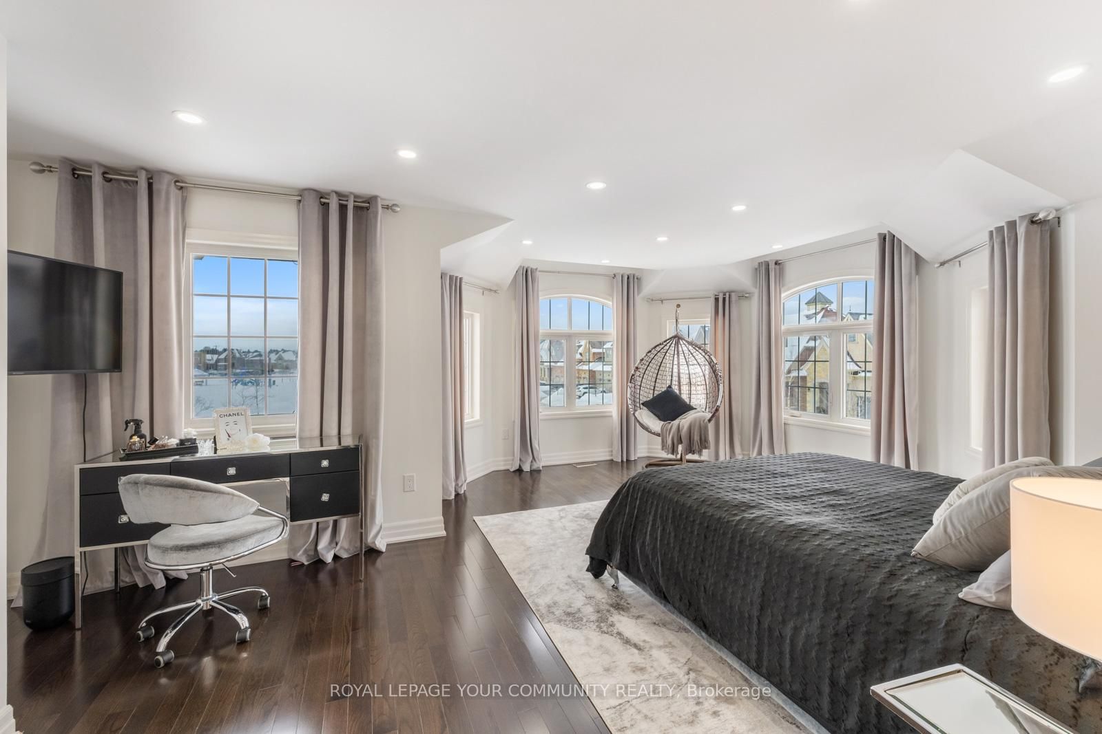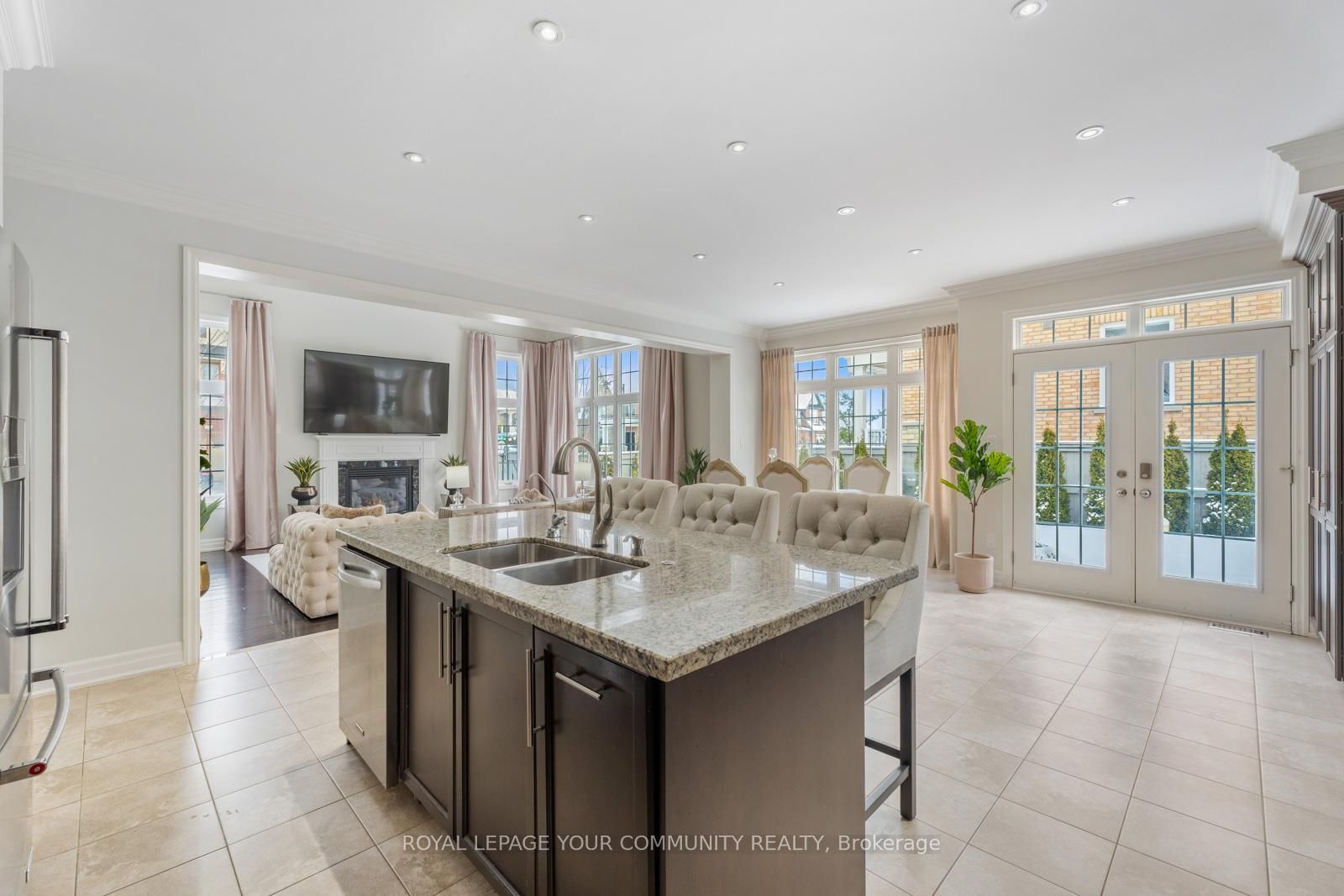 Nestled in the heart of king city, this home exemplifies quality living, offering both convenience and safety in a vibrant community. Positioned on a spacious corner lot and overlooking a serene park, this elegant residence spans over 3,700 square feet above grade,designed to accommodate the needs of modern families with expansive living spaces. Upon entering, you'll be welcomed by the grandeur of high ceilings and an open layout, highlighting exquisite finishes such as hardwood floors, large custom windows with coverings, crown moldings, and contemporary lighting throughout. The main floor features a generous living room with park views, providing a sense of privacy, and a formal dining room enhanced with coffered ceilings and elegant moldings. A private office with french doors and intricate ceiling details offers a refined work environment. The two-story family room, complete with a cozy fireplace, flows seamlessly into the kitchen and breakfast area. The chefs kitchen is a standout, boasting abundant cabinetry, granite countertops, top-of-the-line stainless steel appliances, a water filtration system, and a garburator. The breakfast area includes additional cabinetry with a built-in desk, and opens onto a beautifully landscaped french patio with a gas hook-up for a bbq and a lush garden. The laundry room, equipped with high-end appliances and built-in closet storage, offers convenient access to the garage. Upstairs, the second floor features four spacious bedrooms. The primary suite is a private retreat,featuring high ceilings, a juliet balcony, a custom walk-in closet, and a luxurious five-piece ensuite. Two additional bedrooms are fitted with double closets and large windows, sharing a five-piece semi-ensuite. The final bedroom offers a private four-piece ensuite, walk-in closet, and cathedral ceiling. The basement offers high ceilings, a cold room, and the potential for a walk-up exit, should your familys needs require.