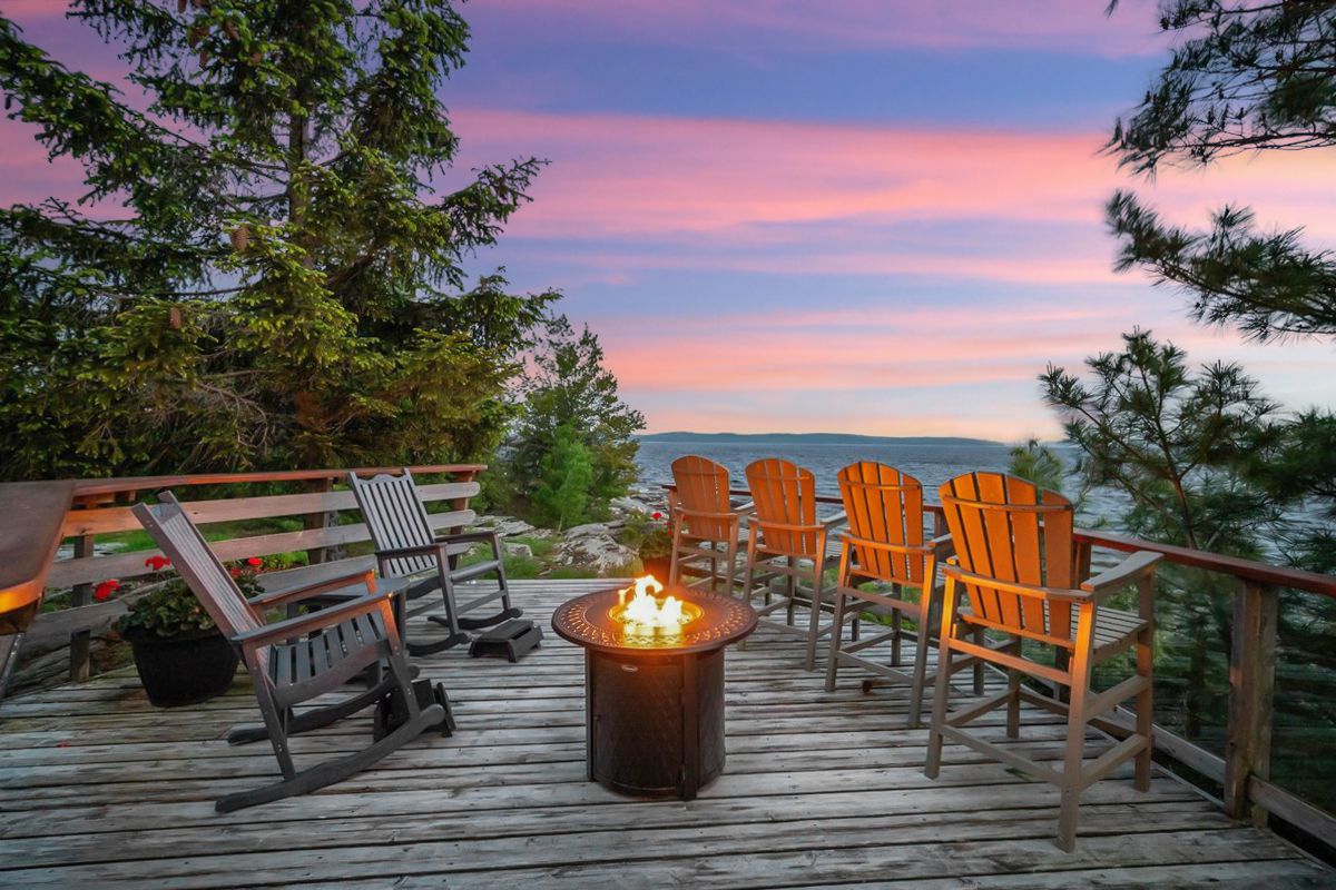 Welcome to three tree island - an iconic & idyllic island retreat, three tree island offers the rare opportunity to own a piece of georgian bays storied landscape. Featured in cottage life magazine, this majestic property combines timeless natural beauty with refined craftsmanship & total seclusion, an unmatched private oasis in the heart of ontario's cottage country. Built by renowned local craftsman ron bowman, the islands main residence blends rustic charm with modern comfort, offering 3 bedrooms, 2 bathrooms & panoramic water views from every room. The primary suite is a true sanctuary, where oversized windows create the illusion of floating on the bay itself. A separate bunkie with an additional bathroom provides extra accommodation for guests, along with an outdoor shower, sauna & hot tub that complete the spa-like experience. Strategically located just 3 minutes from municipal docks & 5 minutes from parry sound harbour, access to town is effortless yet the island feels worlds away. Enjoy an afternoon at the nearby parry sound golf club, then return to wave at the island queen, passing cruise ships & coast guard vessels gliding by in the surrounding waters. Soak in dramatic western-facing views down the length of georgian bay and bask in unforgettable sunsets from the expansive decks, perfect for entertaining friends and family. With no neighbours in sight, extreme privacy & a granite shoreline hugging the island's perimeter, this is the perfect place to enjoy the sun, stars & northern lights. The property is offered fully furnished & features a commercial-grade steel docking system on the leeward side of the island, capable of accommodating larger vessels. Stay connected with full electricity & reliable internet, making it ideal for remote work or year-round escape. Whether you're swimming off the rocks, unwinding in the sauna or gazing at the endless water views, three tree island is an exceptional, once-in-a-lifetime offering. Sunset lovers take note.