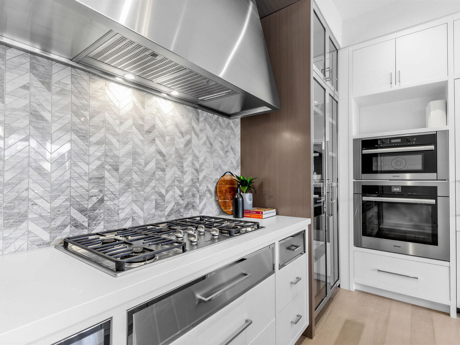 • Chef's dream kitchen featuring high-end appliances and elegant finishes.