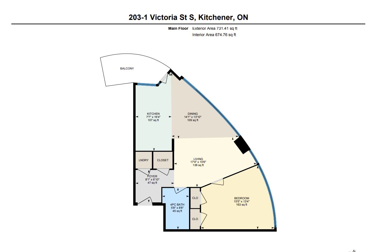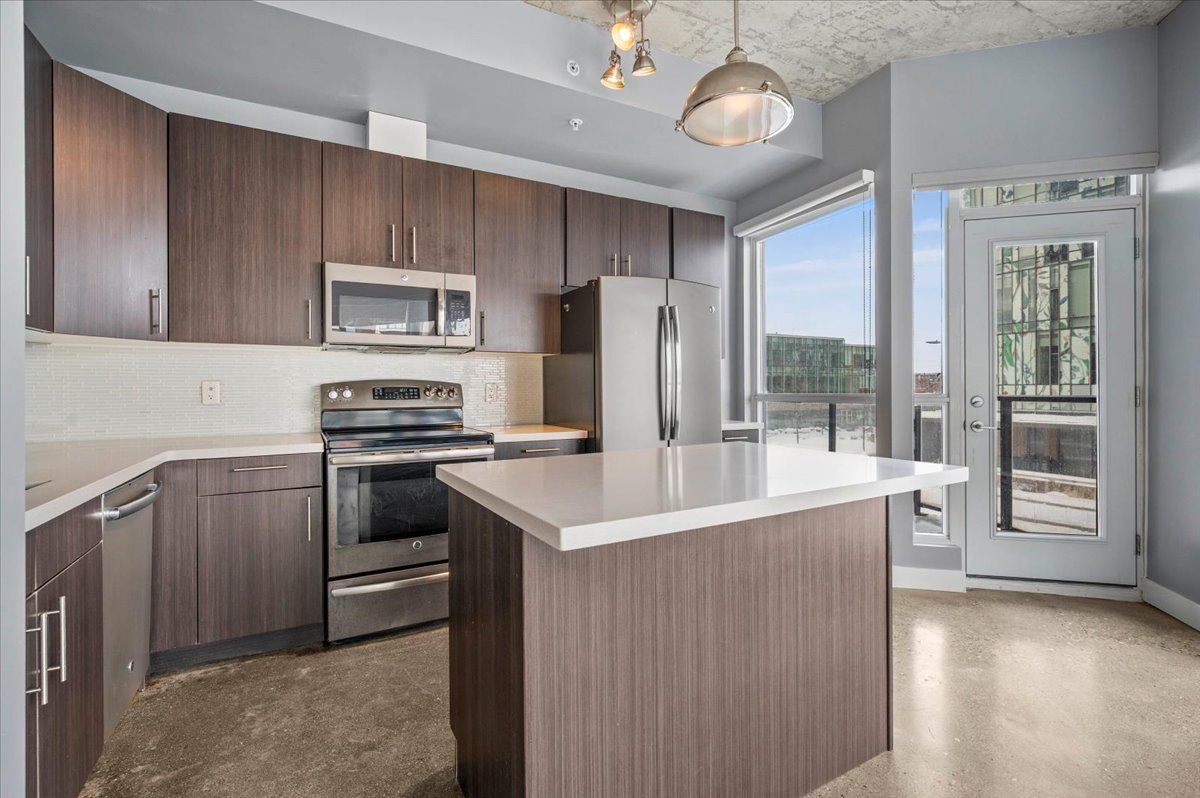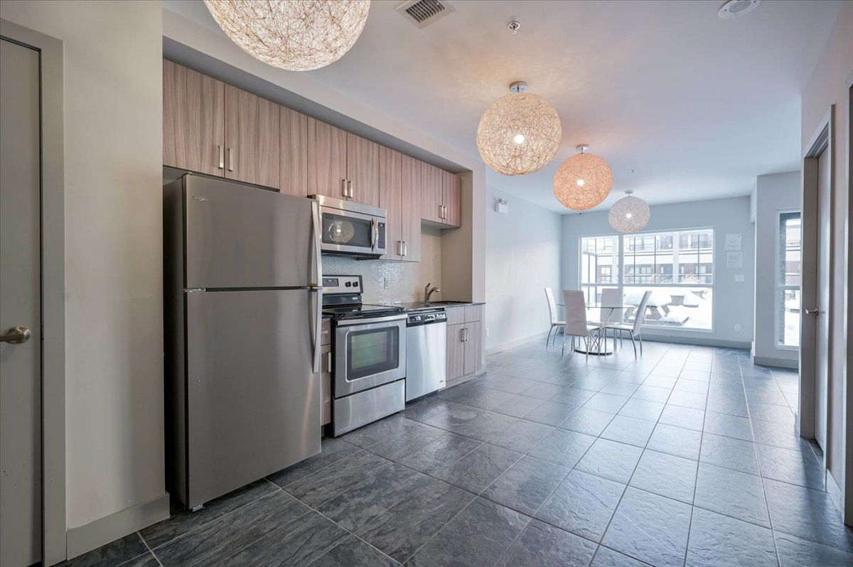 A well designed one bedroom residence in one of downtown kitchener's most distinctive buildings, better known as 1 vic. Unit 203 offers a comfortable, thoughtfully finished space with character that stands apart from typical condominium living. The interior offers 10 foot ceilings, polished concrete floors, an upgraded kitchen with clean finishes, and underground parking plus a storage locker for added convenience. A subtle curved layout sets the suite apart, giving it a distinct shape and a more refined interior feel. Large windows bring in plenty of natural light and look out over an open urban view, making the space feel brighter and more open. The balcony extends that experience outdoors with gorgeous views and a calm place to unwind. Located in the heart of the innovation district, this property is across the street from university of waterloo pharmacy school, minutes from the tech hub, uptown waterloo, transit, and everyday amenities, making it an excellent option for a professional or comfortable home in a central location.