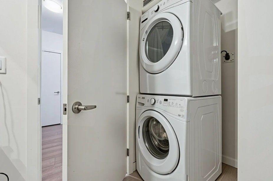 Welcome to suite 706 at 1 victoria - a stylish executive condo in the heart of kitchener's innovation district. This bright and modern suite offers 659 sq. Ft. Of smart, efficient living space designed for both comfort and style. The open-concept kitchen features crisp white cabinetry, granite countertops, stainless steel appliances, a glass mosaic backsplash, and a spacious centre island perfect for meal prep, casual dining, or gathering with friends. The generous one-bedroom layout includes an oversized bedroom with space for a cozy seating area and a walk-in closet, while expansive windows in both the living room and bedroom fill the space with natural light. Engineered flooring throughout and in-suite stackable laundry add everyday convenience. Step out onto your private balcony overlooking the beautifully landscaped terrace, complete with raised flower beds, gardens, and relaxing seating areas - your own little urban escape. This unit also includes underground parking and a storage locker. Residents enjoy access to fantastic amenities, including a bright fitness centre, media room, and party room. Perfectly located in the core of the innovation district, you're just steps to the lrt, go station, victoria park, the university of waterloo school of pharmacy, google, mcmaster's school of medicine, communitech, restaurants, cafés, and more. Urban living at its best - stylish, connected, and incredibly convenient. Photos are virtually staged.