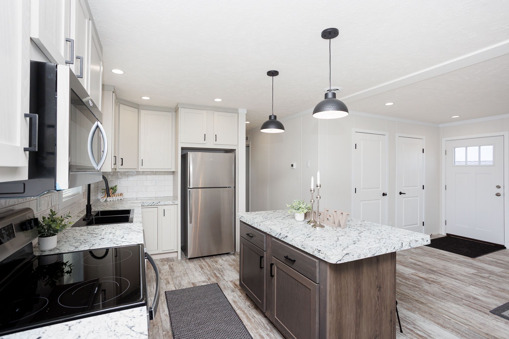 • Modern kitchen with stainless steel appliances and a convenient island.