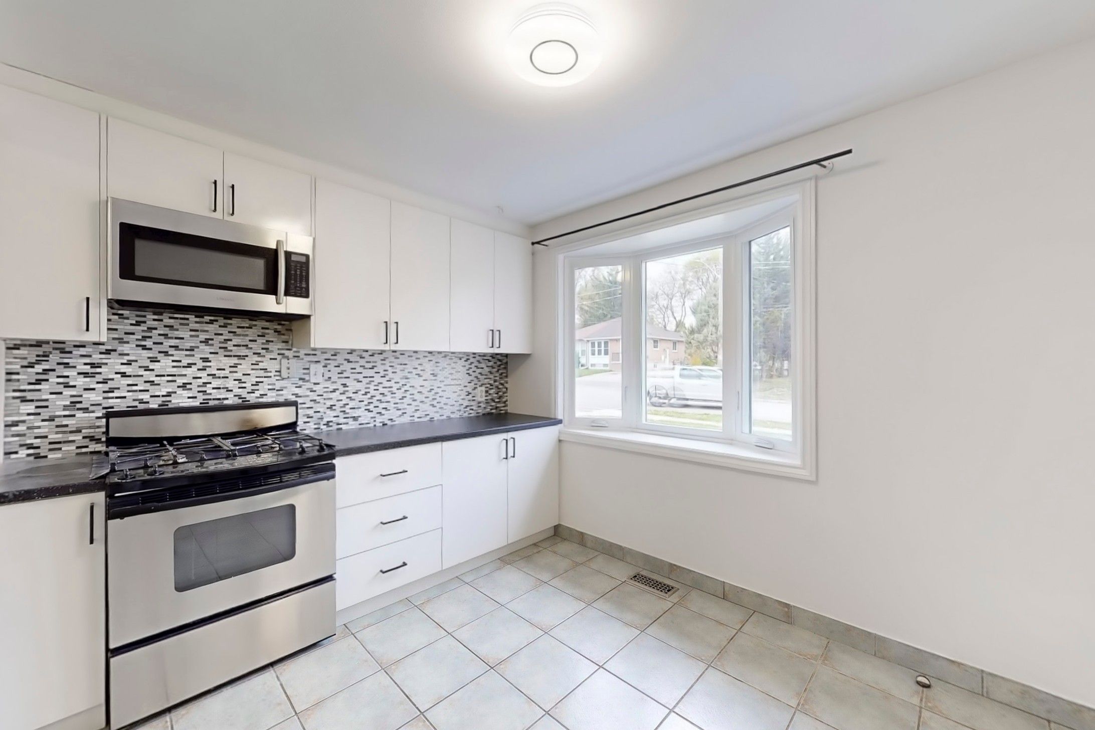 • Renovated kitchen featuring stainless appliances and ceramic backsplash.