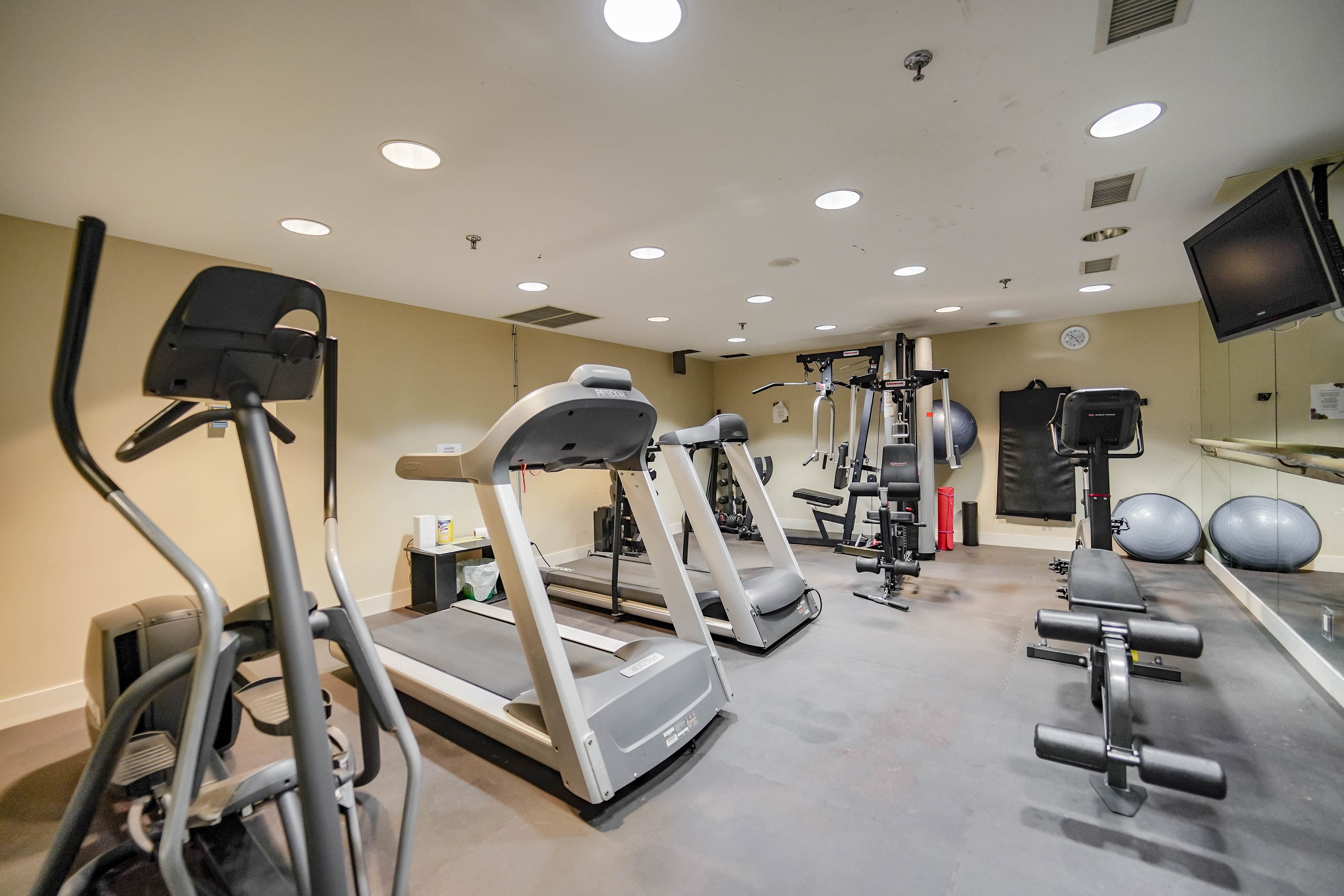 • Building amenities include pool, fitness center, and concierge services.