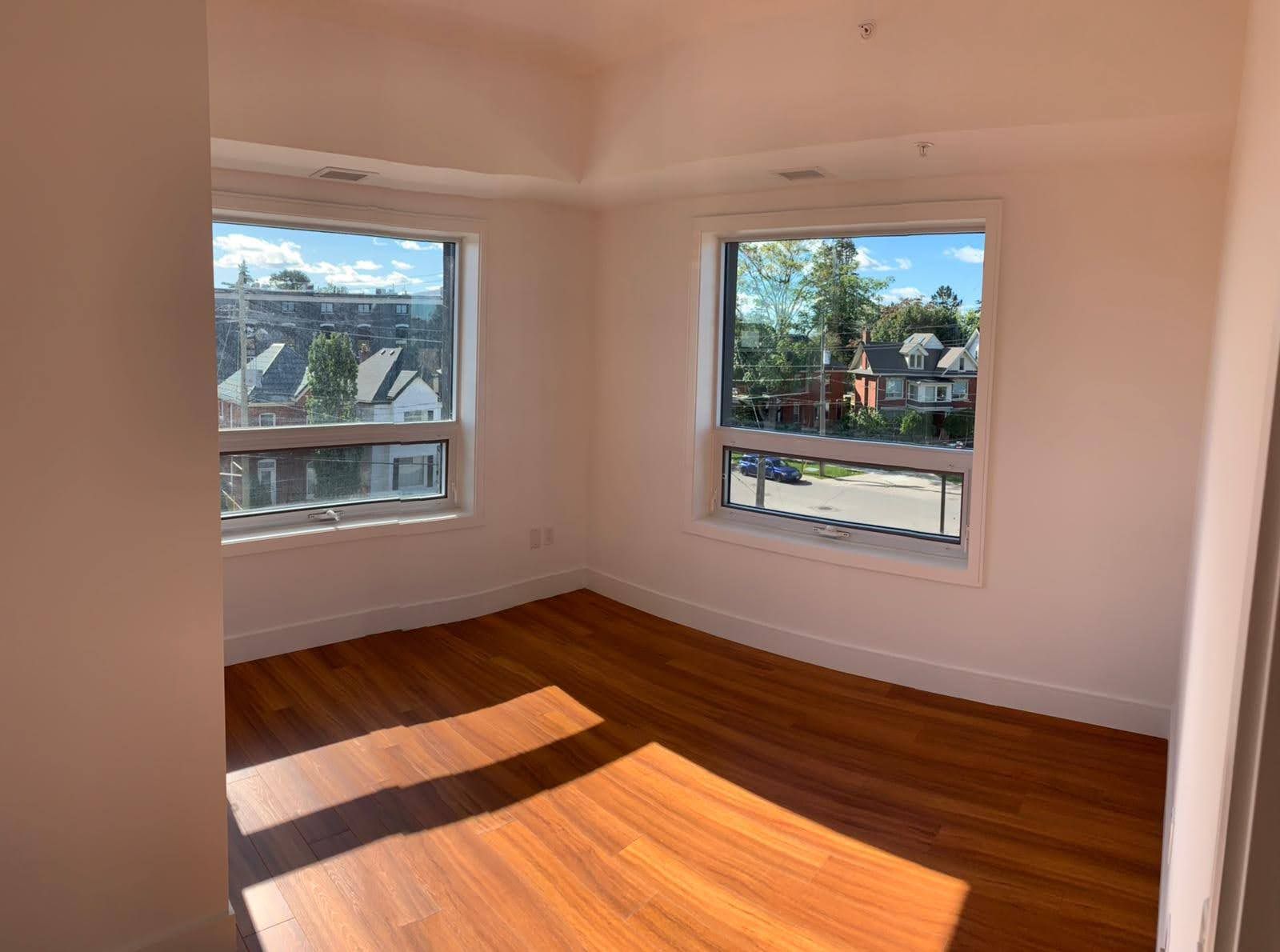 Absolutely beautiful recently built and rare 3bed, 2bath corner unit condo with abundance of natural lighting is sure to impress! All 3 rooms are very spacious and can be easy used as play room or recreational space. Comes with 1 parking, 9' foot ceilings, and many upgrades. Open concept floor plan with laminate throughout. Modern spacious kitchen with brand new stainless steel appliances. This sought-after condo in desired downtown location with steps away from the go train station, laurier university, conestoga college, ymca, harmony and market square, and many restaurants and parks. Don't forget to include amenities like a gym, a lovely rooftop garden, and a party room. Don't delay, book your showing today.