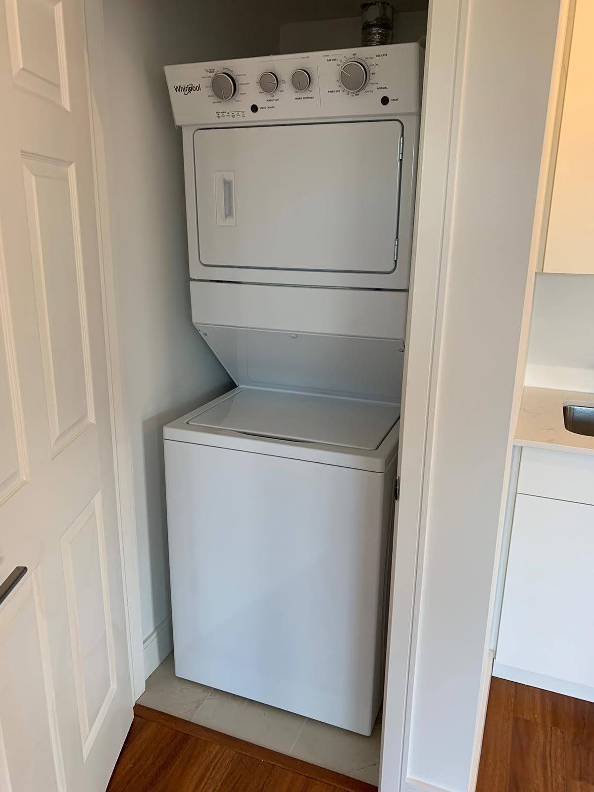 • Modern kitchen equipped with brand new stainless steel appliances.