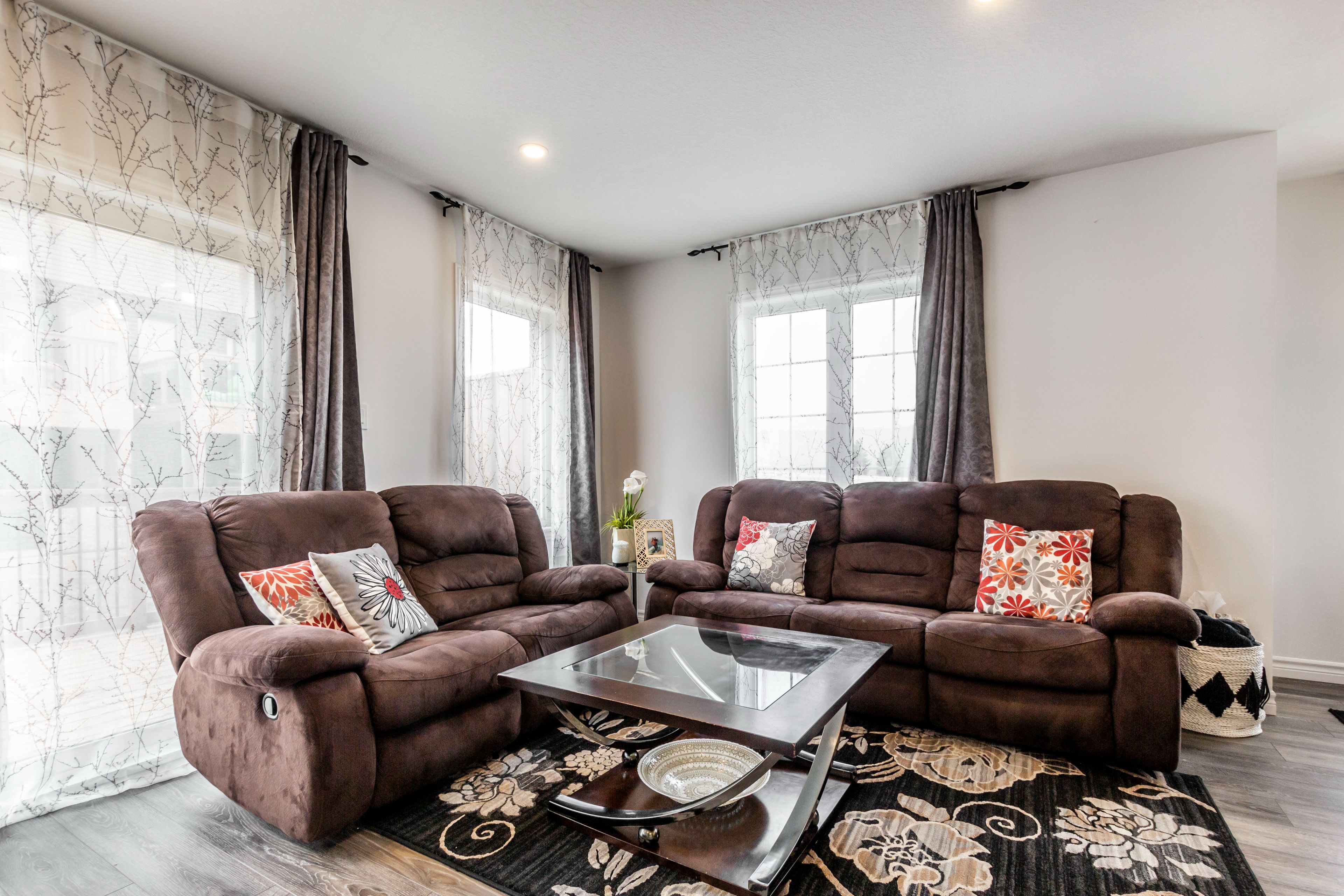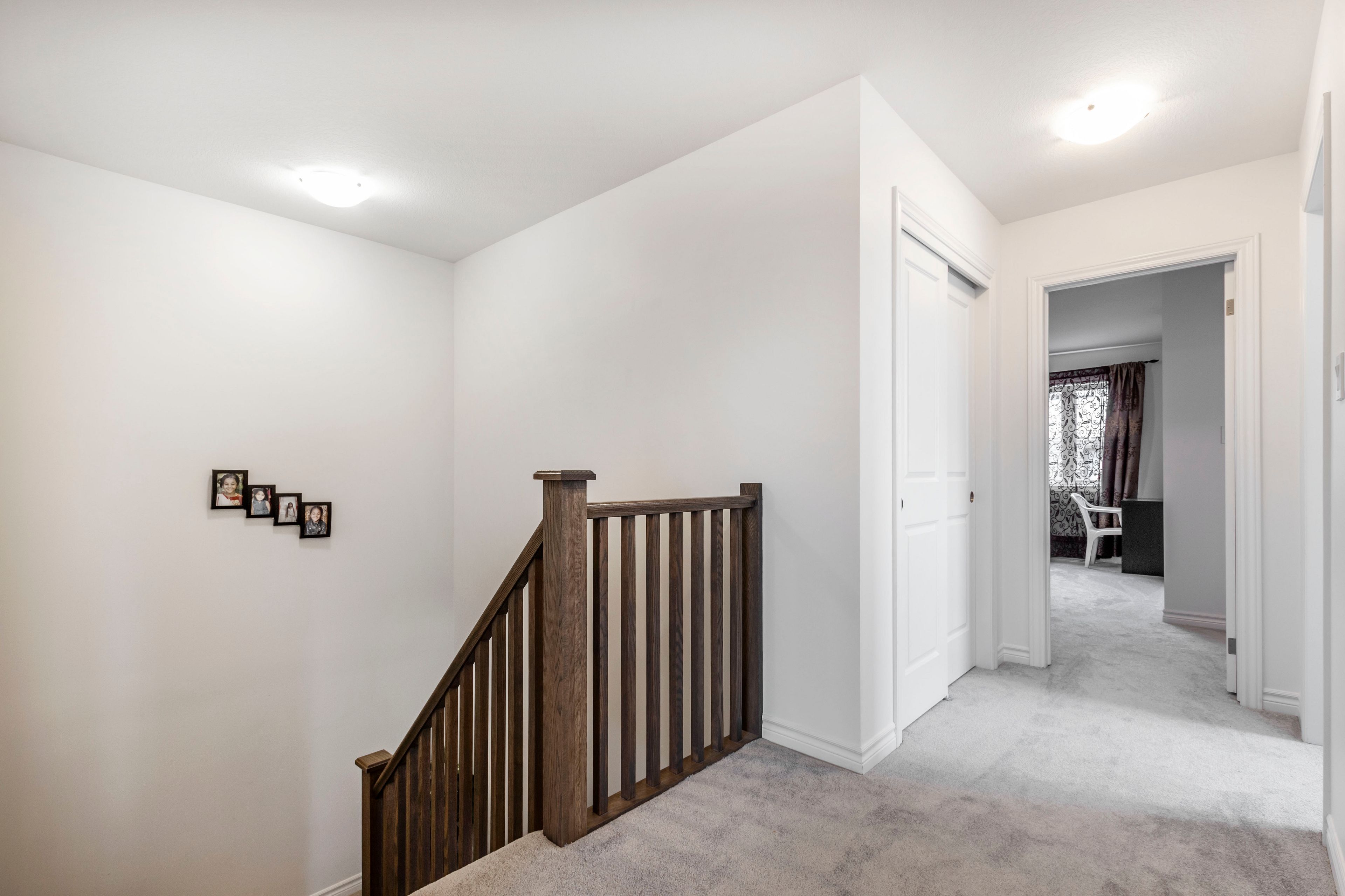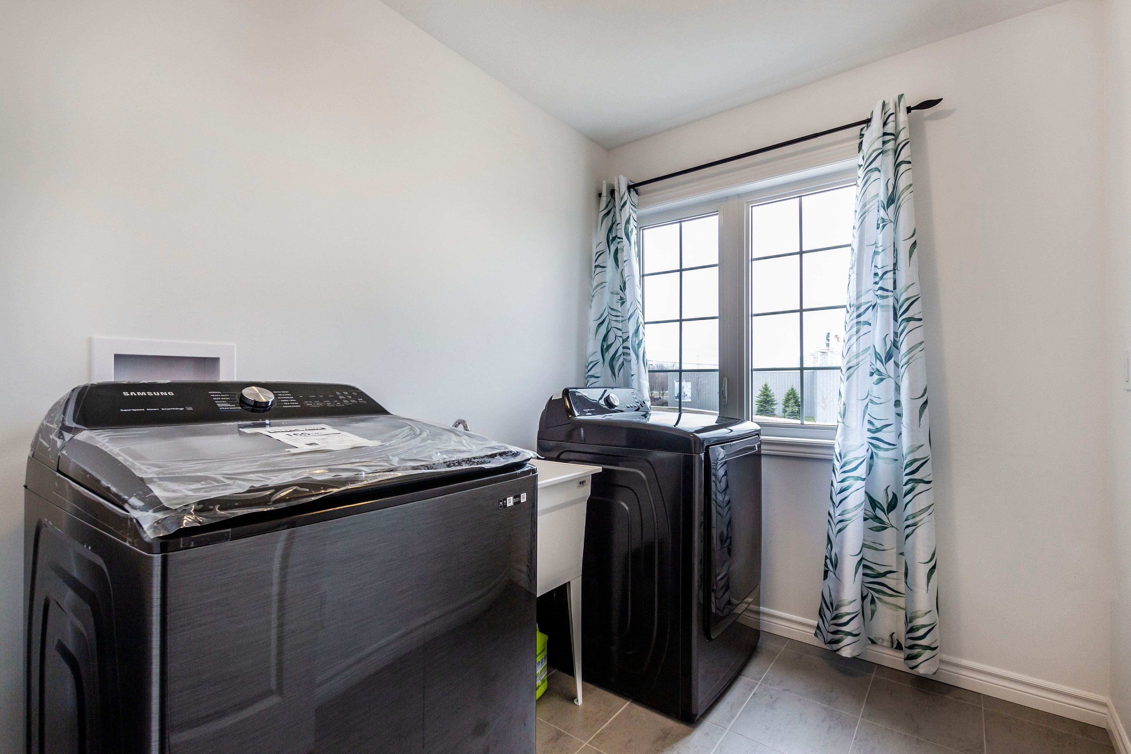 When you're looking for the quiet of country but the closeness of the city, this is the place for you. This townhouse condos end unit is waiting for you to call home! Just off the main entrance we have the office/ den. It's going to be easy to start the work day with this room flooded in morning sunlight. The open concept main living area is carpet free and ready for entertaining family and friends. The black stainless steel, finger print resistant finish appliances are gorgeous! A large quartz countertop island easily fits 4 barstools. But there's also room for a dining room table if you need additional seating. The great room has slider doors that open to a deck. Bbq's are permitted (but sorry smoking is not) landscaping has been promised for this year installation. Upstairs the 3 generous sized bedrooms are all near the laundry room. How incredibly handy is that? The primary bedroom, that easily fits a king size bed, features a large walk in closet. The ensuite has a tiled walk-in shower, double sink vanity plus a soaker tub! A large unfinished basement leaves you lots of room for storage or the home gym. A final "plus" is parking for 2 cars. The garage has room for storage plus inside entry. Let's book your tour today!