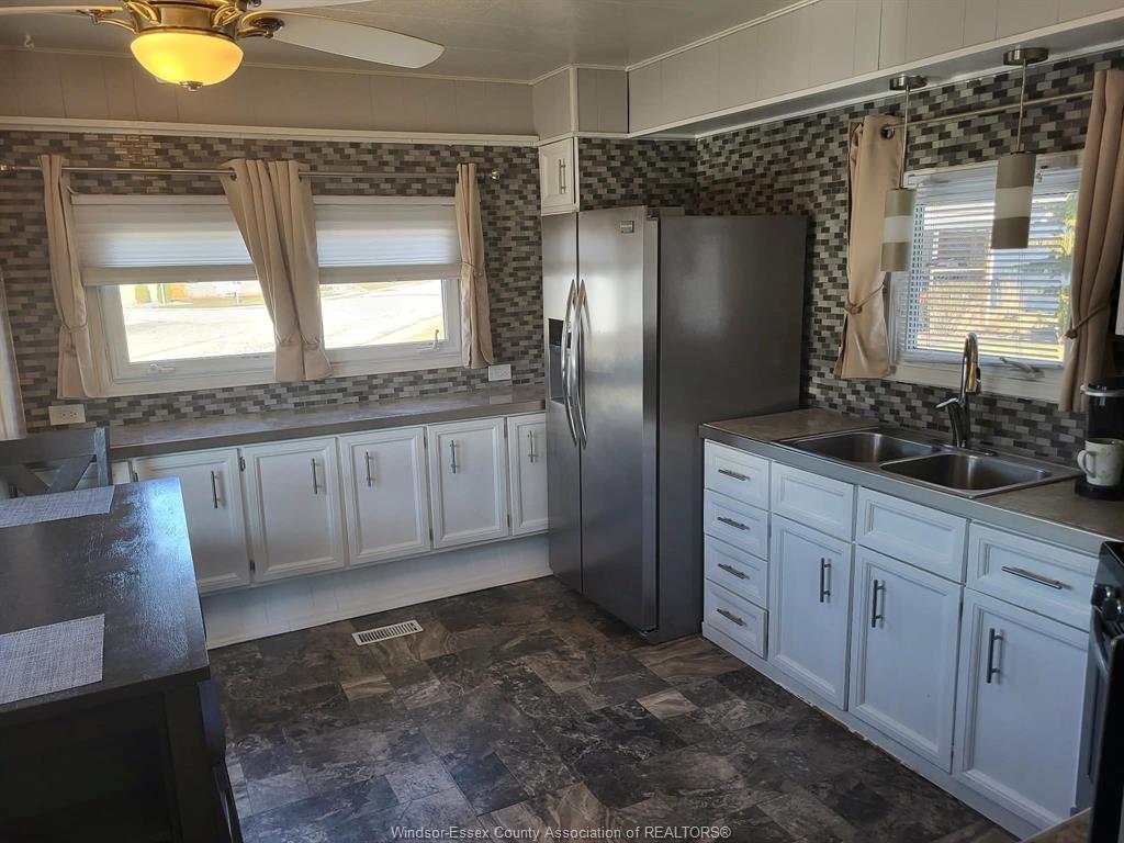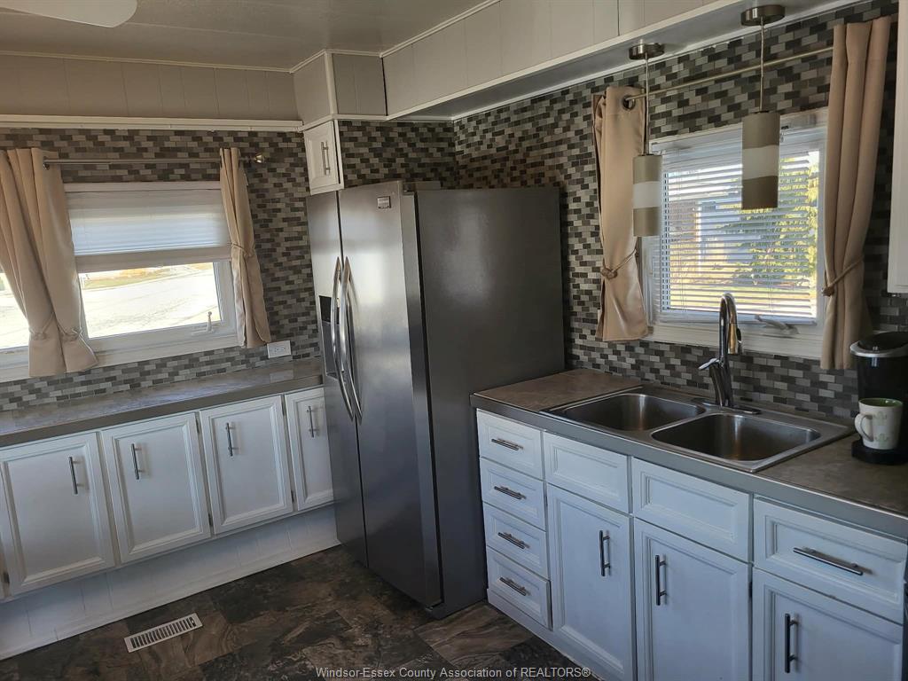 This very well maintained and updated mobile home is situated on a corner lot with many fine features including newer concrete drive, 2018 gas forced furnace and central air, roof and siding in 2018, modern bath with glass shower in 2021, newer sunroom and side custom patio/porch, newer awnings, bosch dishwasher, frigidaire fridge and gas stove, washer/dryer, vinyl windows and the list goes on. This 1 bedroom beauty is perfect for a single person, young couple looking to build equity or a retirement location. Park approval by park management as a conditon in all offers. Current monthly land rent of $581. 85 includes water, taxes, garbage and snow removal. Please note that the land rent amount will increase (tbd) for the new owner. Contact lbo for prompt service.