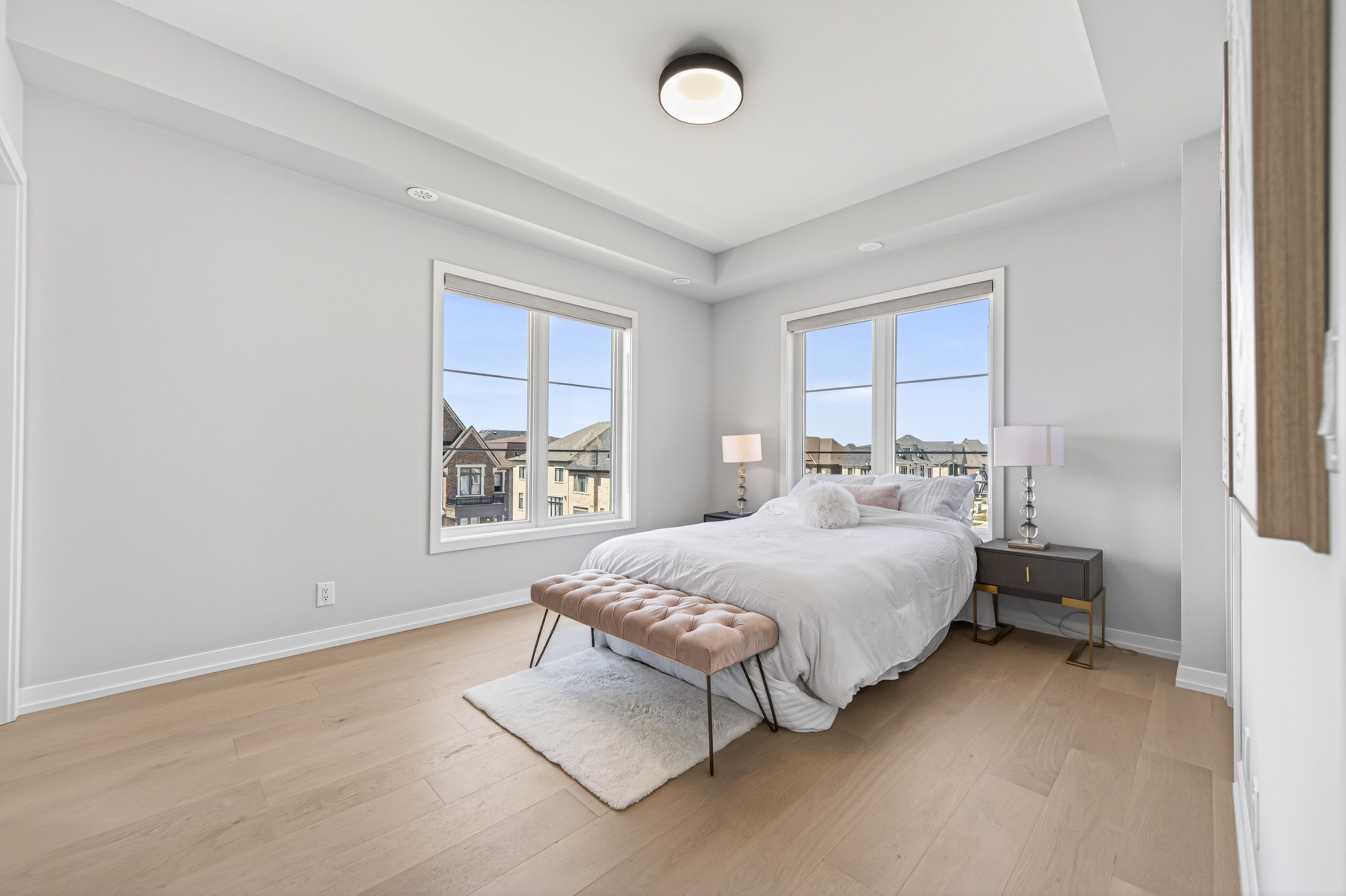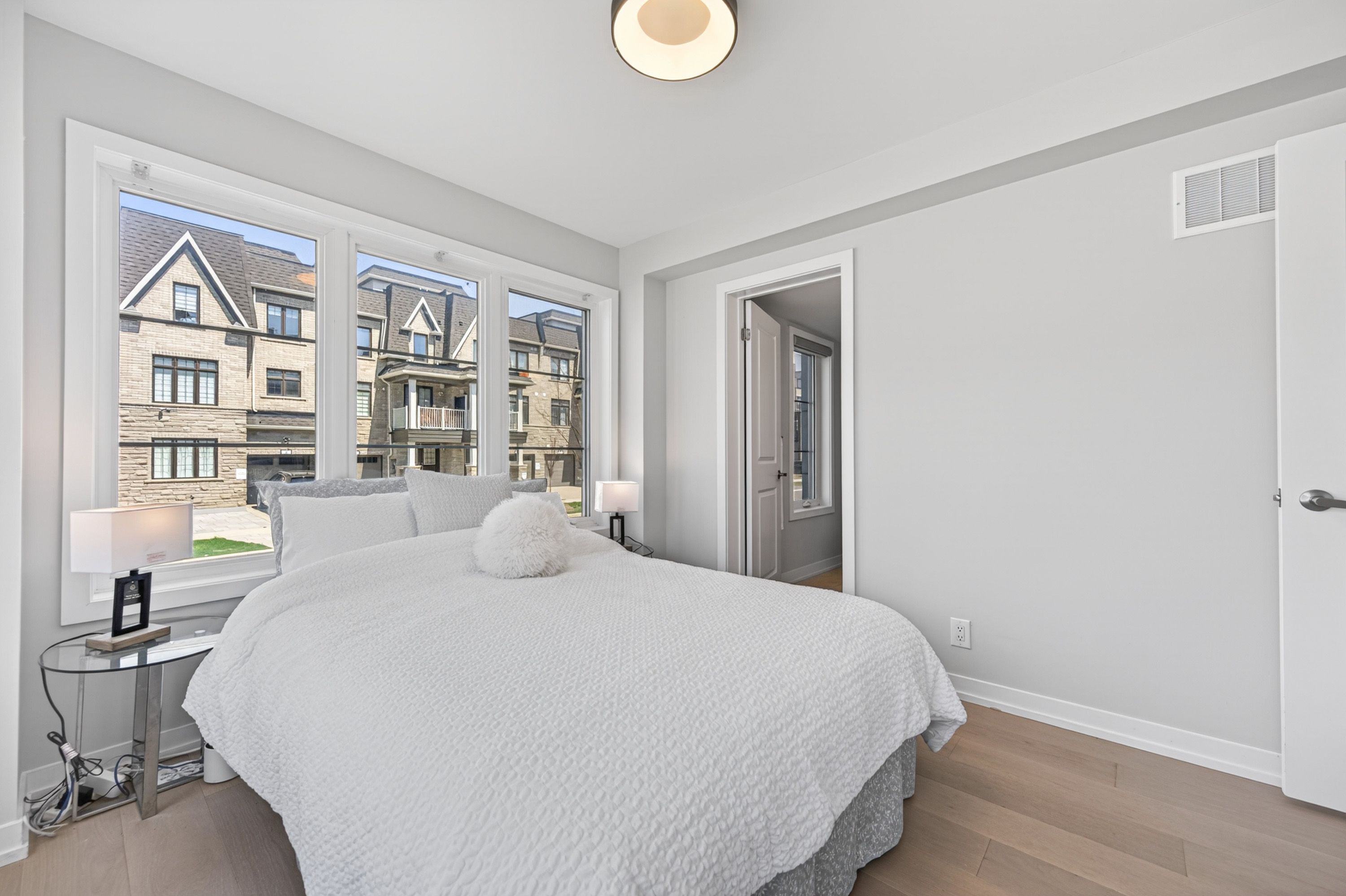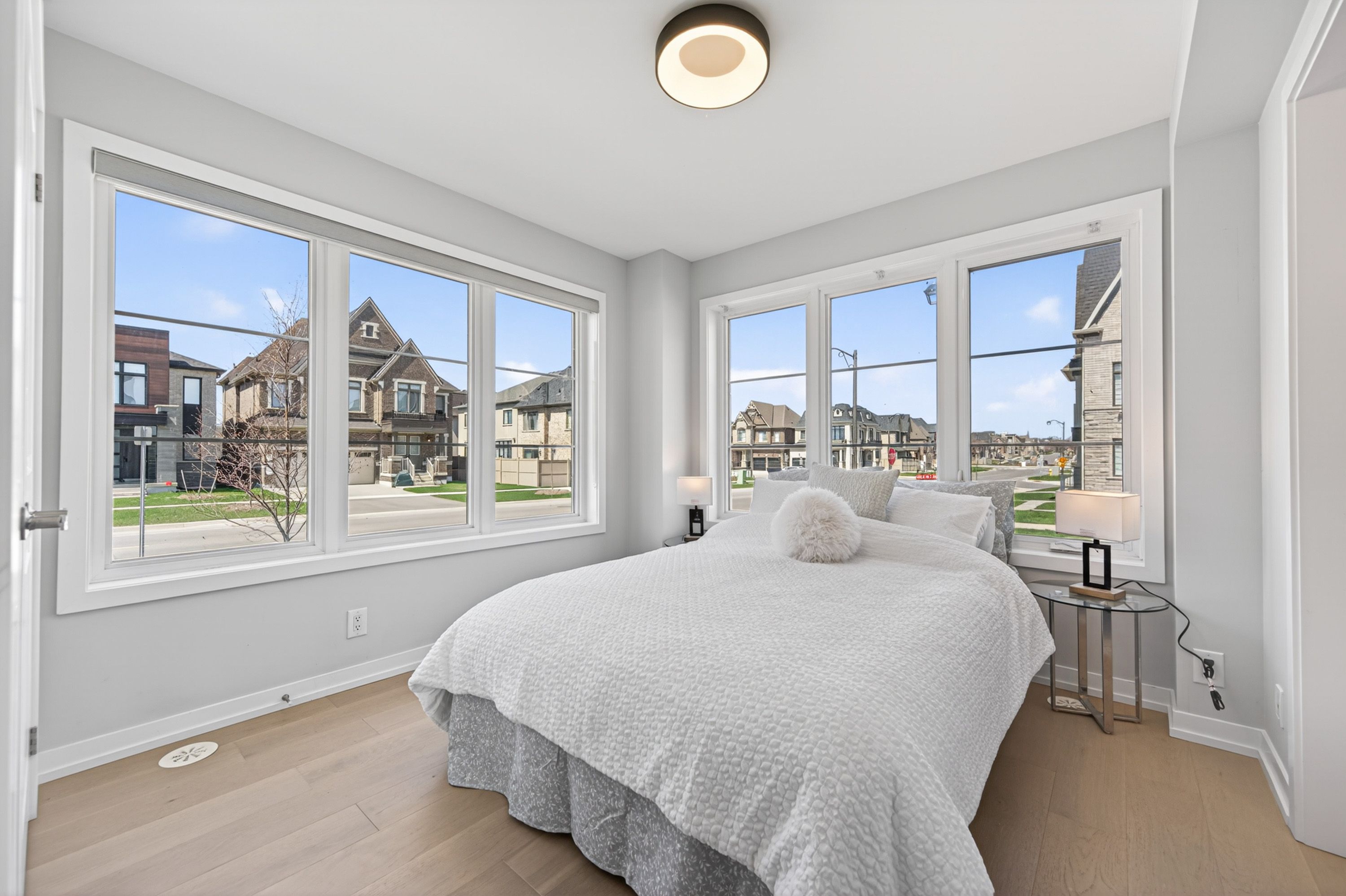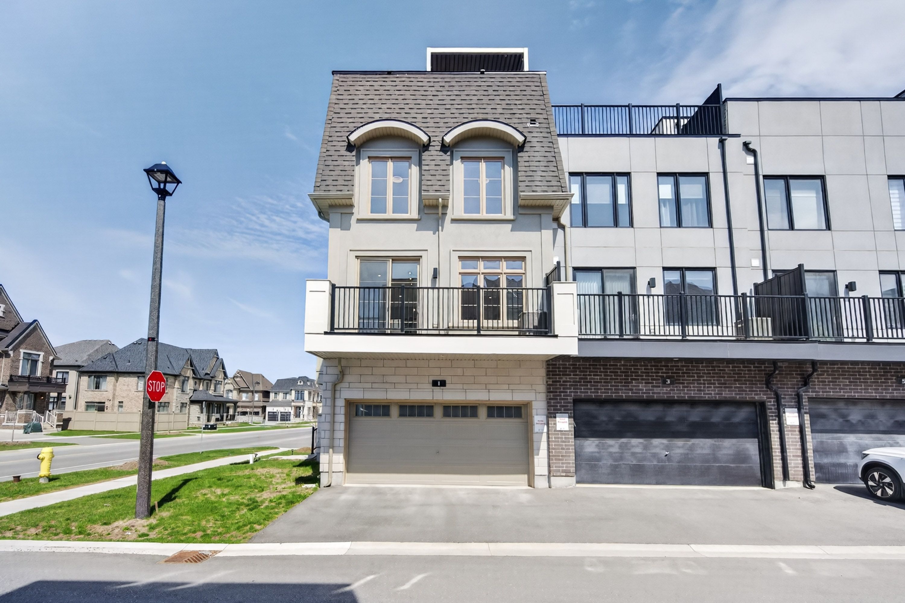 Welcome to this paris-inspired, 3-year-new freehold townhome in the prestigious angus glen community, union village project by minto. Situated on a premium corner lot, this bright and upgraded home offers 4 bedrooms and 3. 5 bathrooms with over $150,000 in upgrades and 20+ oversized windows. Featuring a double car garage, driveway parking, and potential for two additional front spaces. The ground level offers a builder-upgraded a private 4th bedroom with 3-piece ensuite-ideal for guests or a home office. Laundry is conveniently located on the bedroom level. The main floor offers an open-concept layout with smooth ceilings throughout all levels, engineered hardwood flooring, and elegant stairs with metal pickets, reflecting a consistent modern finish across the home. A designer accent tv wall and euro-inspired dining feature wall elevate the space with a refined, contemporary feel. The upgraded kitchen features quartz countertops, waterfall island, mosaic backsplash, premium appliances including gas stove and 800 cfm hood fan,32" french door refrigerator, upgraded dishwasher, washer and dryer plus a water filtration system. Walk out to a private terrance, perfect for bbqs. Extensive upgrades include floor and vanity tiles, quartz vanity countertops, and enhanced fixtures such as faucets, sinks, mirrors and designer lighting, cat6 wiring includes 5 network ports,led pot lights throughout smart dimmers, motorized blinds, and individual temperature controls on each level. The upper level features a spacious primary bedroom with custom walk-in closet and modern ensuite, plus two additional bedrooms and a full bath. The highlight is the stunning ~800 sq. Ft. Rooftop terrace with decking, lighting, outlets, hose bib, and pergola-offering unobstructed 360 views, perfect for entertaining or relaxing. Ideally located near parks, trails, top-ranked schools, and just minutes to unionville go, hwy 404 & 407. A rare turnkey luxury townhome combining style, comfort, and convenience.