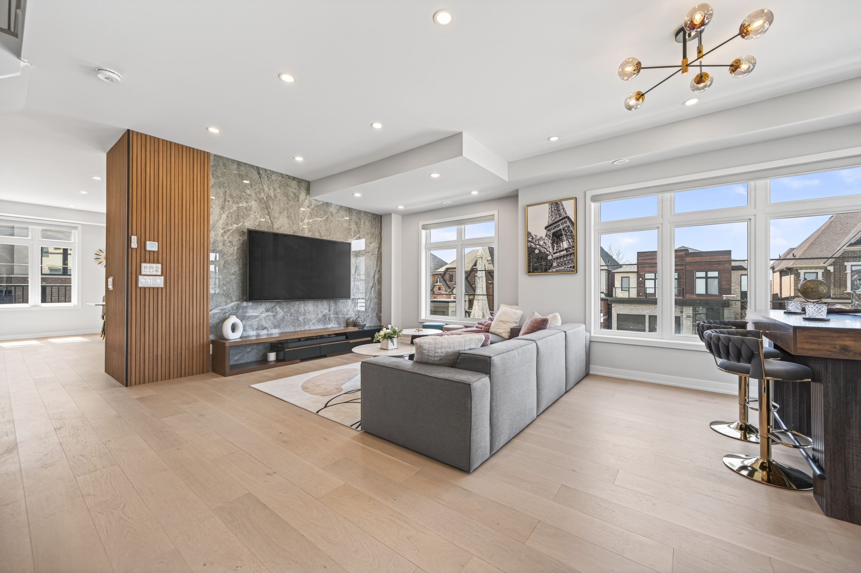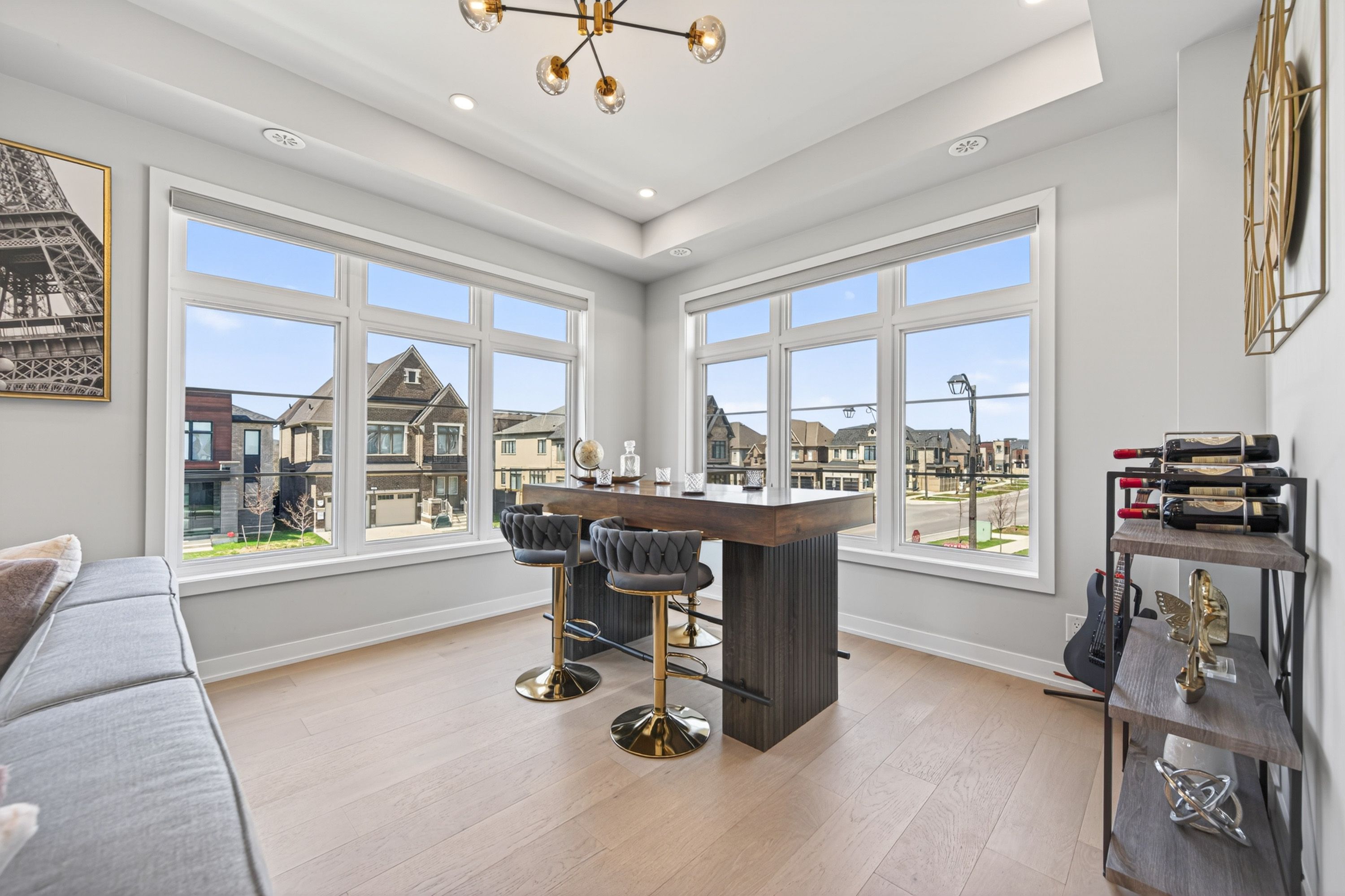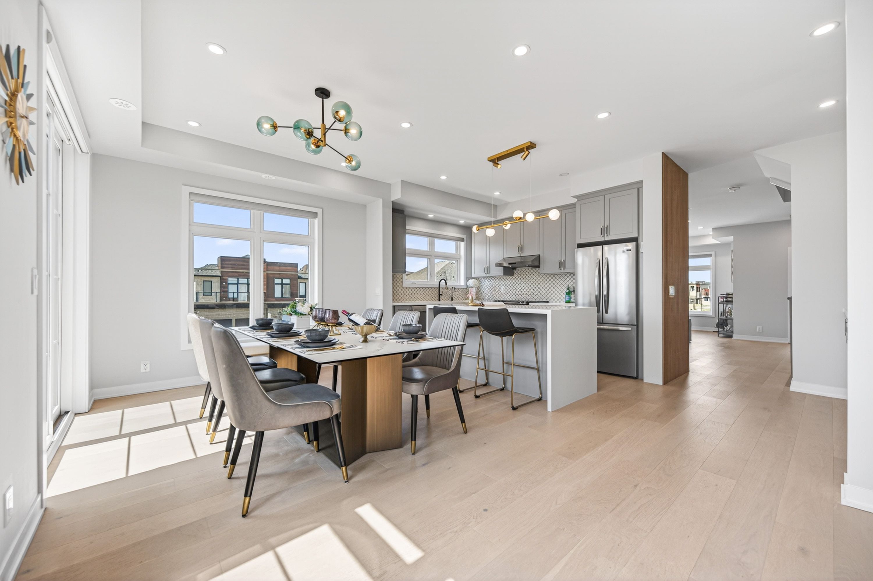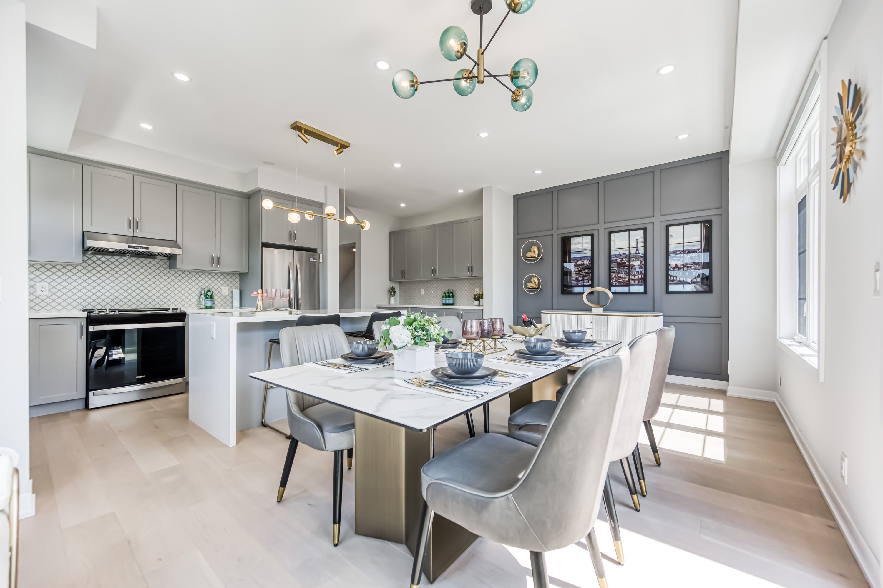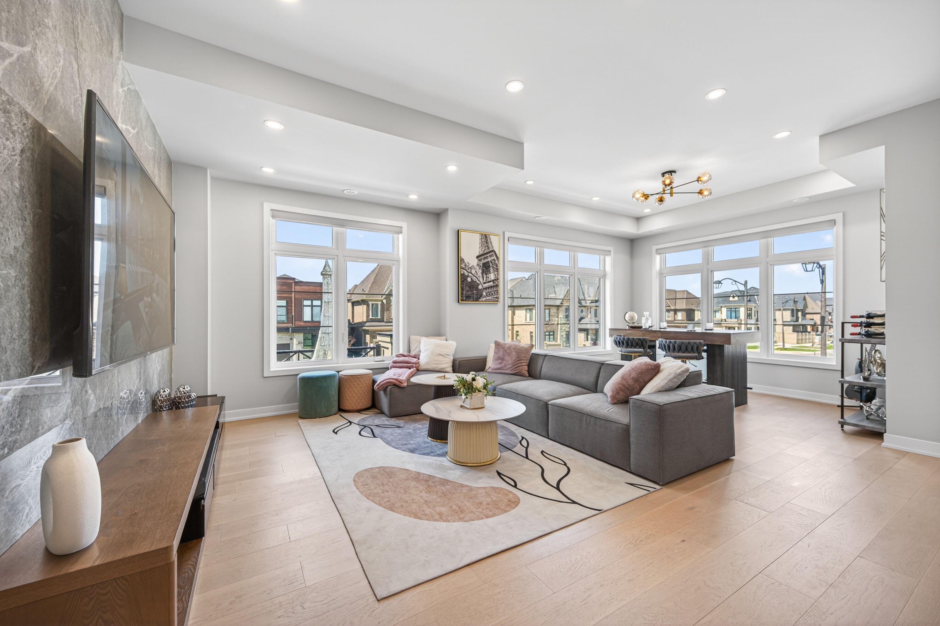 Welcome to this paris-inspired, 3-year-new freehold townhome in the prestigious angus glen community, union village project by minto. Situated on a premium corner lot, this bright and upgraded home offers 4 bedrooms and 3. 5 bathrooms with over $150,000 in upgrades and 20+ oversized windows. Featuring a double car garage, driveway parking, and potential for two additional front spaces. The ground level offers a builder-upgraded a private 4th bedroom with 3-piece ensuite-ideal for guests or a home office. Laundry is conveniently located on the bedroom level. The main floor offers an open-concept layout with smooth ceilings throughout all levels, engineered hardwood flooring, and elegant stairs with metal pickets, reflecting a consistent modern finish across the home. A designer accent tv wall and euro-inspired dining feature wall elevate the space with a refined, contemporary feel. The upgraded kitchen features quartz countertops, waterfall island, mosaic backsplash, premium appliances including gas stove and 800 cfm hood fan,32" french door refrigerator, upgraded dishwasher, washer and dryer plus a water filtration system. Walk out to a private terrance, perfect for bbqs. Extensive upgrades include floor and vanity tiles, quartz vanity countertops, and enhanced fixtures such as faucets, sinks, mirrors and designer lighting, cat6 wiring includes 5 network ports,led pot lights throughout smart dimmers, motorized blinds, and individual temperature controls on each level. The upper level features a spacious primary bedroom with custom walk-in closet and modern ensuite, plus two additional bedrooms and a full bath. The highlight is the stunning ~800 sq. Ft. Rooftop terrace with decking, lighting, outlets, hose bib, and pergola-offering unobstructed 360 views, perfect for entertaining or relaxing. Ideally located near parks, trails, top-ranked schools, and just minutes to unionville go, hwy 404 & 407. A rare turnkey luxury townhome combining style, comfort, and convenience.