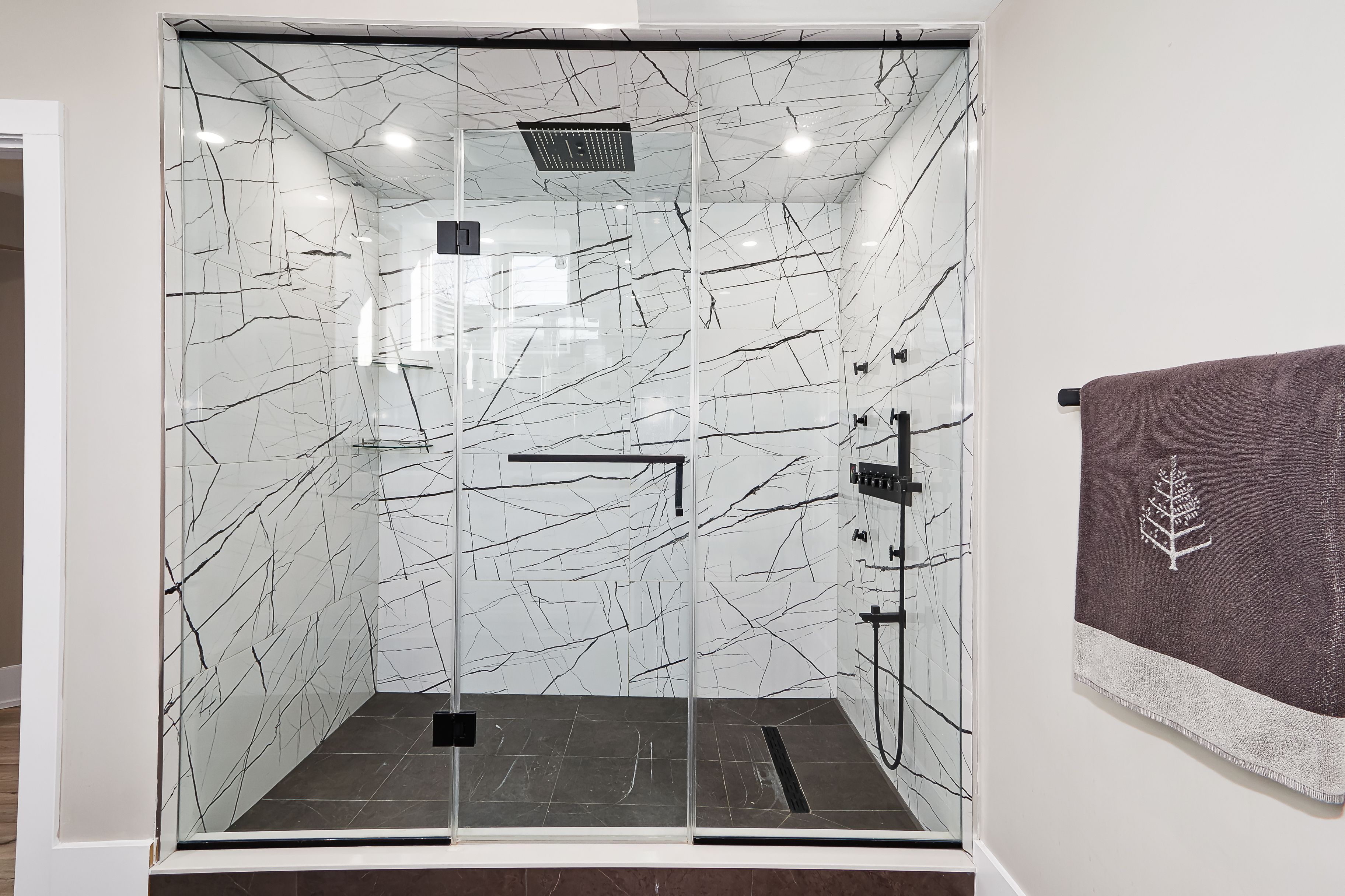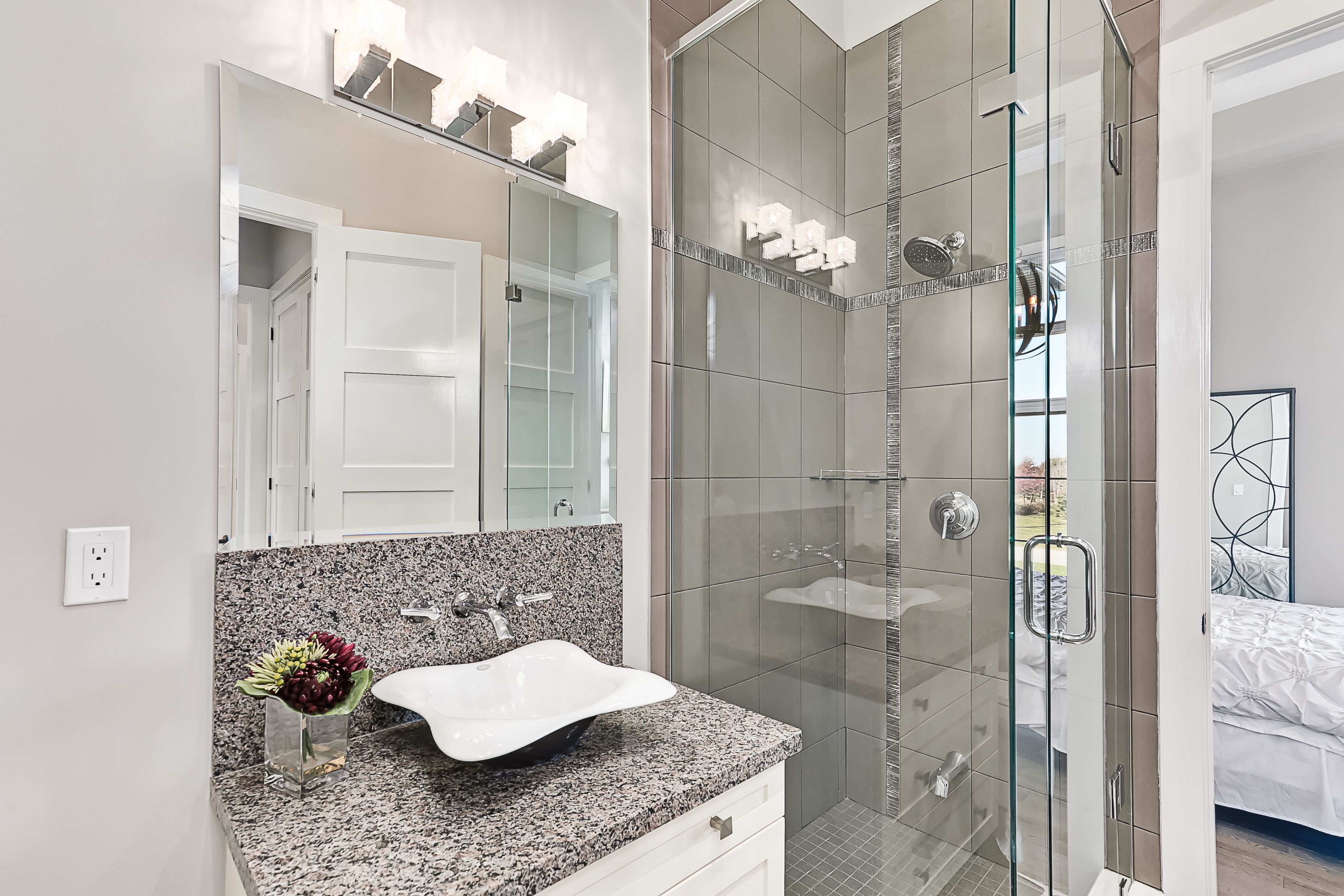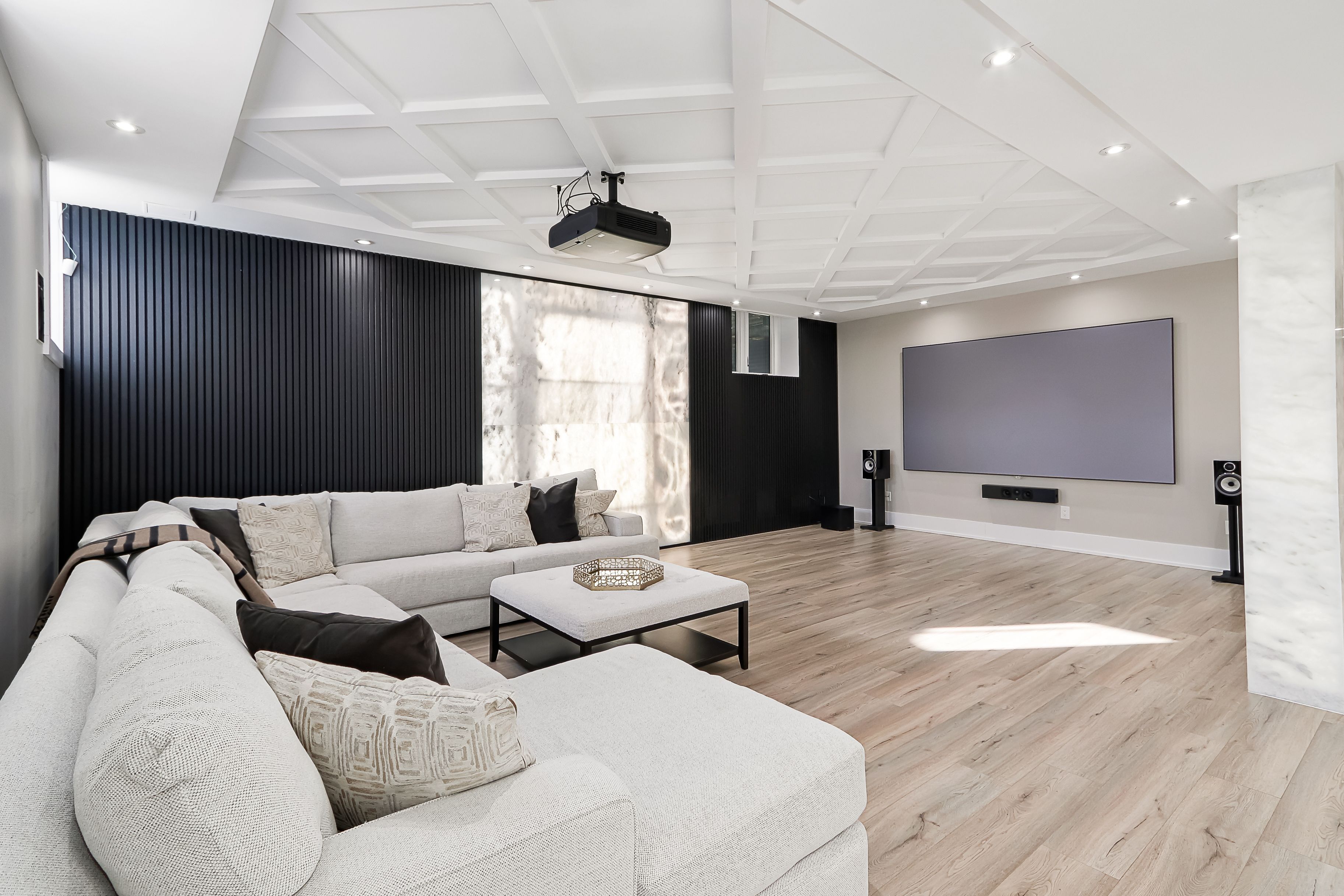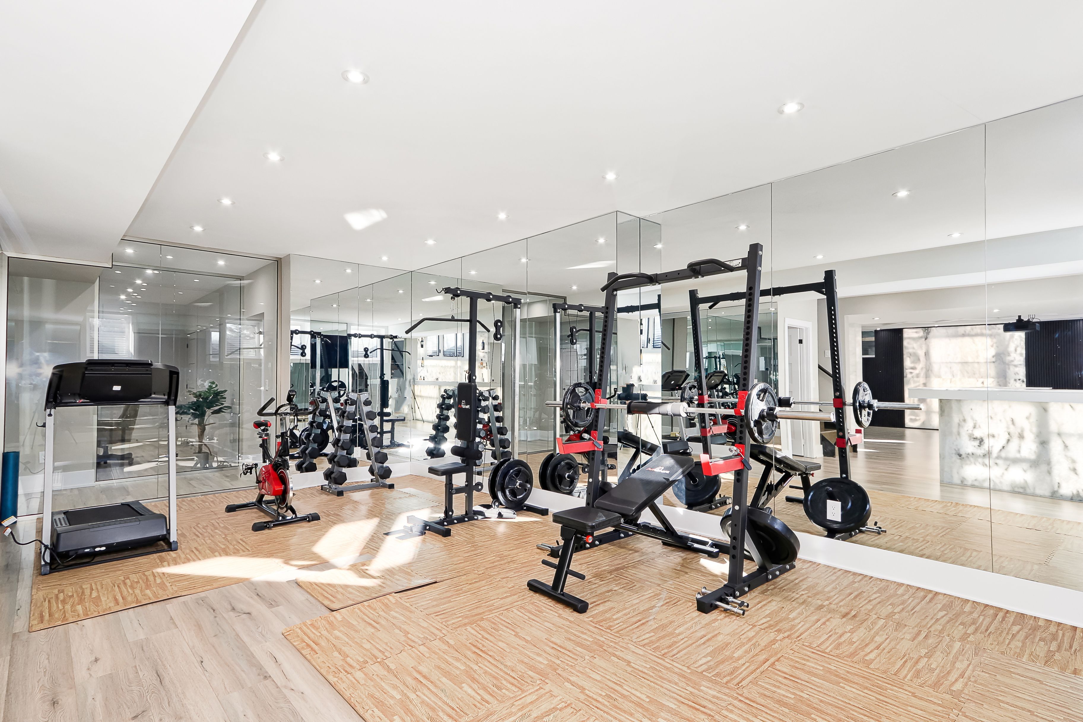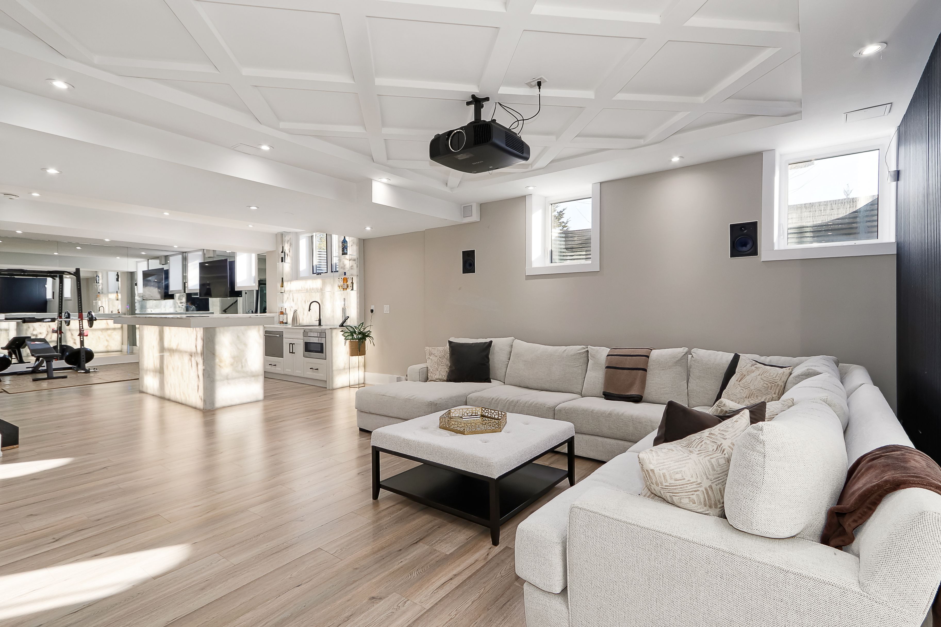 • Fully finished lower level with gym, media lounge, and chic entertainment bar.