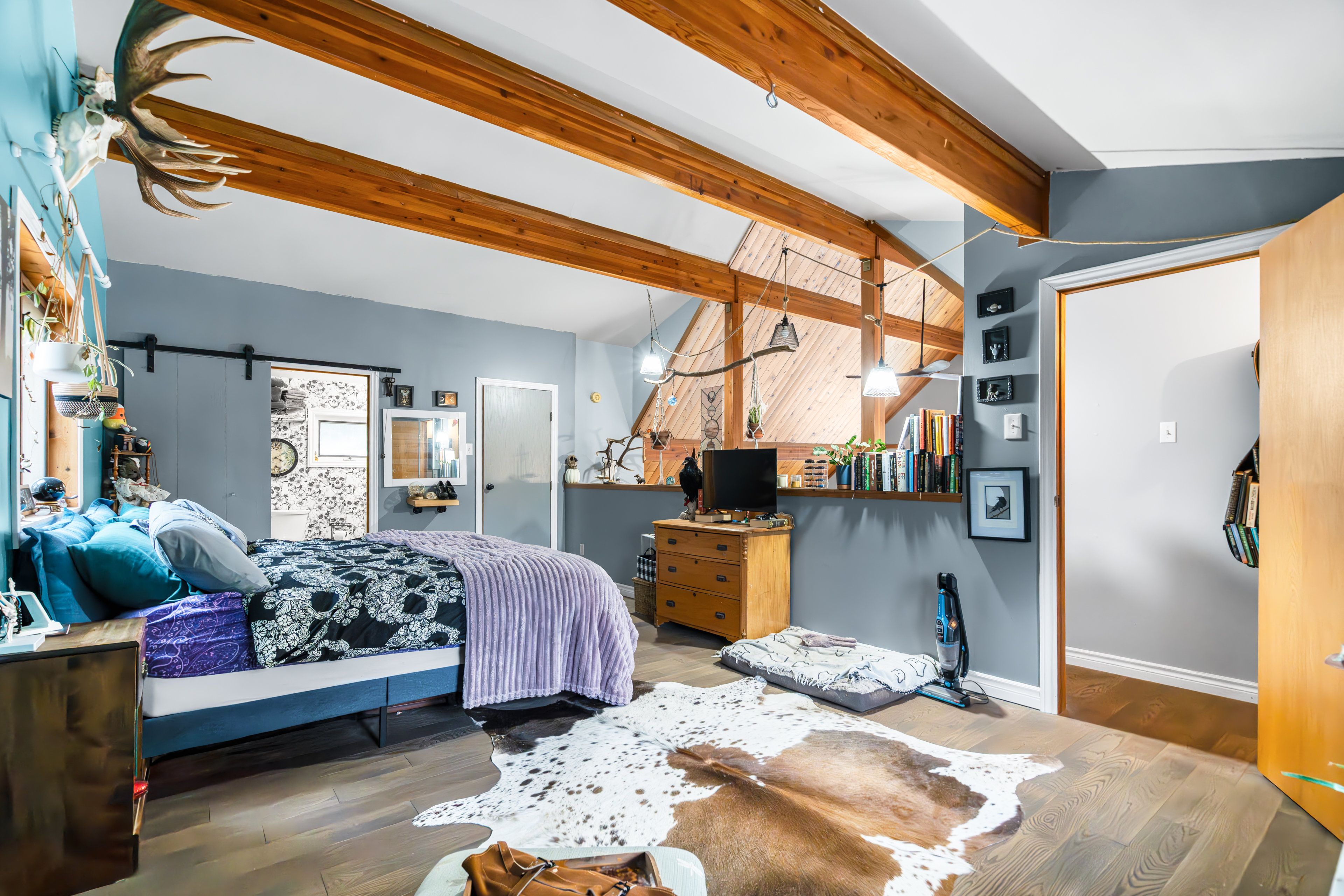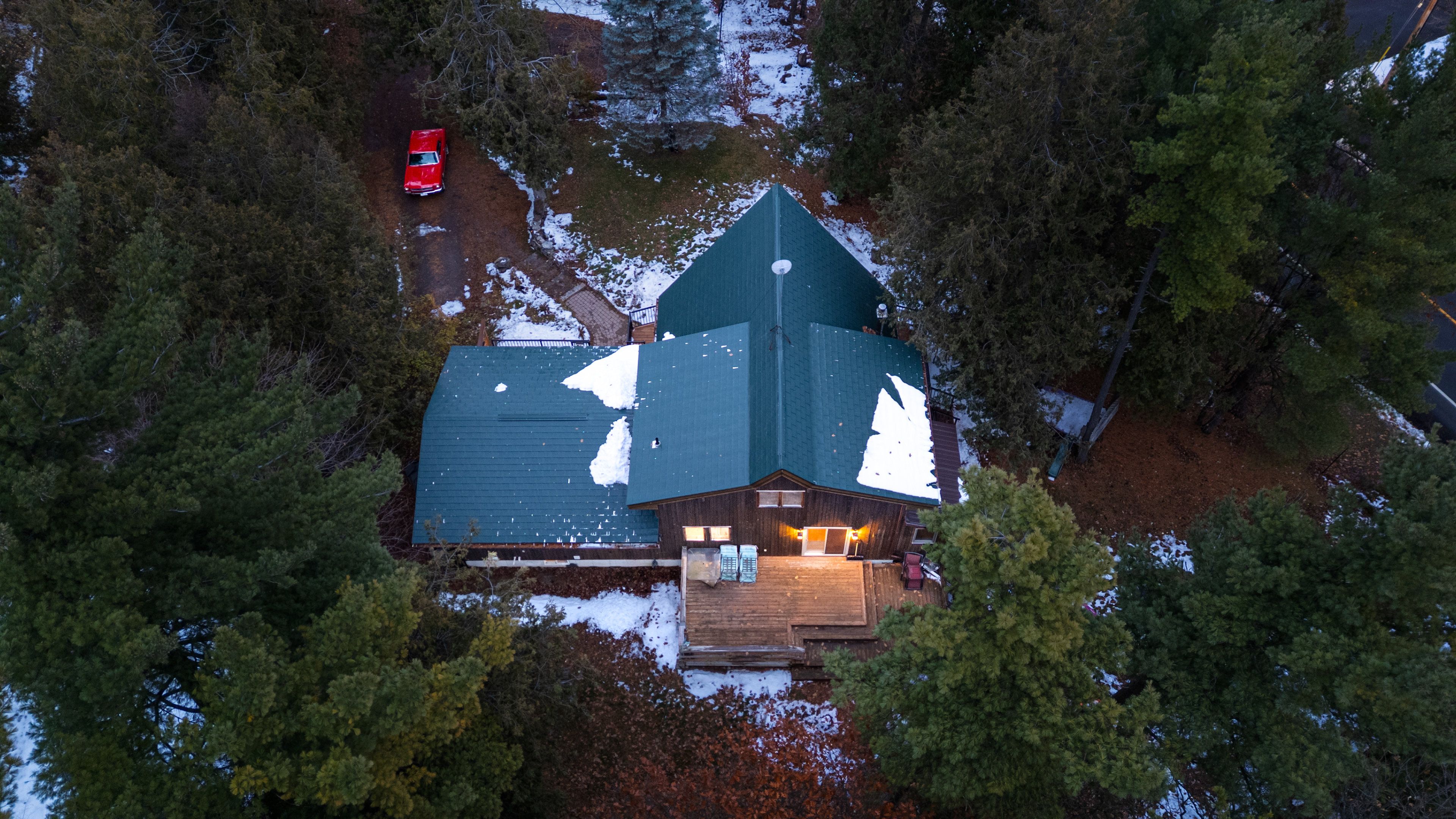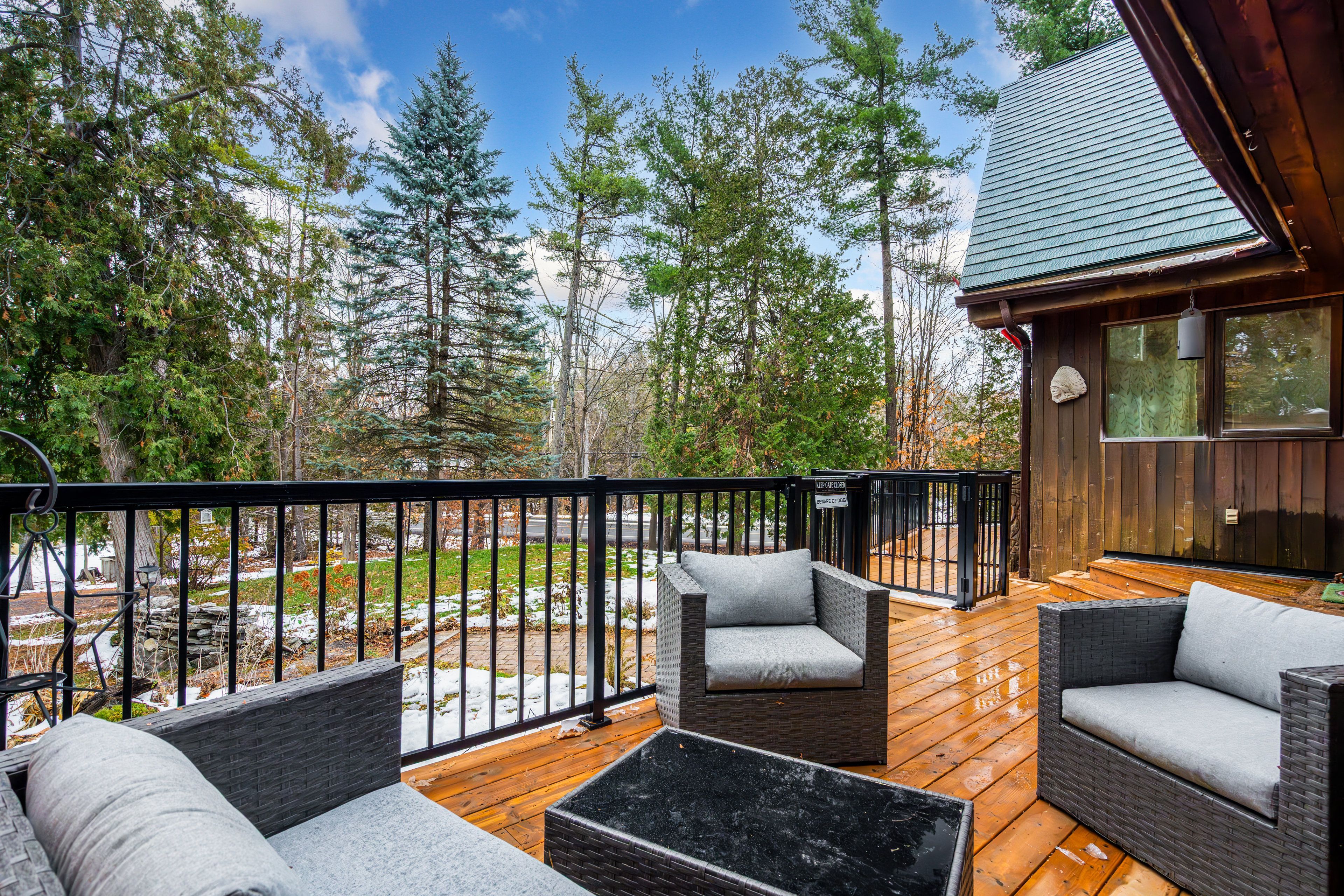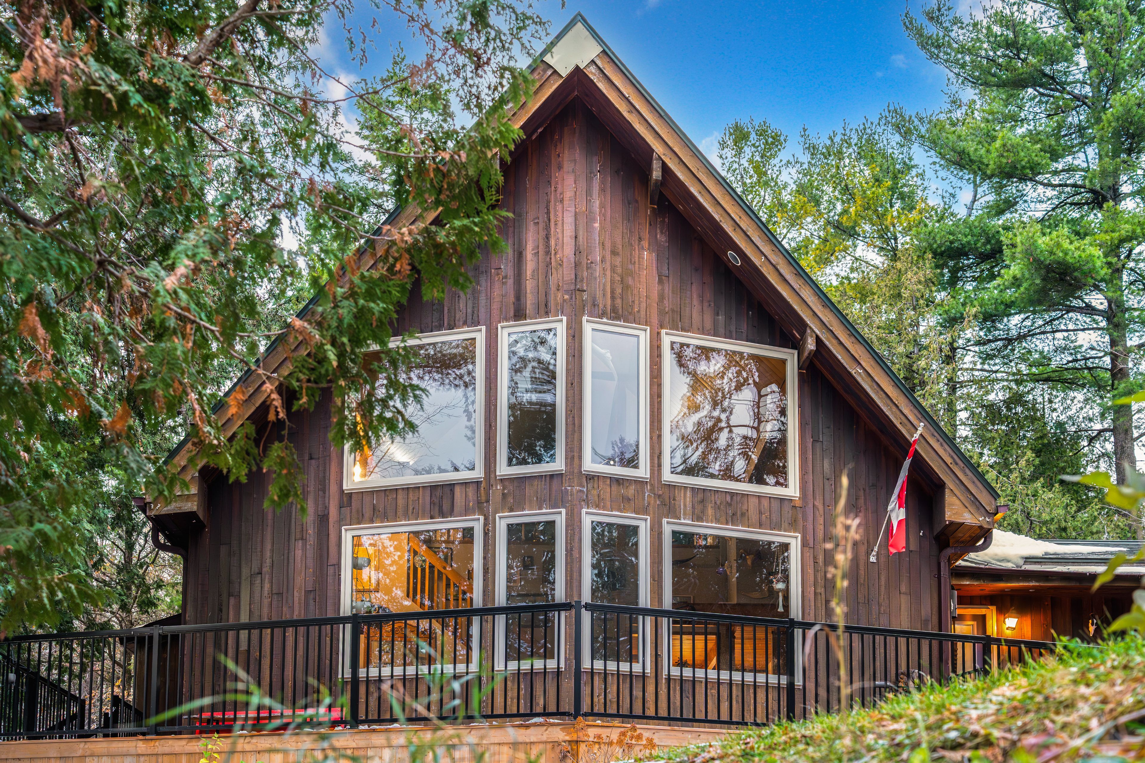 Welcome to 1 woodland drive, a charming 3 bed, 2 bath home tucked into a private, wooded corner lot in braeside. Surrounded by nature and mature trees, this inviting property offers exceptional privacy and a peaceful setting. A wrap around deck and outdoor fire pit make it ideal for unwinding or entertaining. Inside, soaring main floor ceilings and expansive windows including new two storey windows that flood the space with light create a bright, airy atmosphere. The kitchen features white cabinetry, a tiled backsplash, and an eat in island. Hardwood floors enhance the warm living and dining spaces, complete with wainscoting and playful wallpaper. A standout sunroom with floor to ceiling windows provides a serene spot to enjoy the views year round. The main level includes a full bathroom, laundry and two large bedrooms, while the loft style primary suite offers wonderful character and its own ensuite and walk-in closet. The finished basement adds even more living space with wood paneling, a large rec room, a spacious playroom, and a powder room. Additional highlights include a low maintenance metal roof and recent updates to the hvac and septic systems, offering peace of mind for future owners. Just a short walk to braeside beach and the boat launch and only minutes to arnprior and 30 minutes to kanata, this home blends cottage charm with everyday convenience.