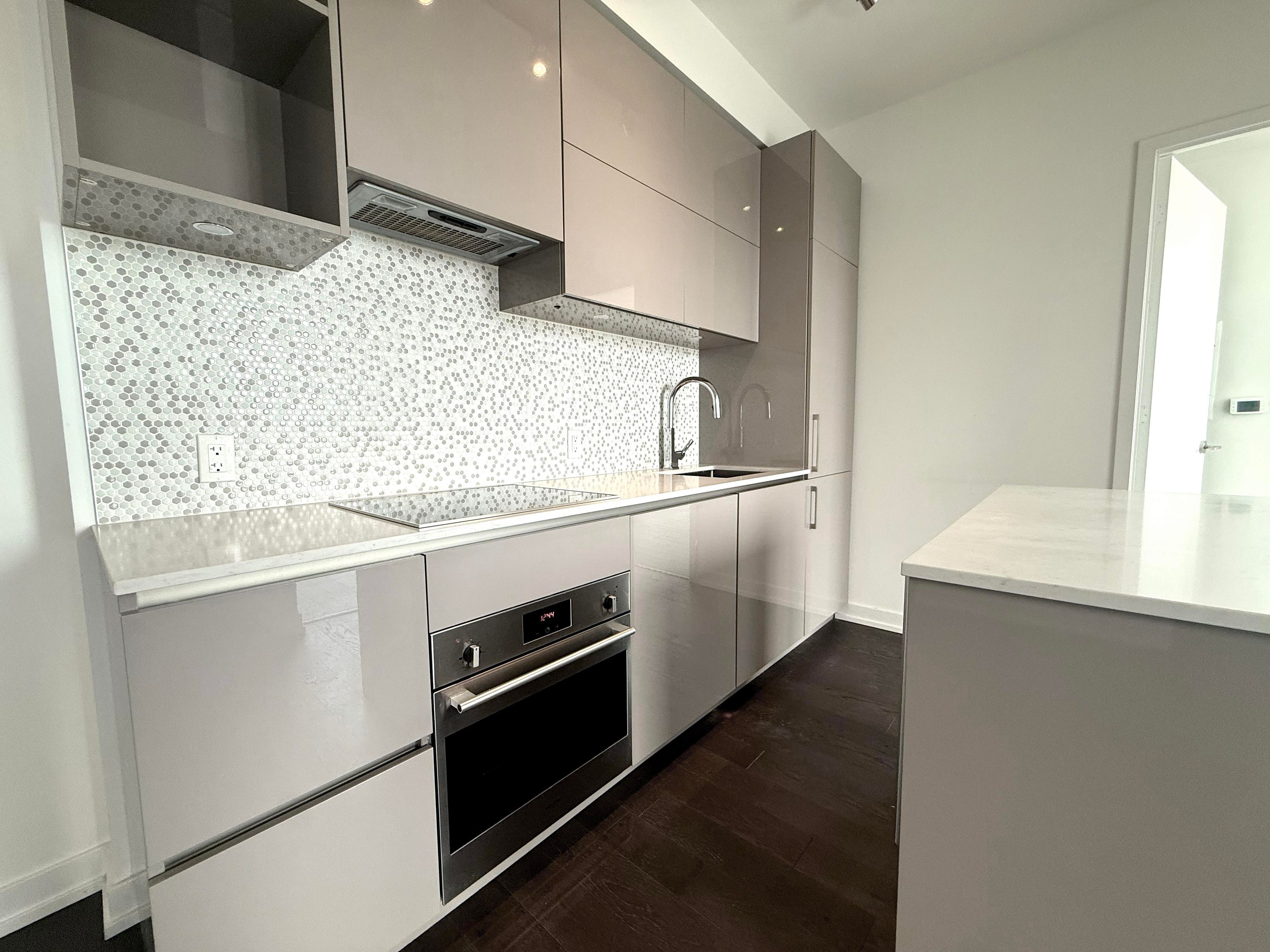 • Modern kitchen featuring quartz countertop and built-in appliances.